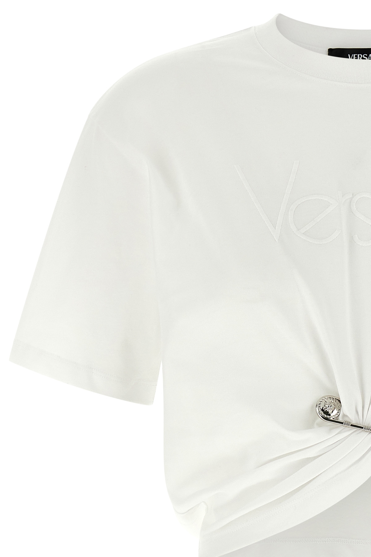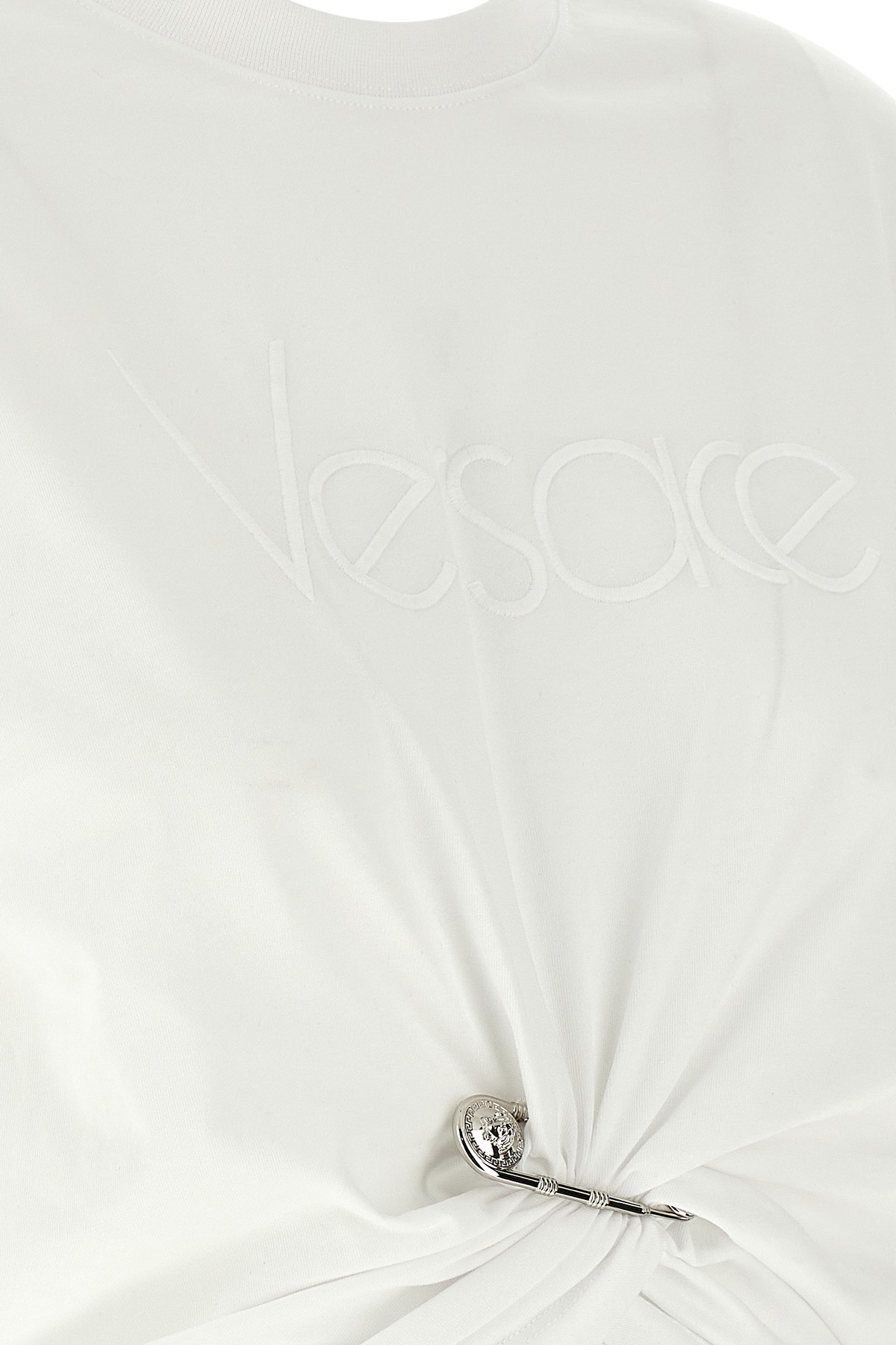 Cotton T-shirt with tone-on-tone embroidered logo on the front, crew neck, 'Safety pin' curling and short sleeves.