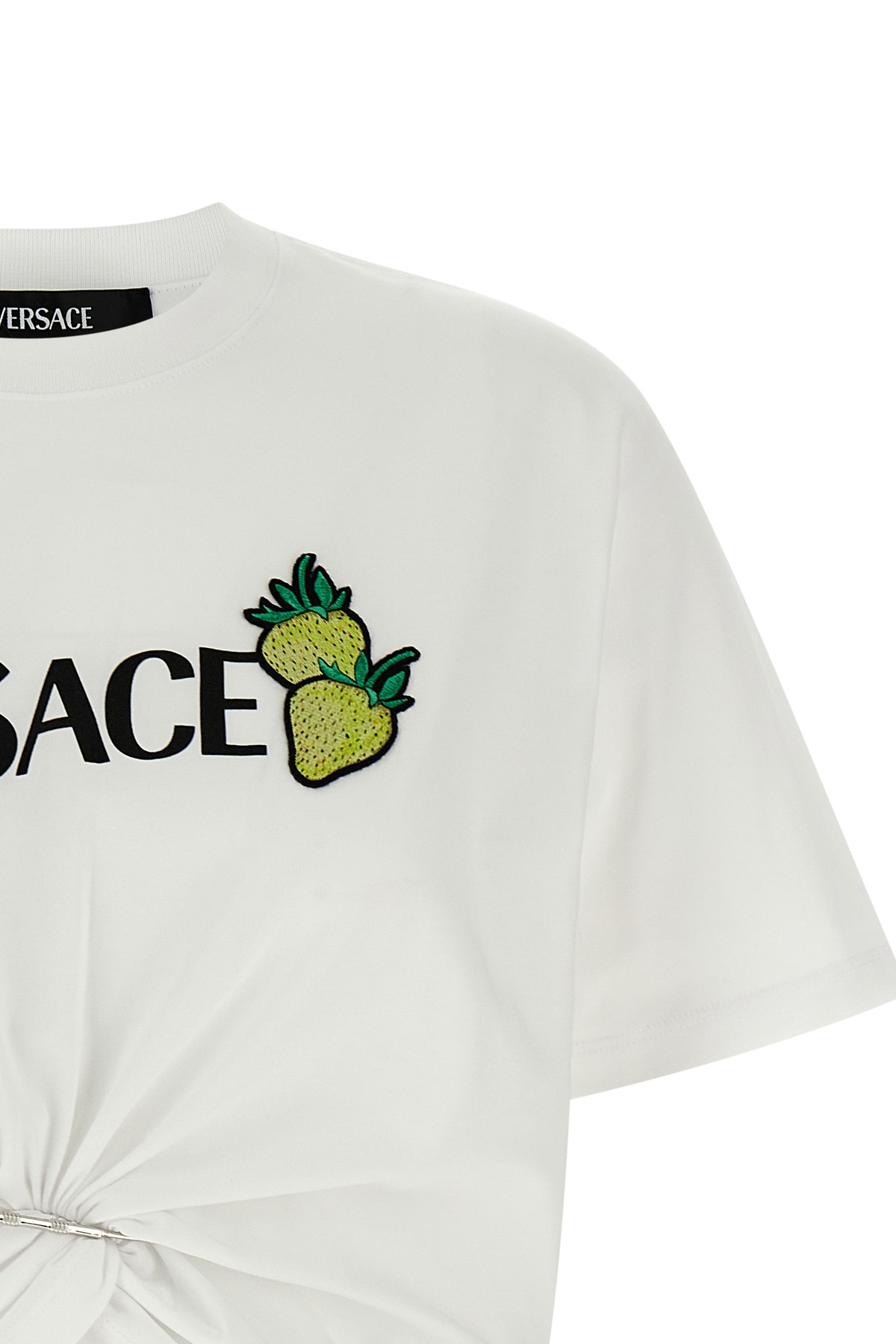 Cotton T-shirt with 'Strawberry patch' and front logo print, crew neck, 'Safety pin' curling and short sleeves.