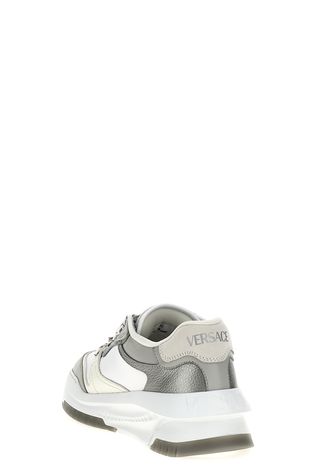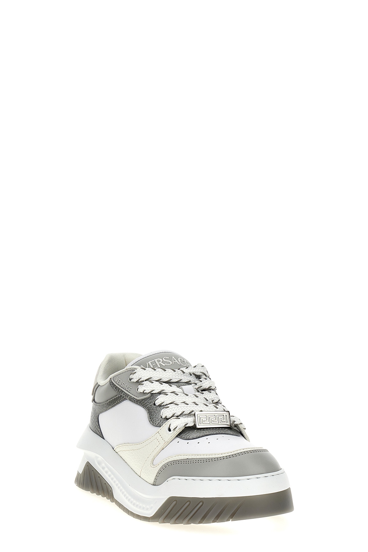 'Odissea' sneakers in smooth and grainy leather with contrasting details, Greek metal on the front, lace-up closure, logo embroidery on the tongue, rubber sole.