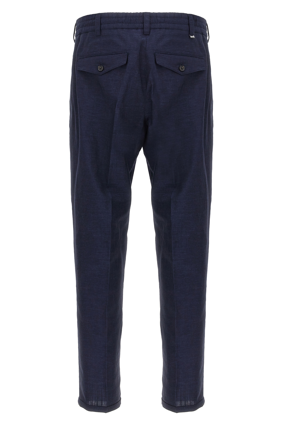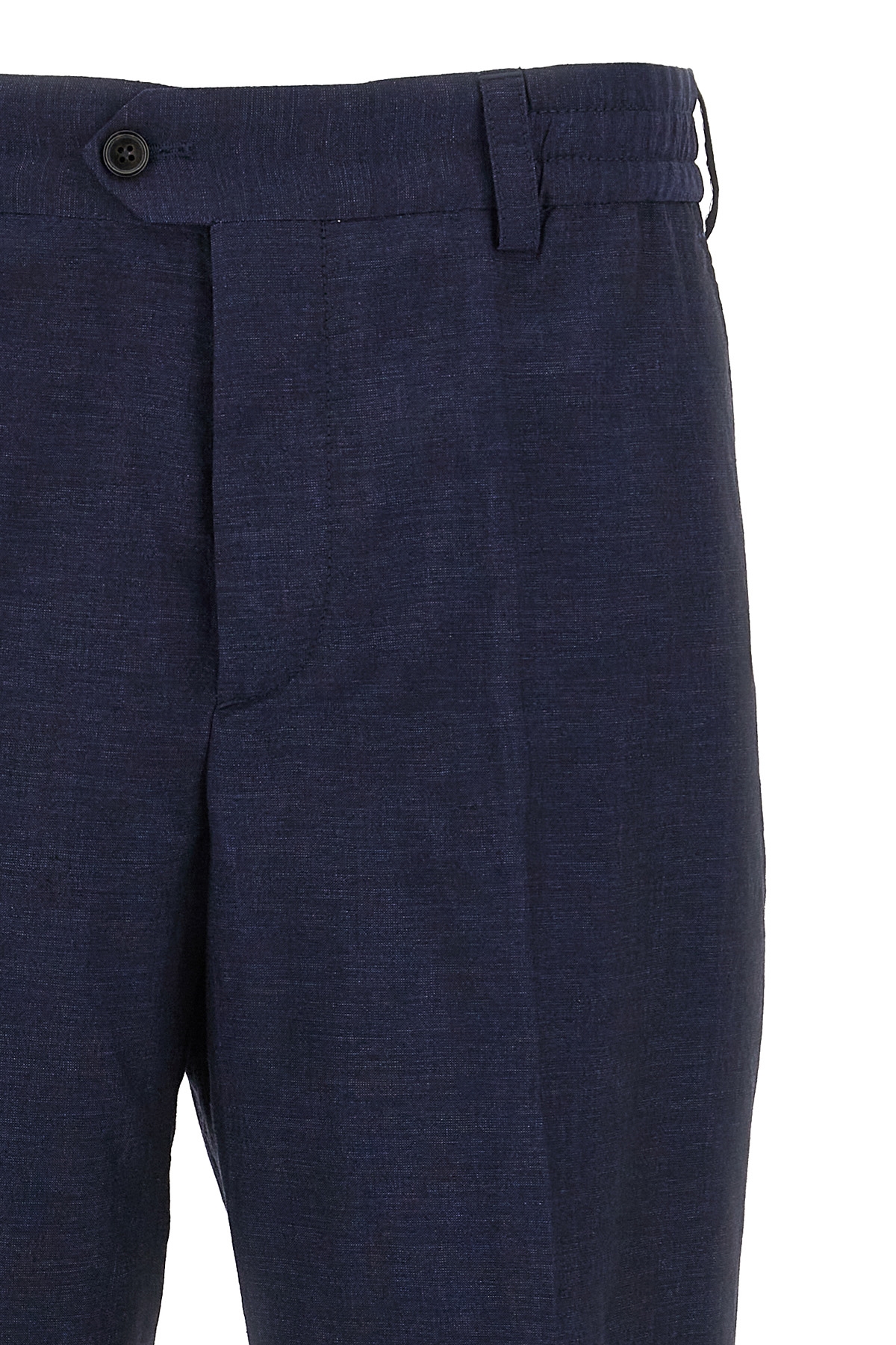 'The Rebel' cool wool and linen pants, elastic waistband, button closure, pockets, straight leg, stretched pleat, turn-up on the leg bottom.