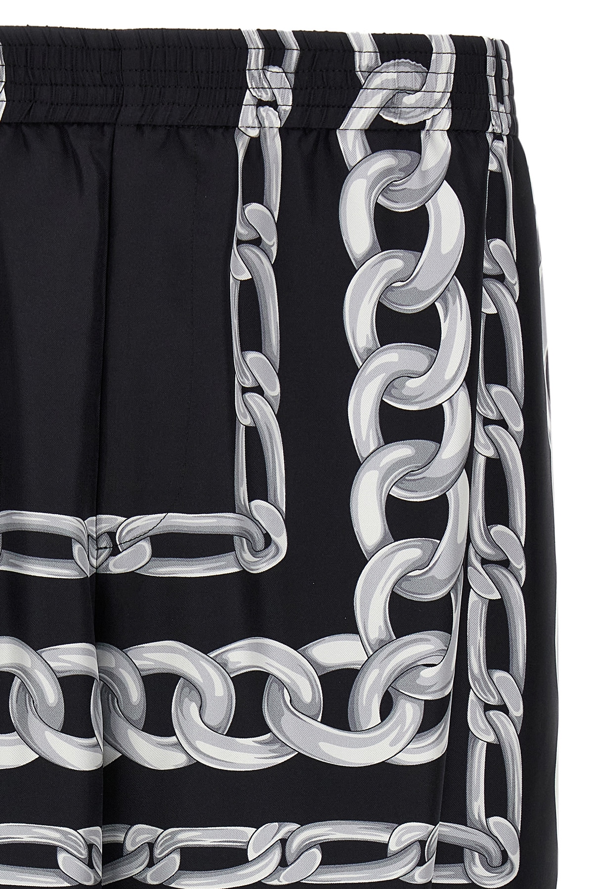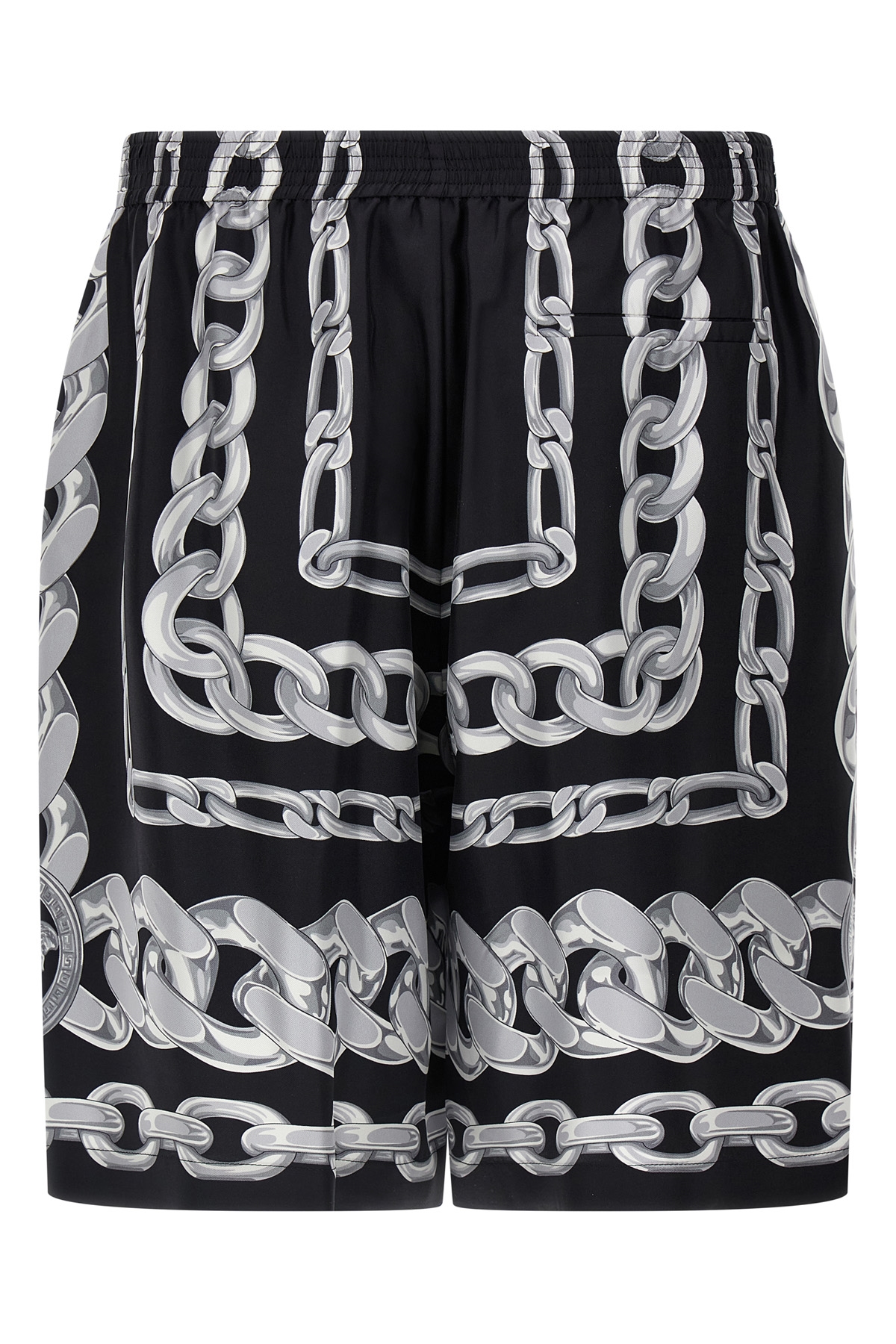 Bermuda shorts in silk twill with 'Medusa Chains' print, elastic waistband, pockets, wide leg.