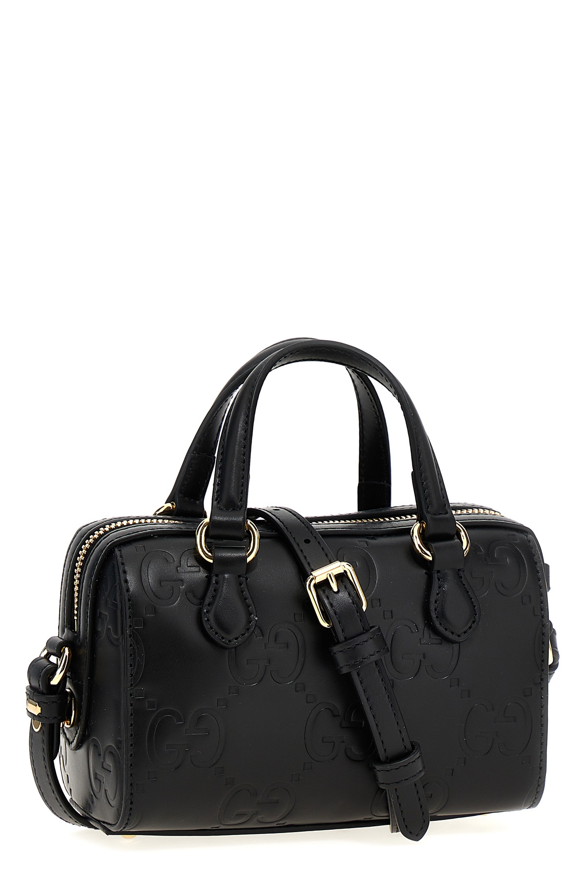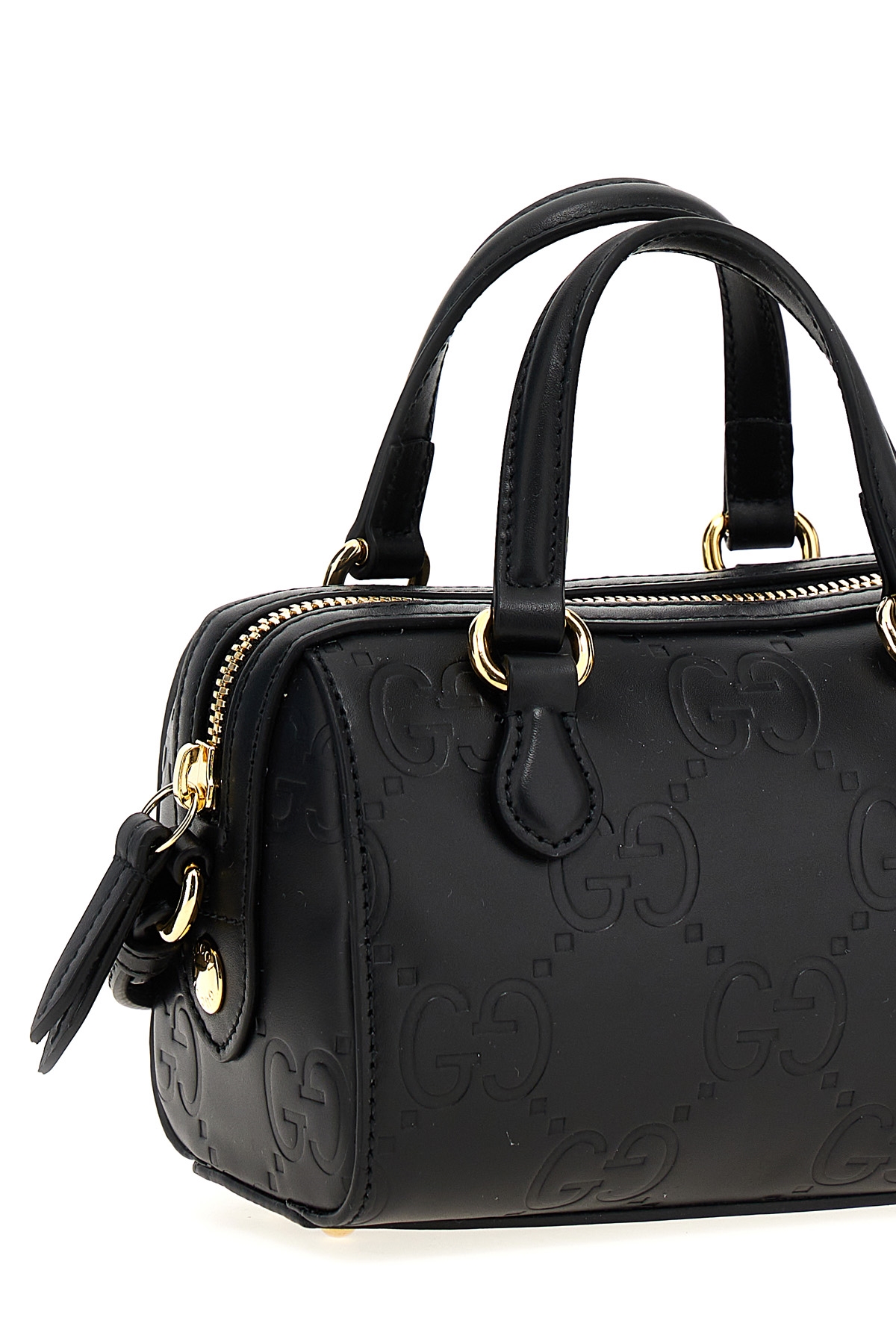 'Mini GG' leather handbag with all-over logo pattern, zip closure, double fixed handle, removable shoulder strap.