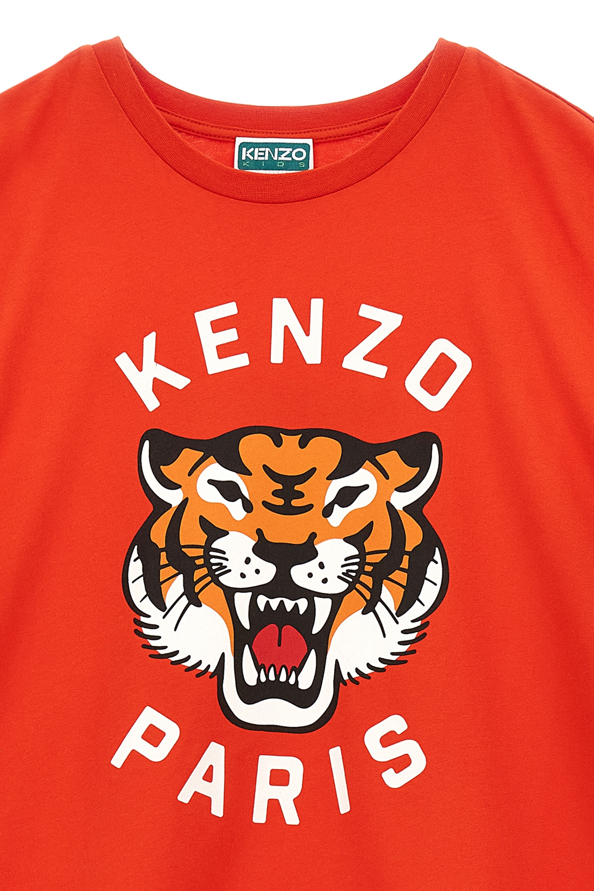 KIDS Cotton dress with front logo print, crew neck, short sleeves.