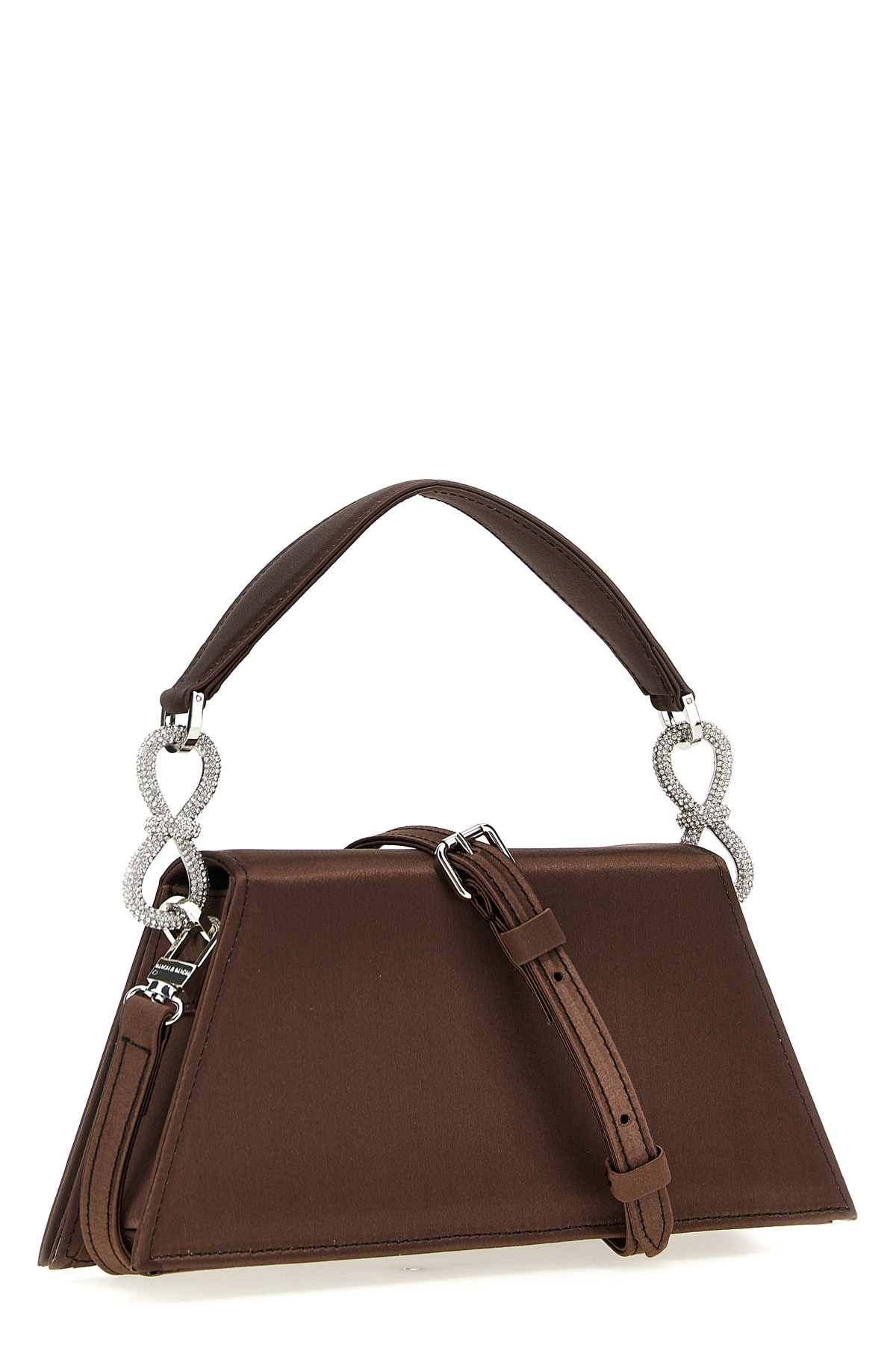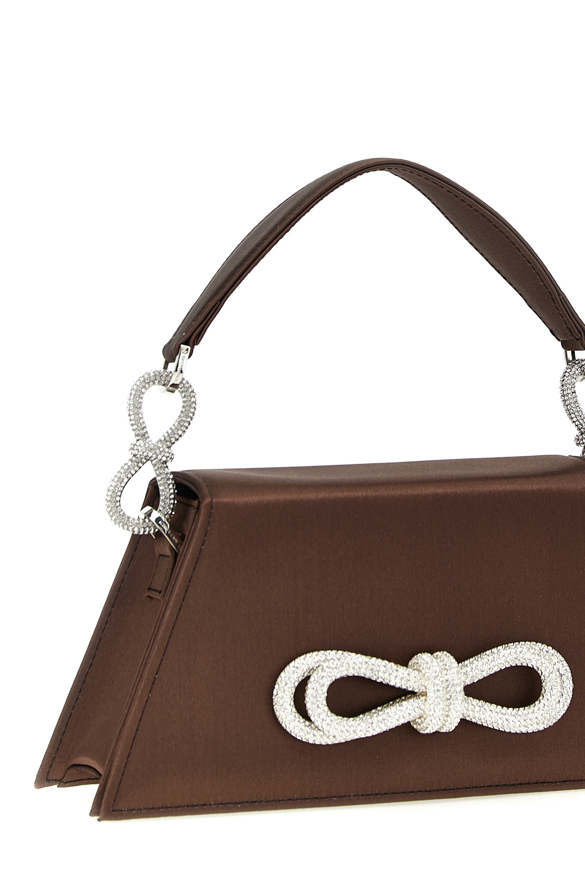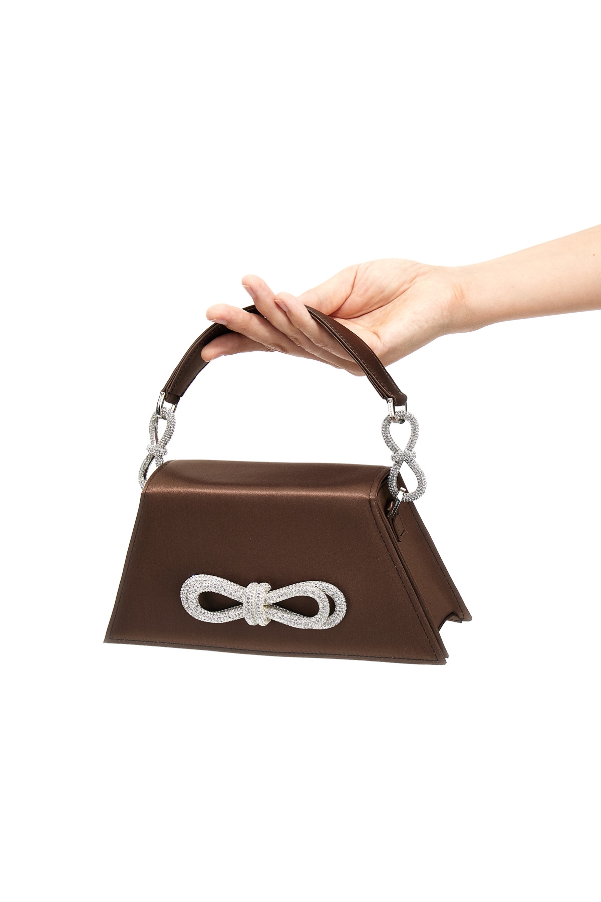 'Double Bow' satin handbag with front jewel bow application, magnetic flap closure, handle with jewel details, adjustable and removable shoulder strap.