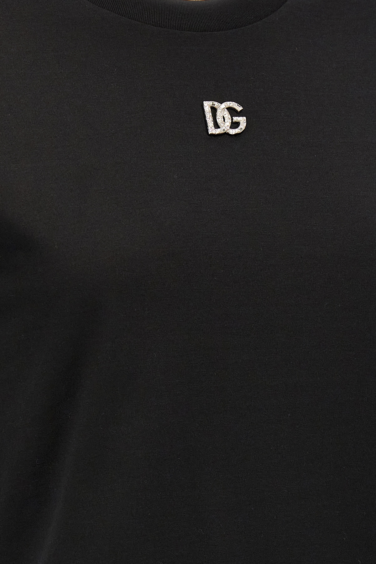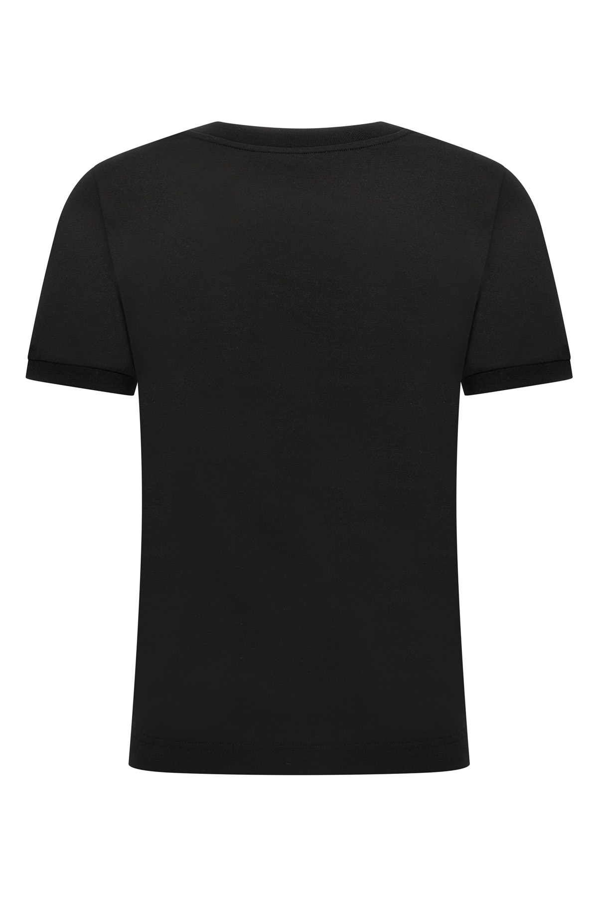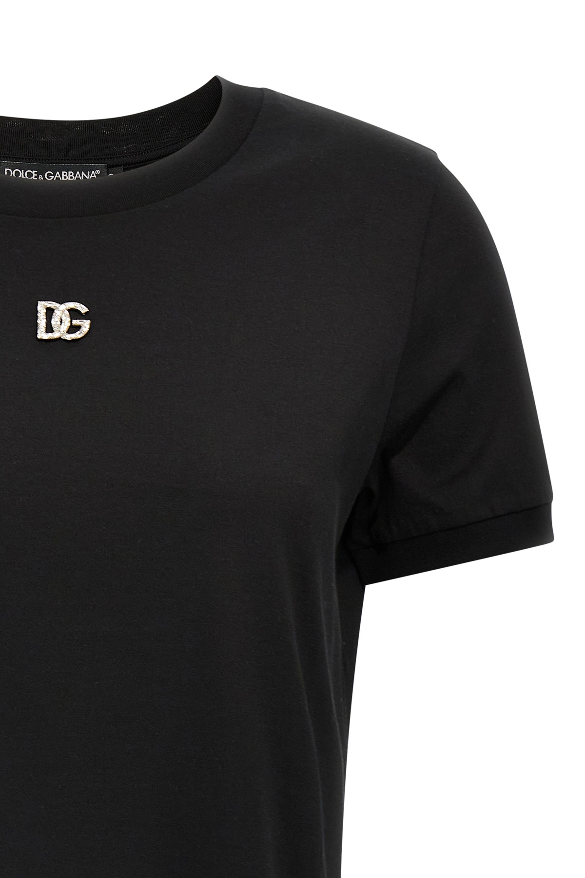 Cotton T-shirt with rhinestone logo applique on the front, crew neck, short sleeves.