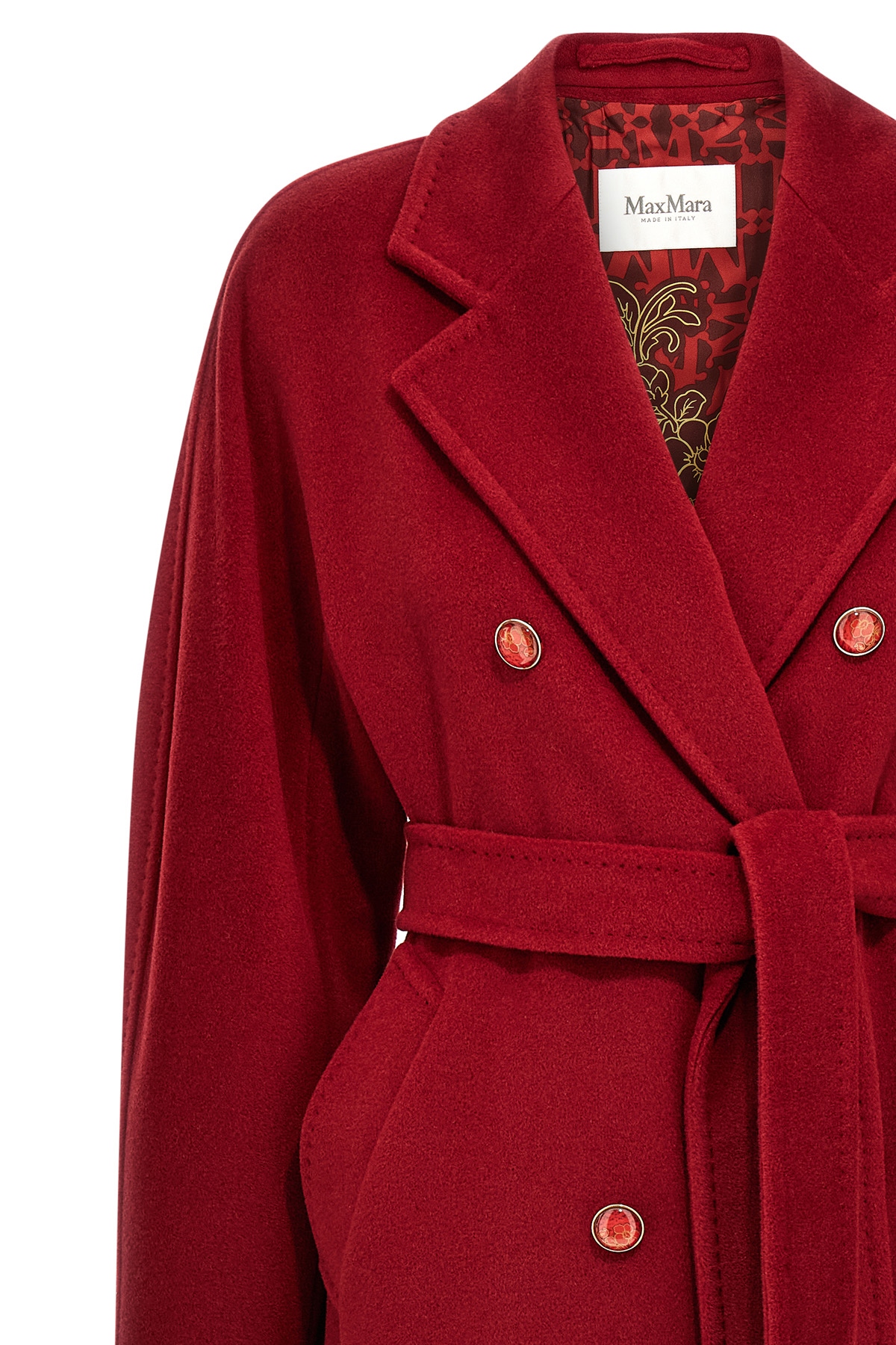 'Ticino' wool and cashmere beaver coat, fold-up kimono sleeves, double-breasted button closure, silk twill lining with central embroidery, pockets, removable belt.