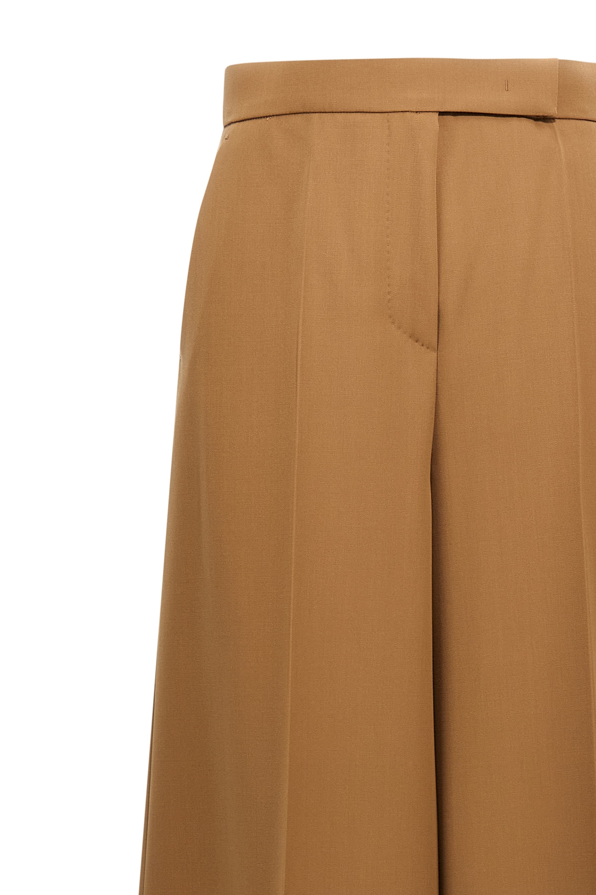 High-waisted 'Ninfa' wool gabardine pants with wide leg, stretched pleat, pockets, zip, hook and button closure.