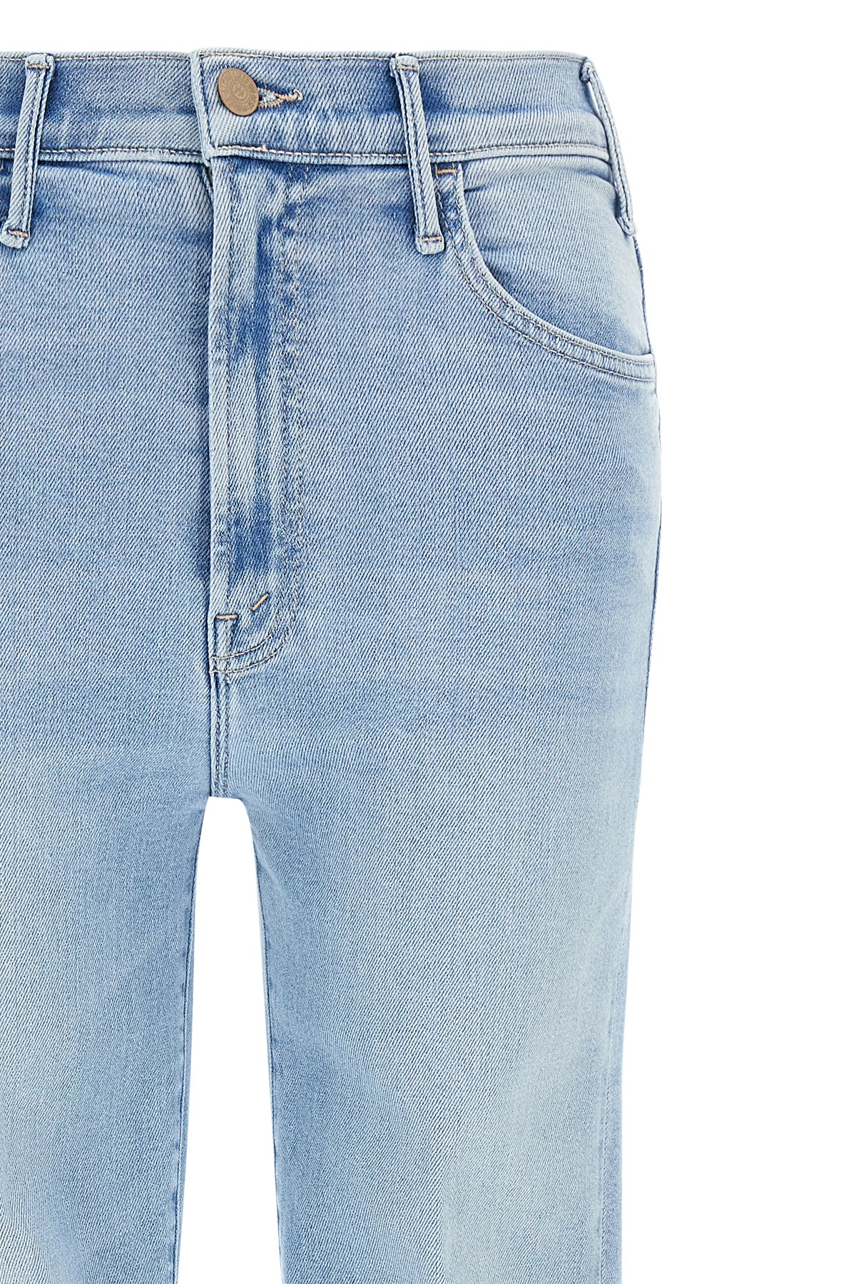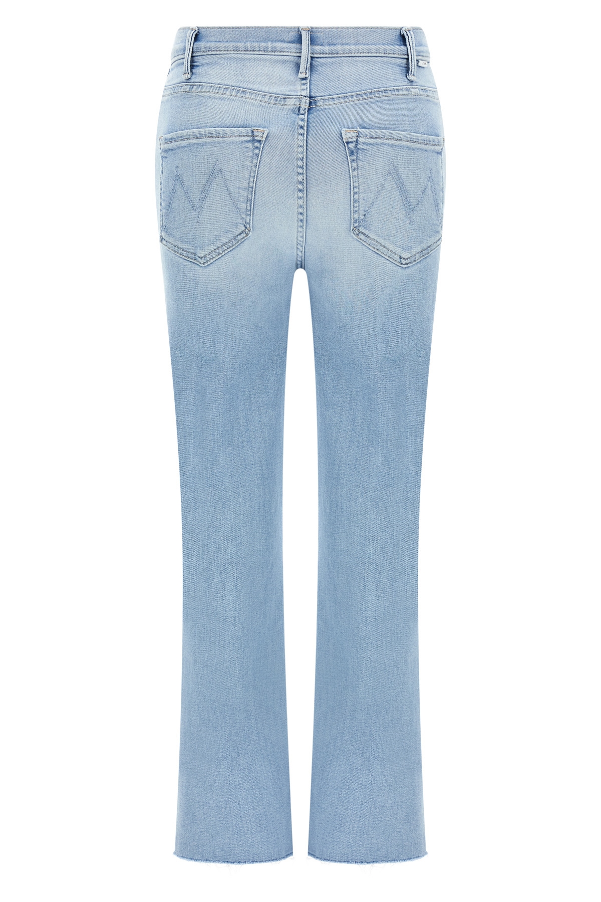 'The Hustler Ankle Fray' denim jeans with zip and button closure, tone-on-tone logo embroidery on the back pockets and frayed leg hem.