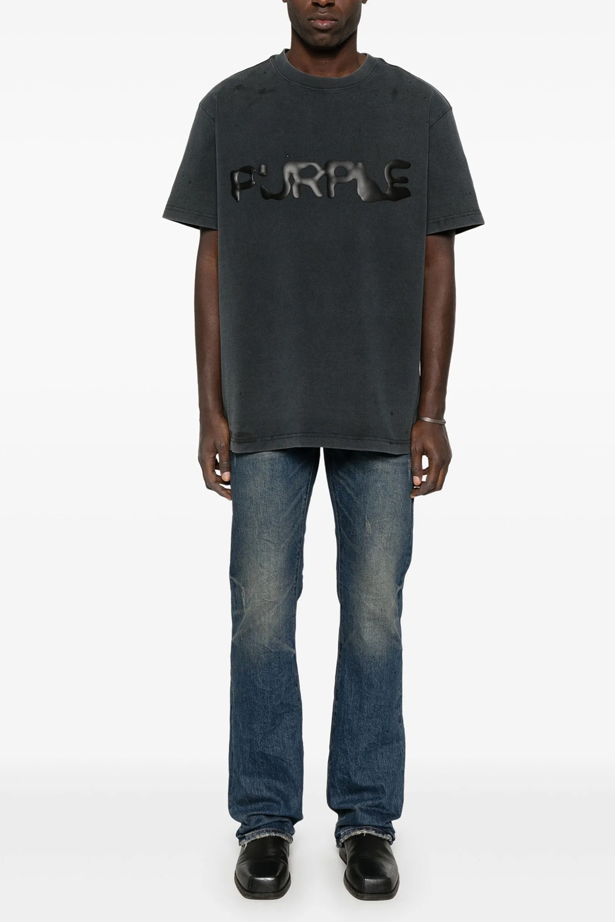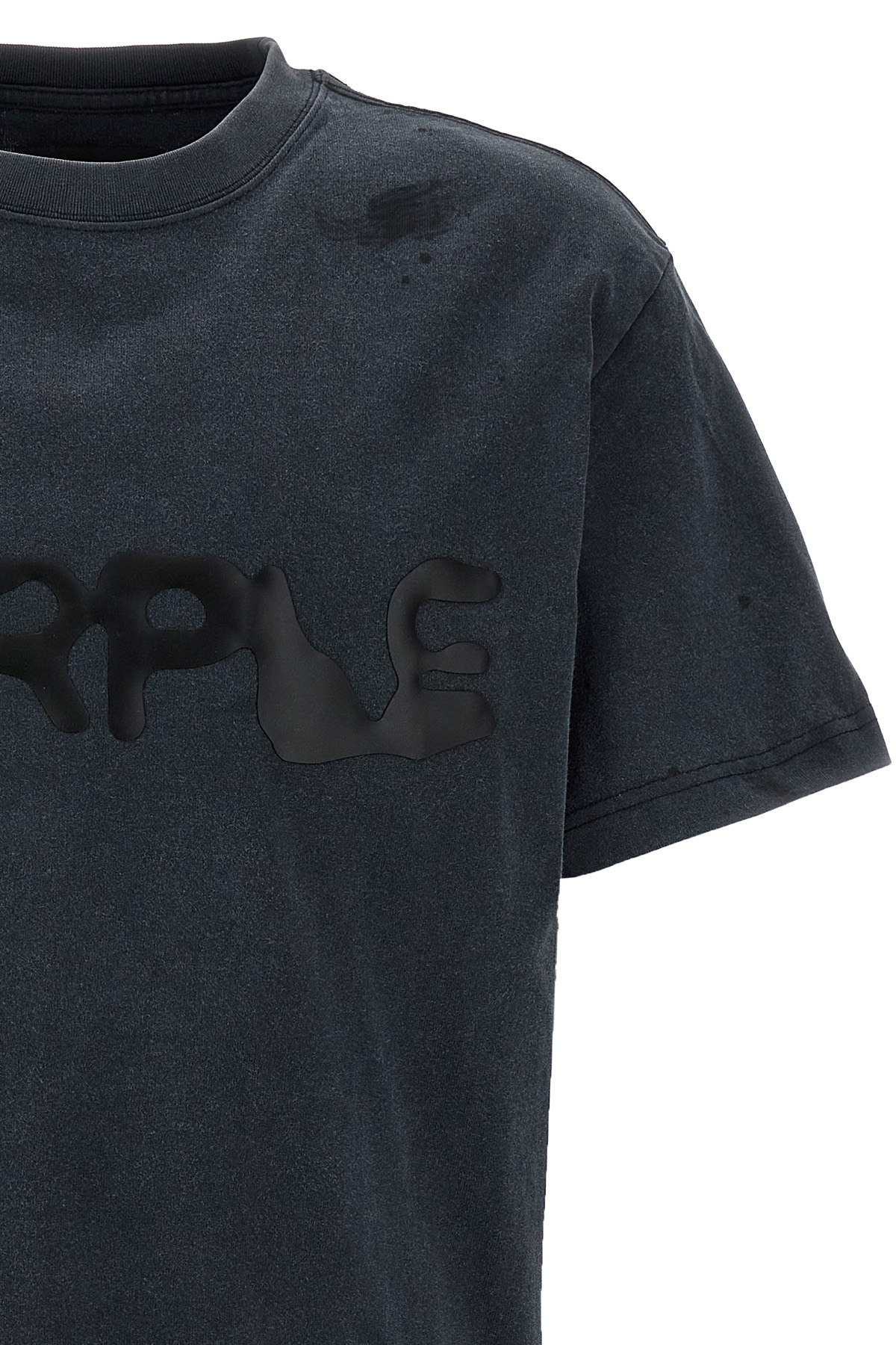 'Liquid Wordmark' delave cotton jersey t-shirt with small stains, front silicone logo, crew neck, short sleeves.