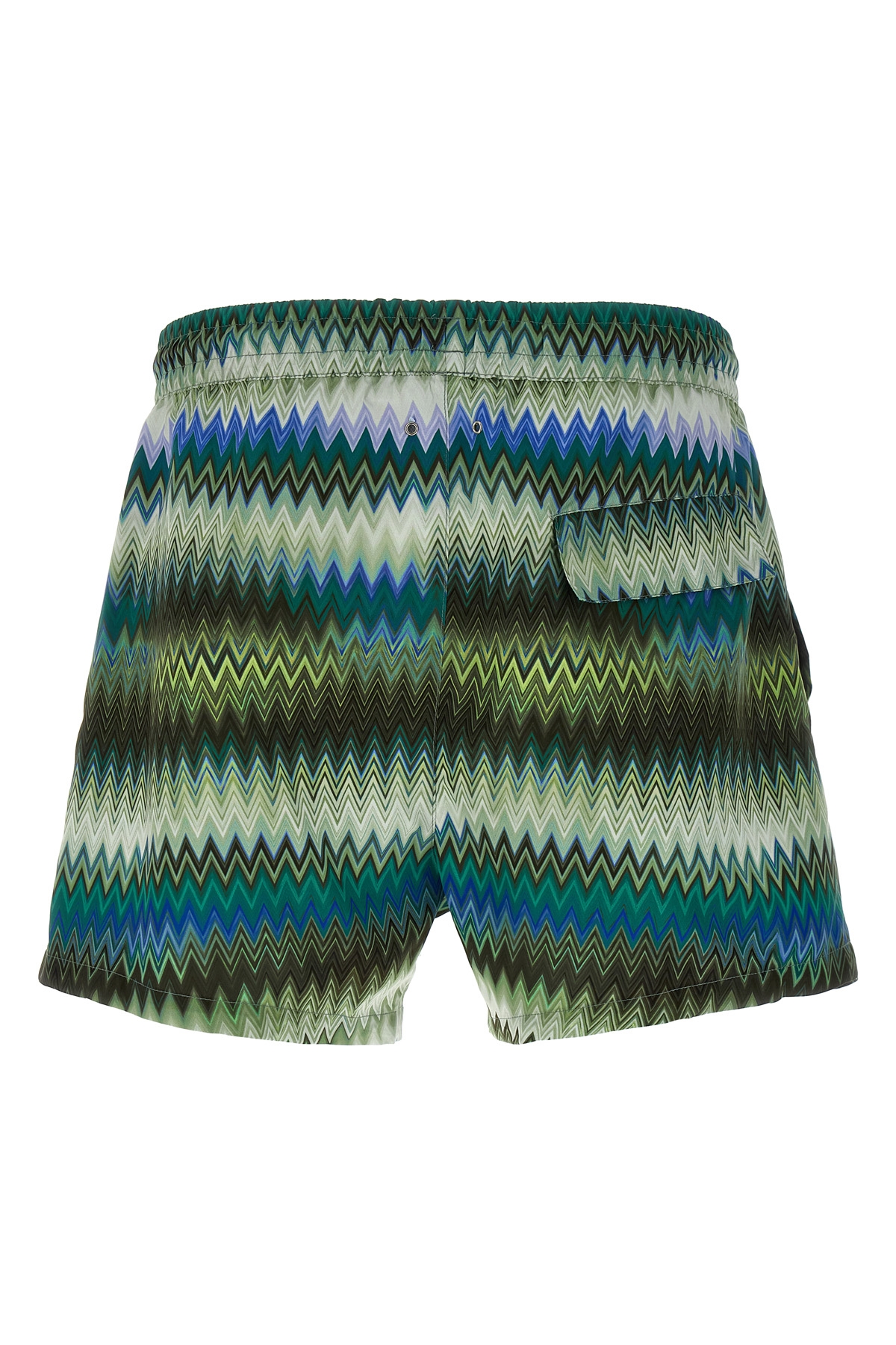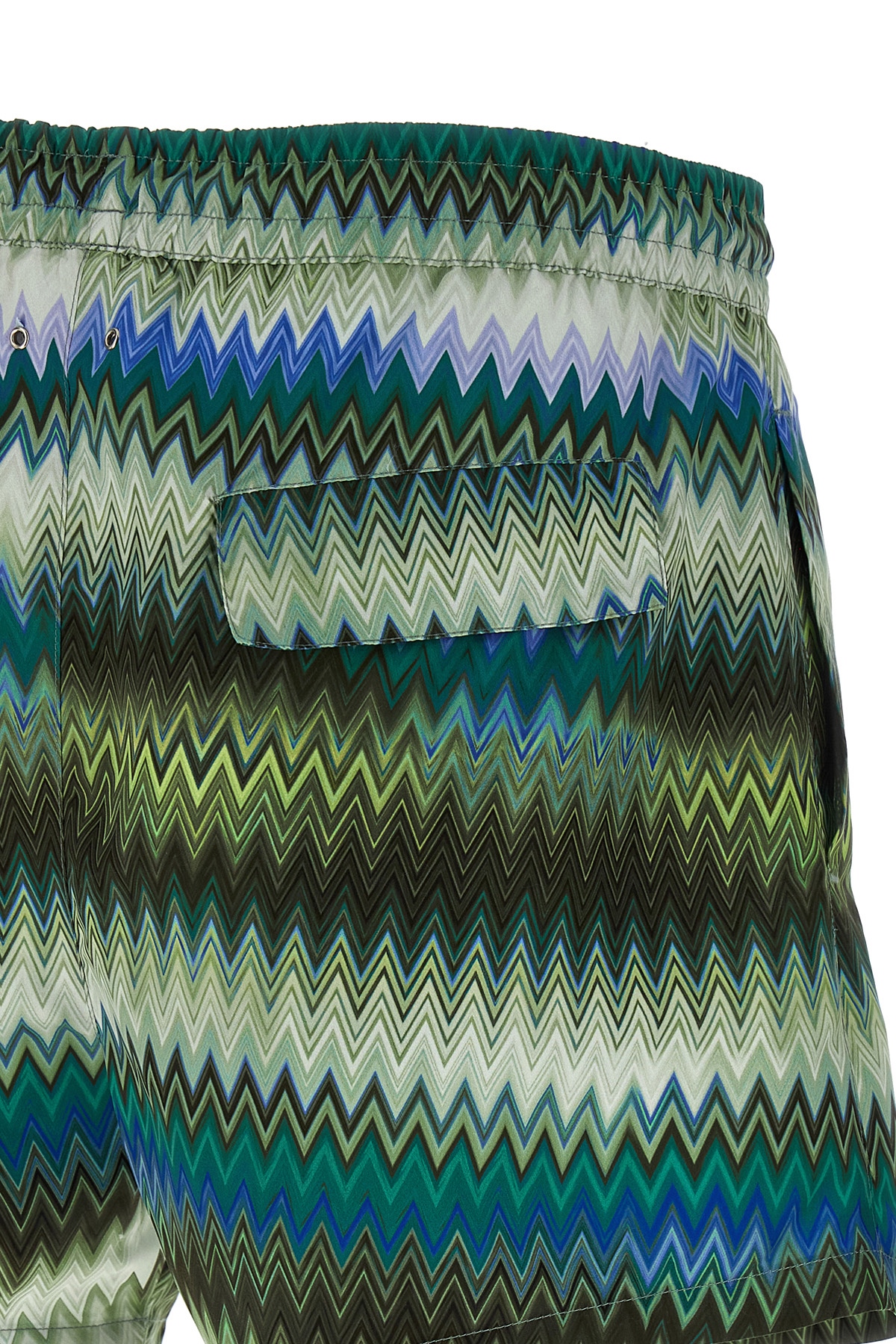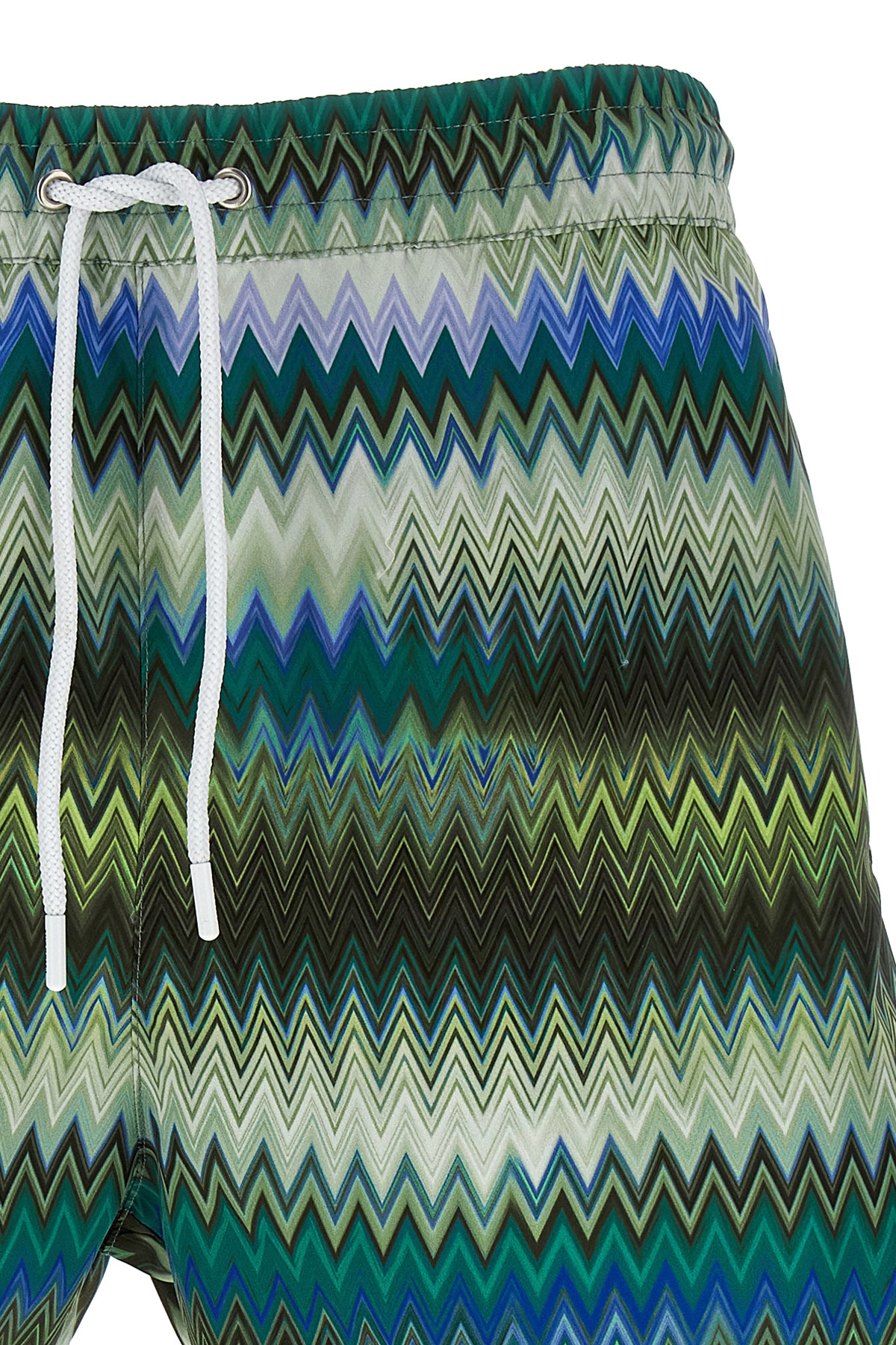 Swimsuit in technical fabric with 'Zig-Zag' print, elastic and adjustable drawstring at the waist, pockets, inner mesh briefs.