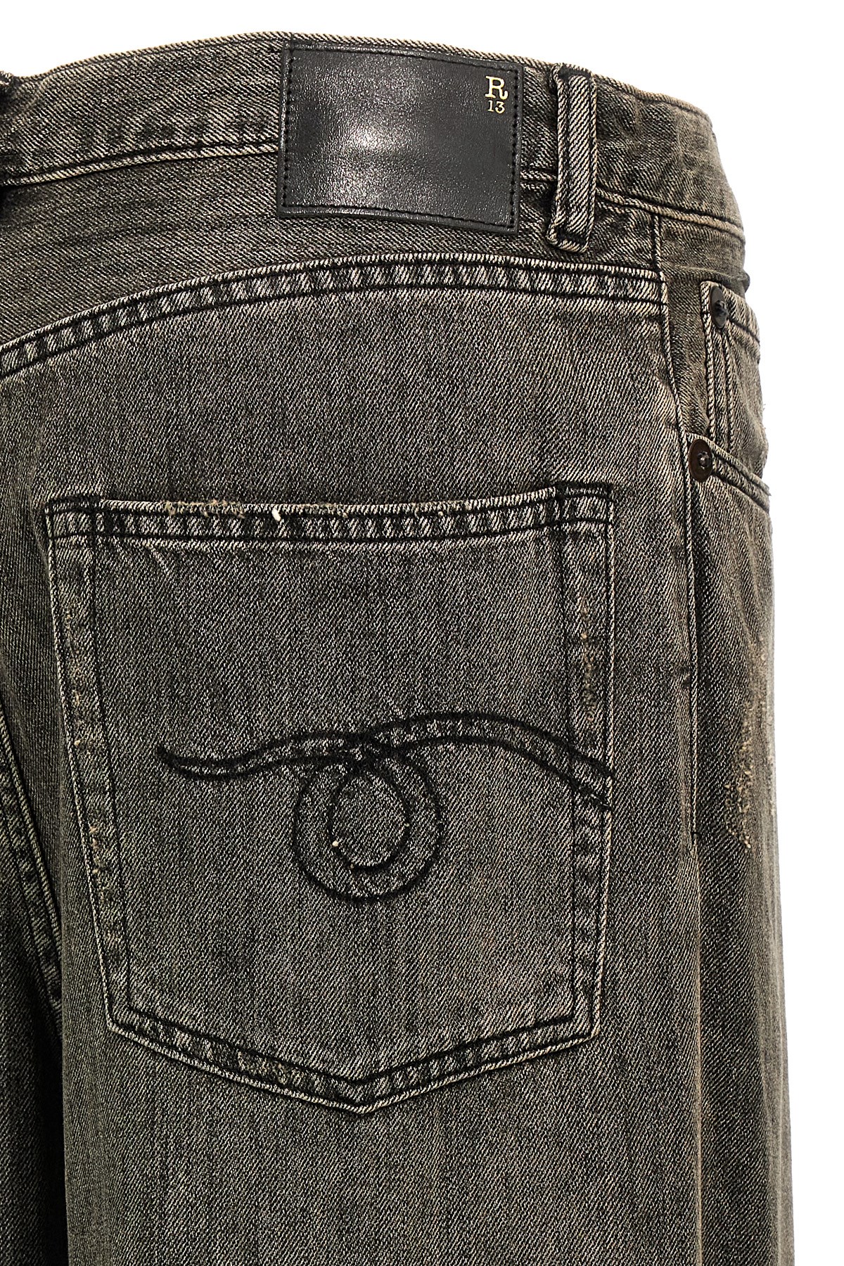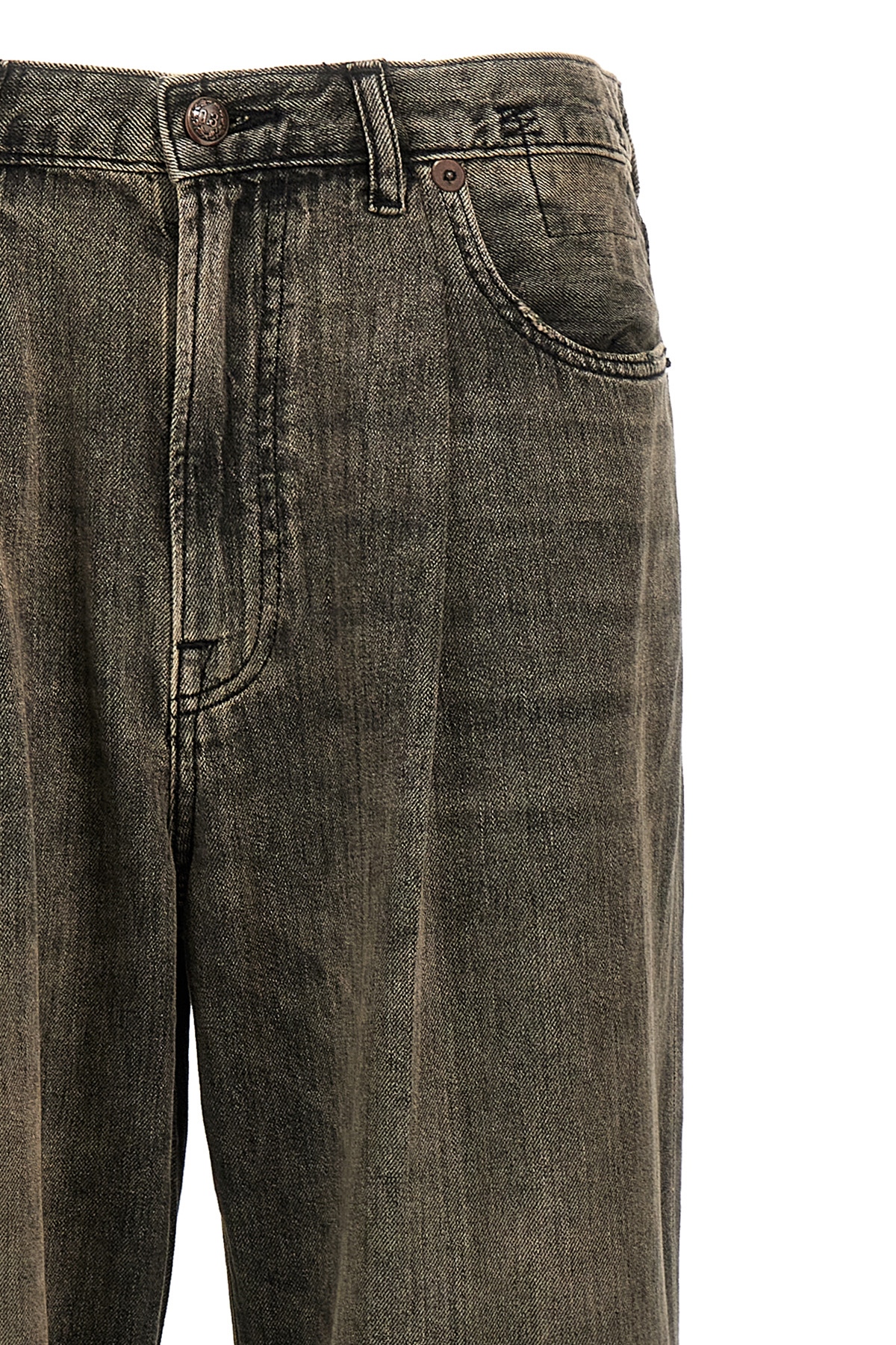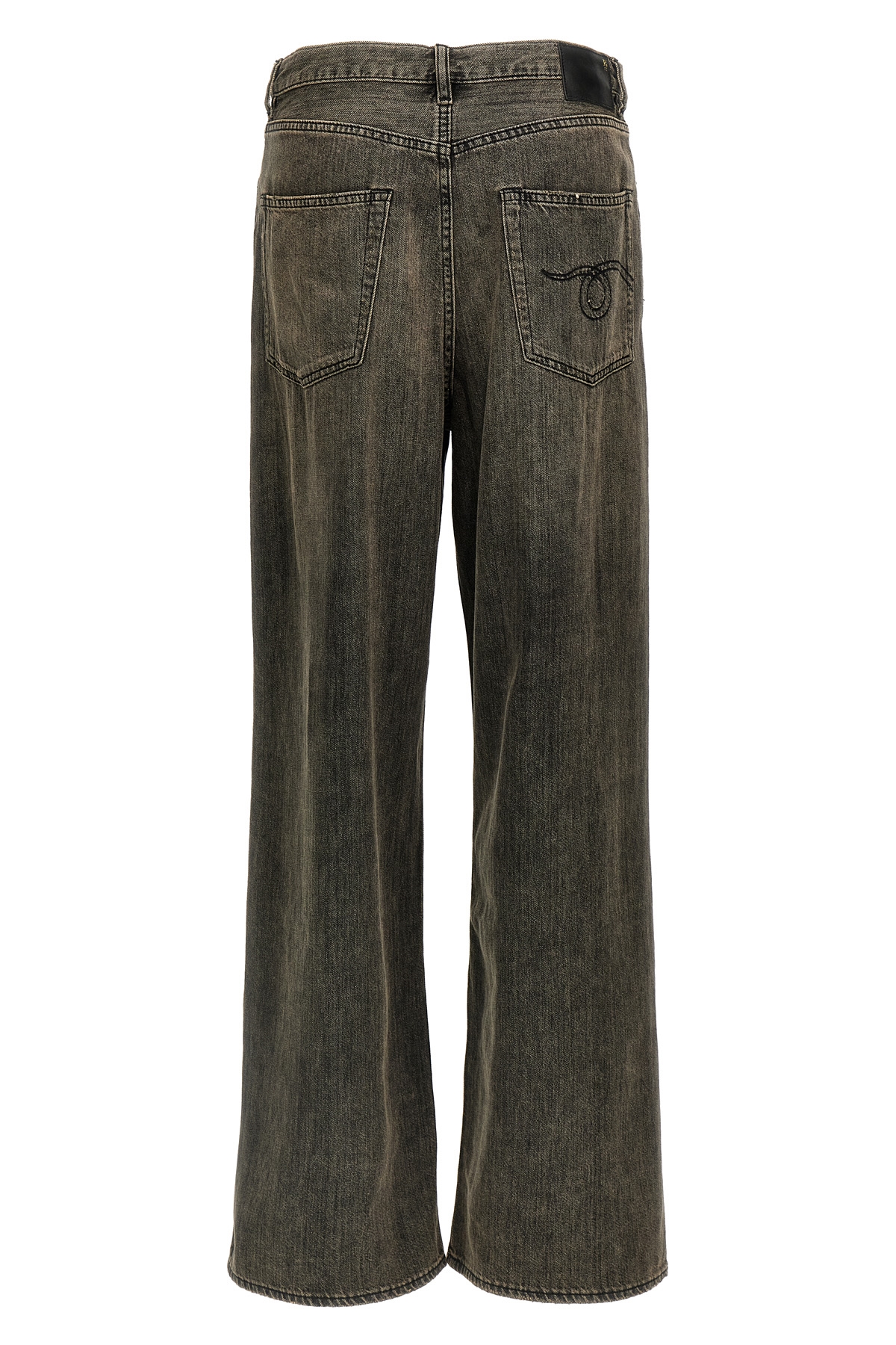 High-waisted delave cotton denim jeans Damon with wide pleated leg, zip and button closure, five pockets, and back logo tag.
