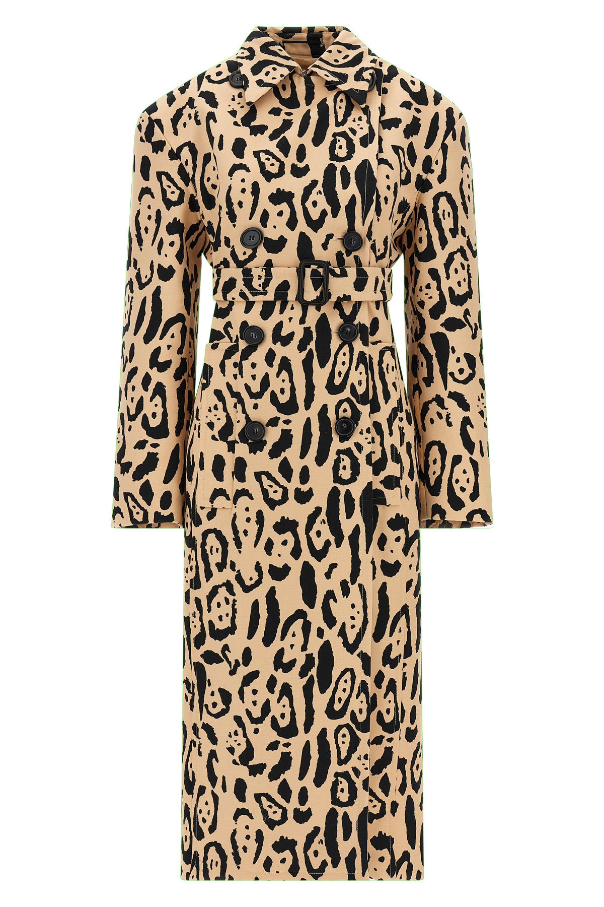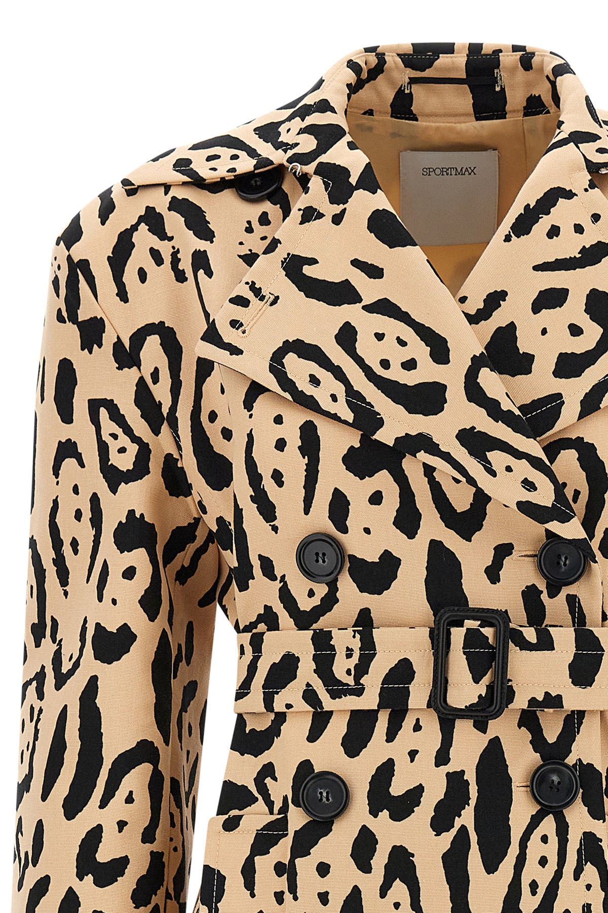 'Grembo' double-breasted trench coat in animal print anti-drip cotton fabric, button closure, pockets, long sleeves, back split.