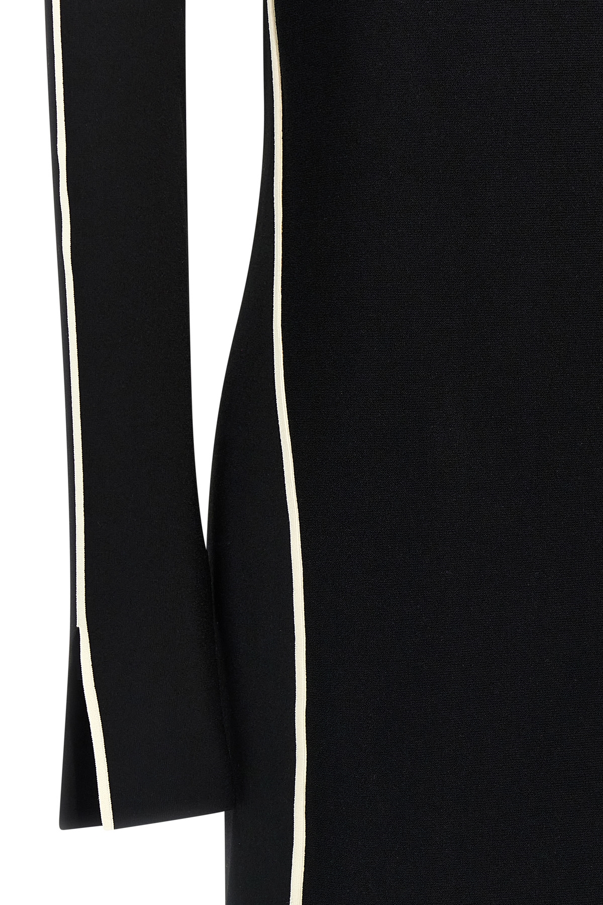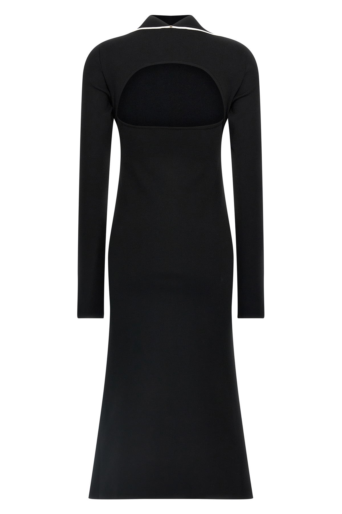 'Operoso' midi dress in viscose blend crepe knit with contrasting details, raised neck, porthole on the back, full skirt and long sleeves.