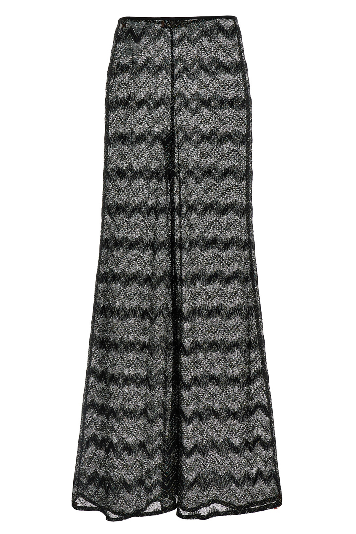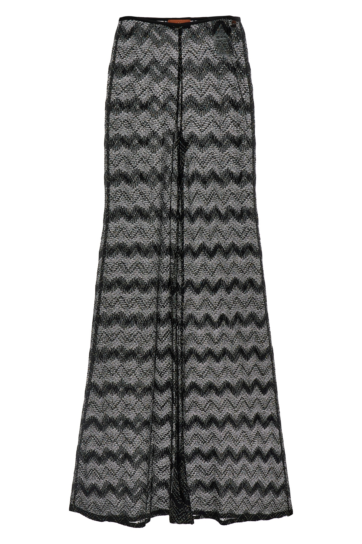 'Zig Zag' viscose and lame pants with chevron pattern, flared leg, elastic waistband.