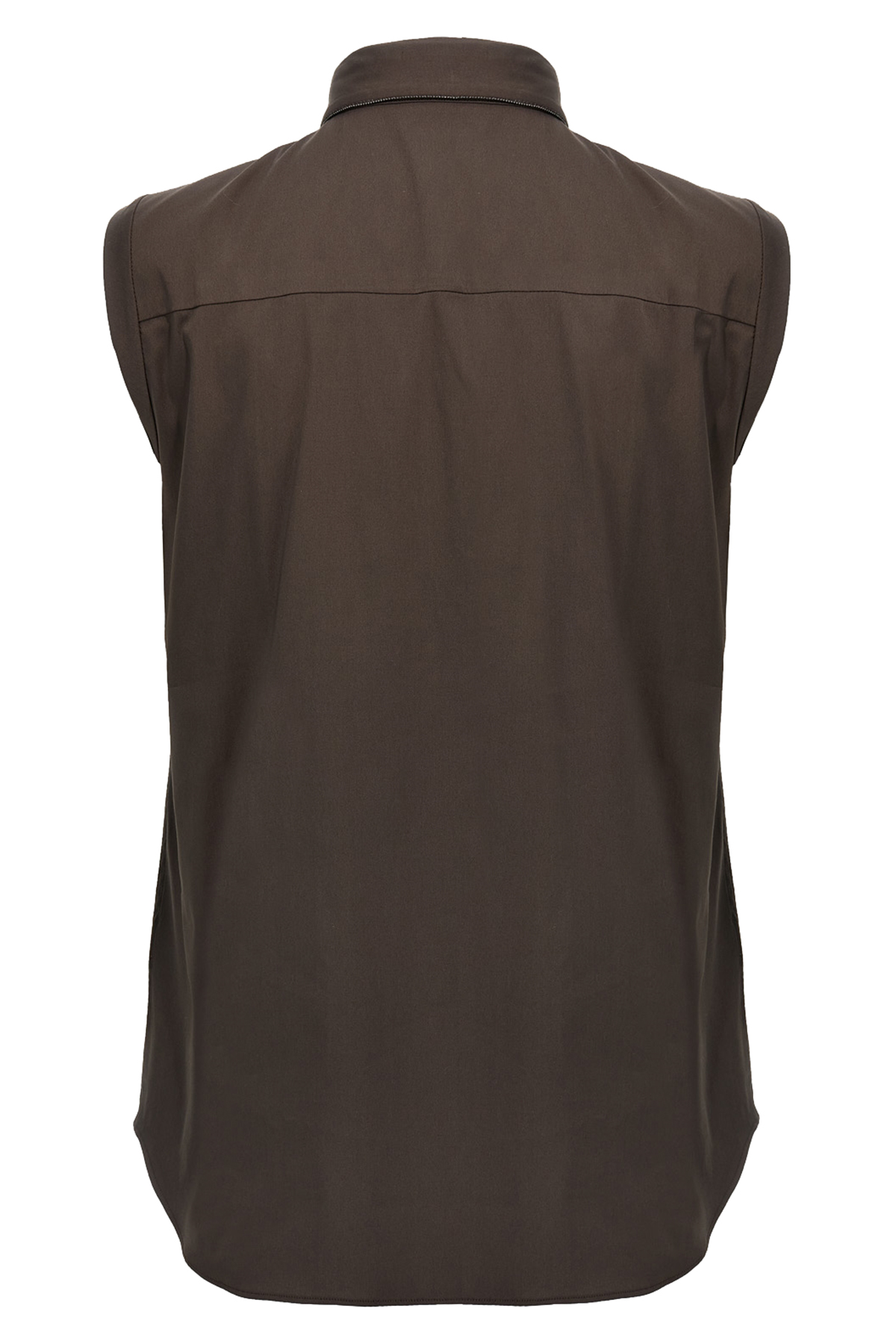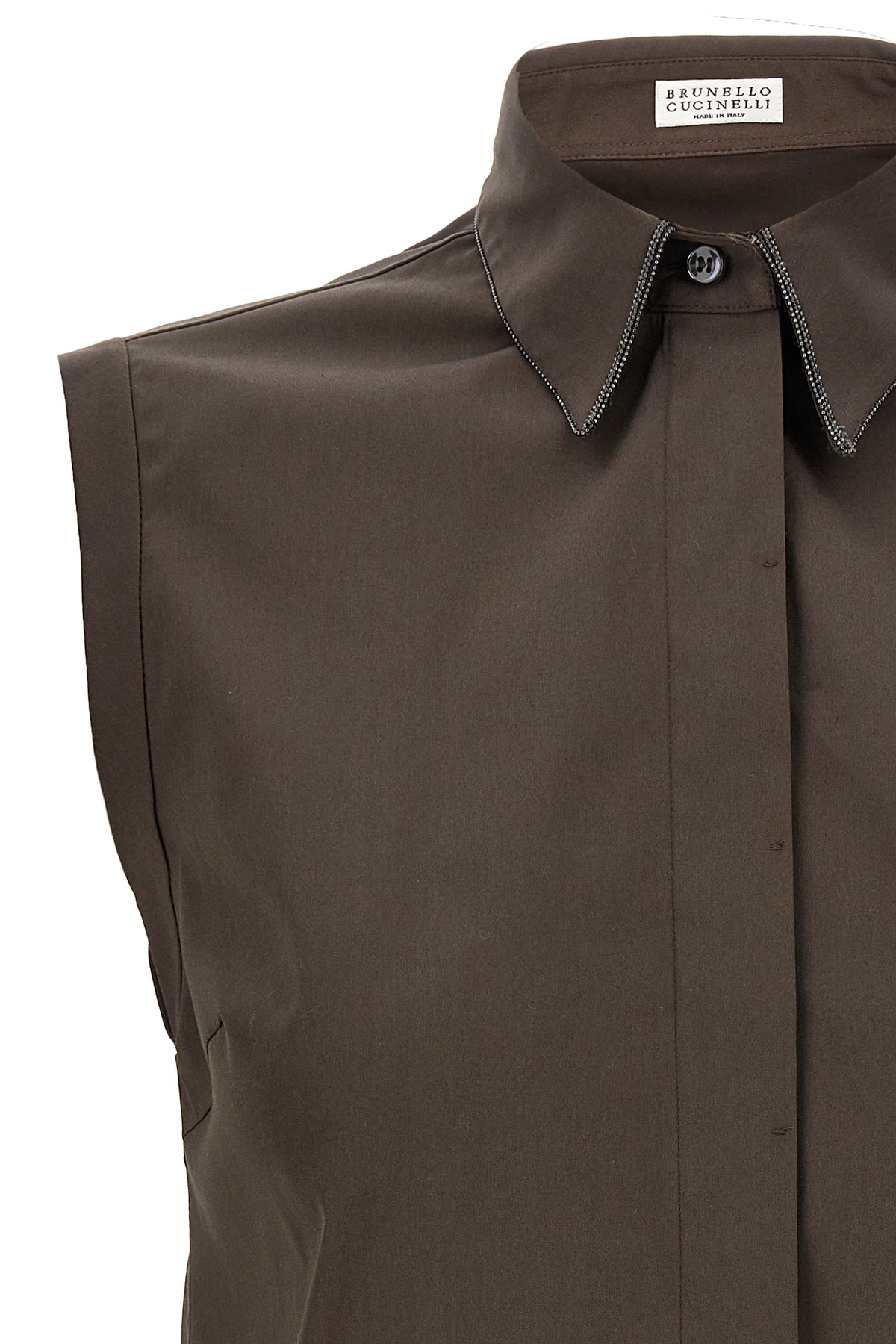 Sleeveless shirt in stretch cotton blend with Monile piping collar, button closure.