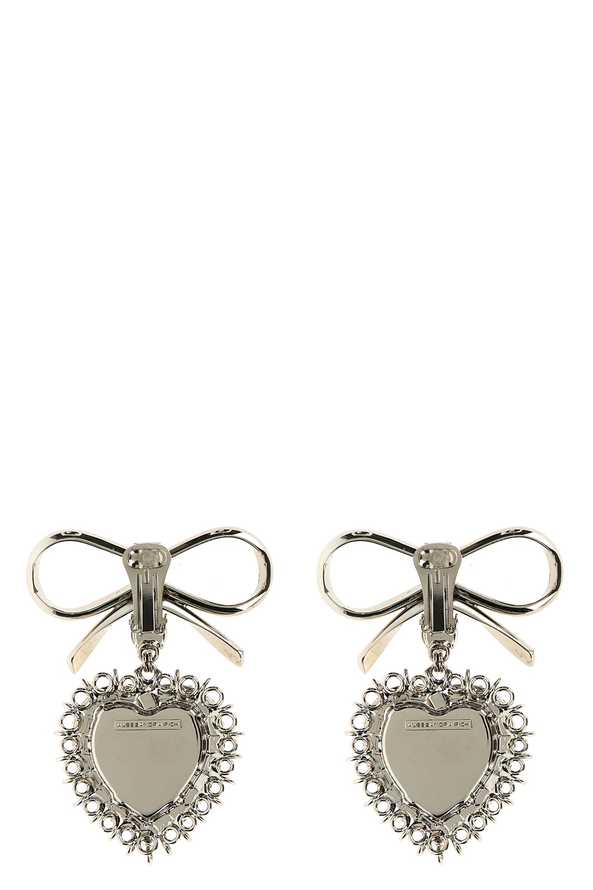 Metal bow earrings, with heart-shaped crystal pendant, clip closure. THIS PRODUCT CANNOT BE RETURNED.