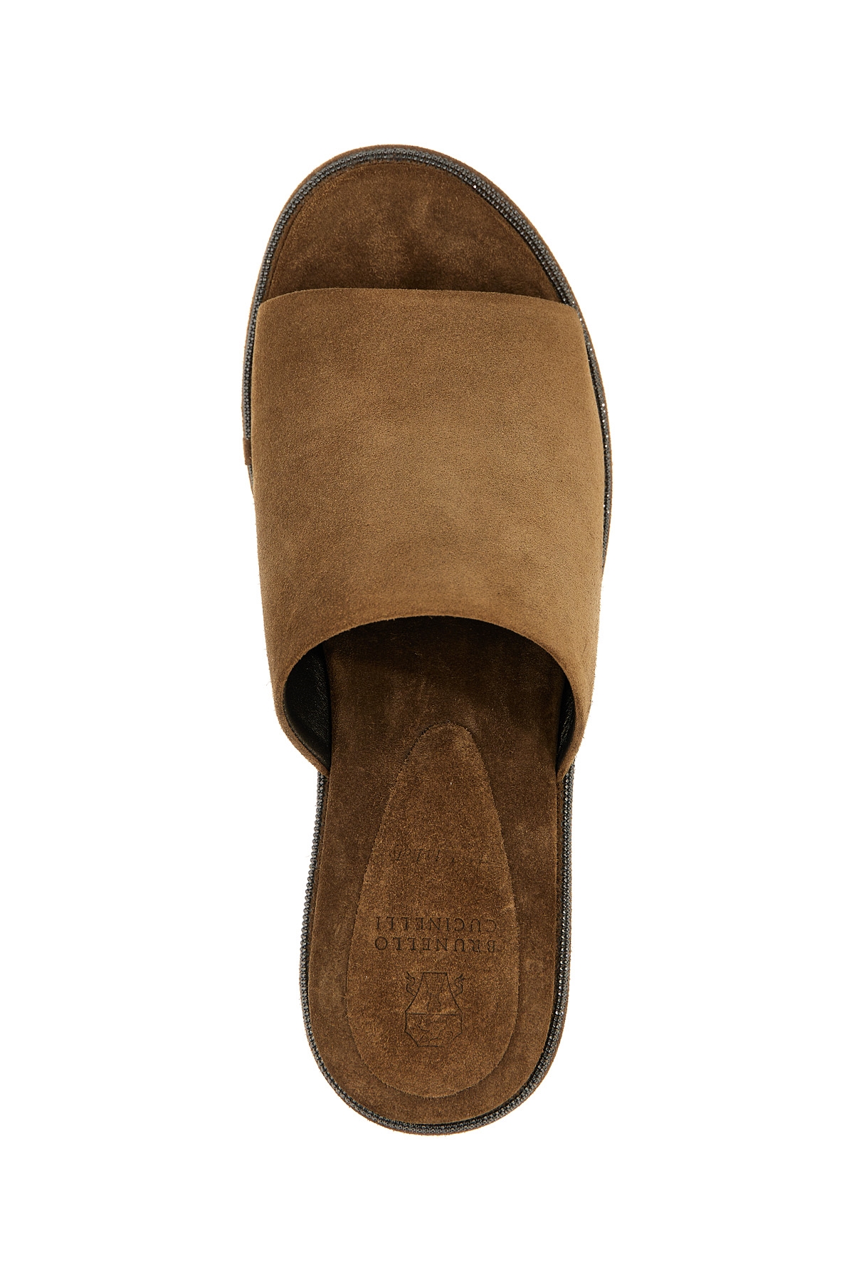 'Monile' sandals entirely in suede with front opening, jewel detail, rubber sole.