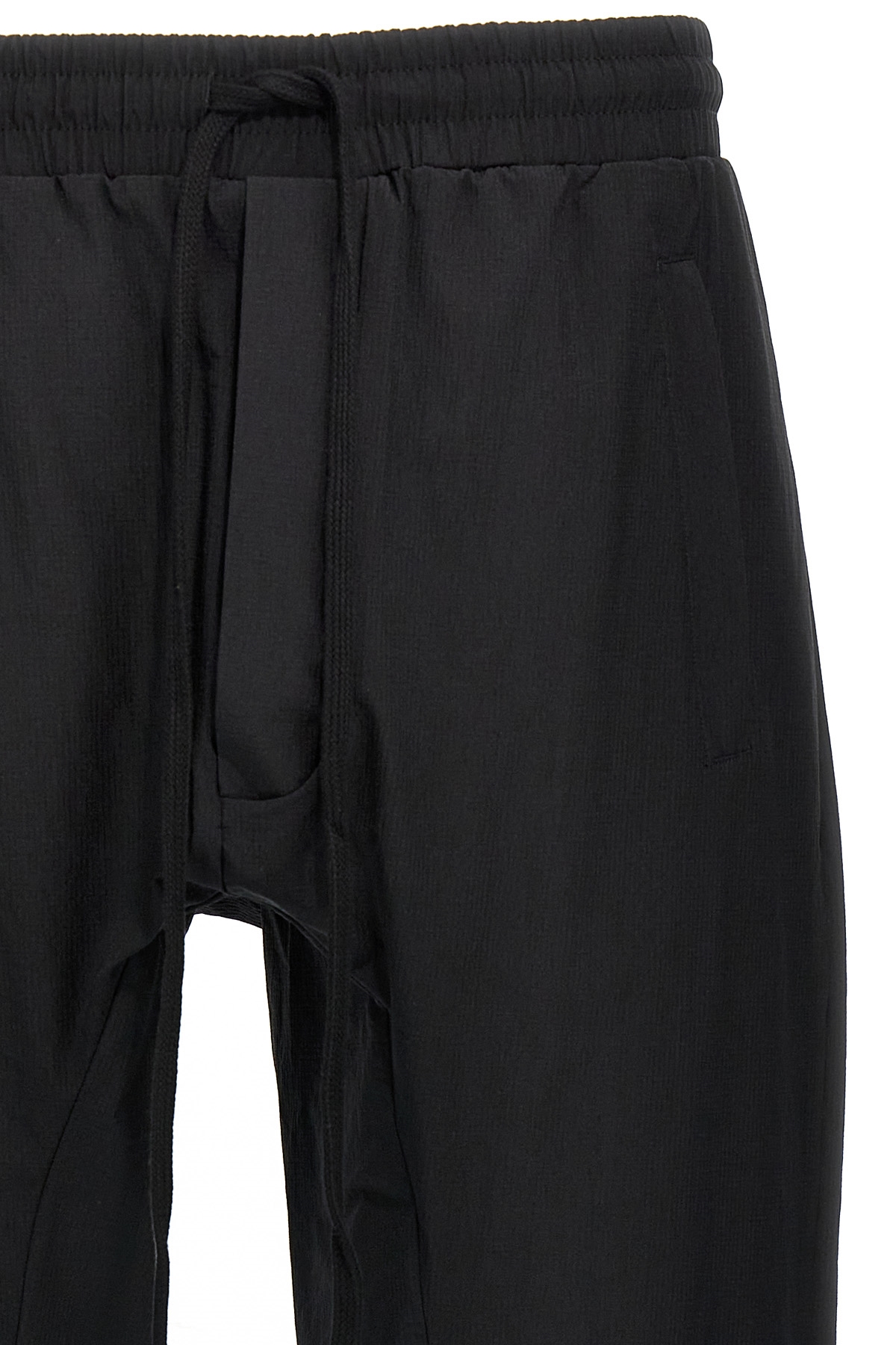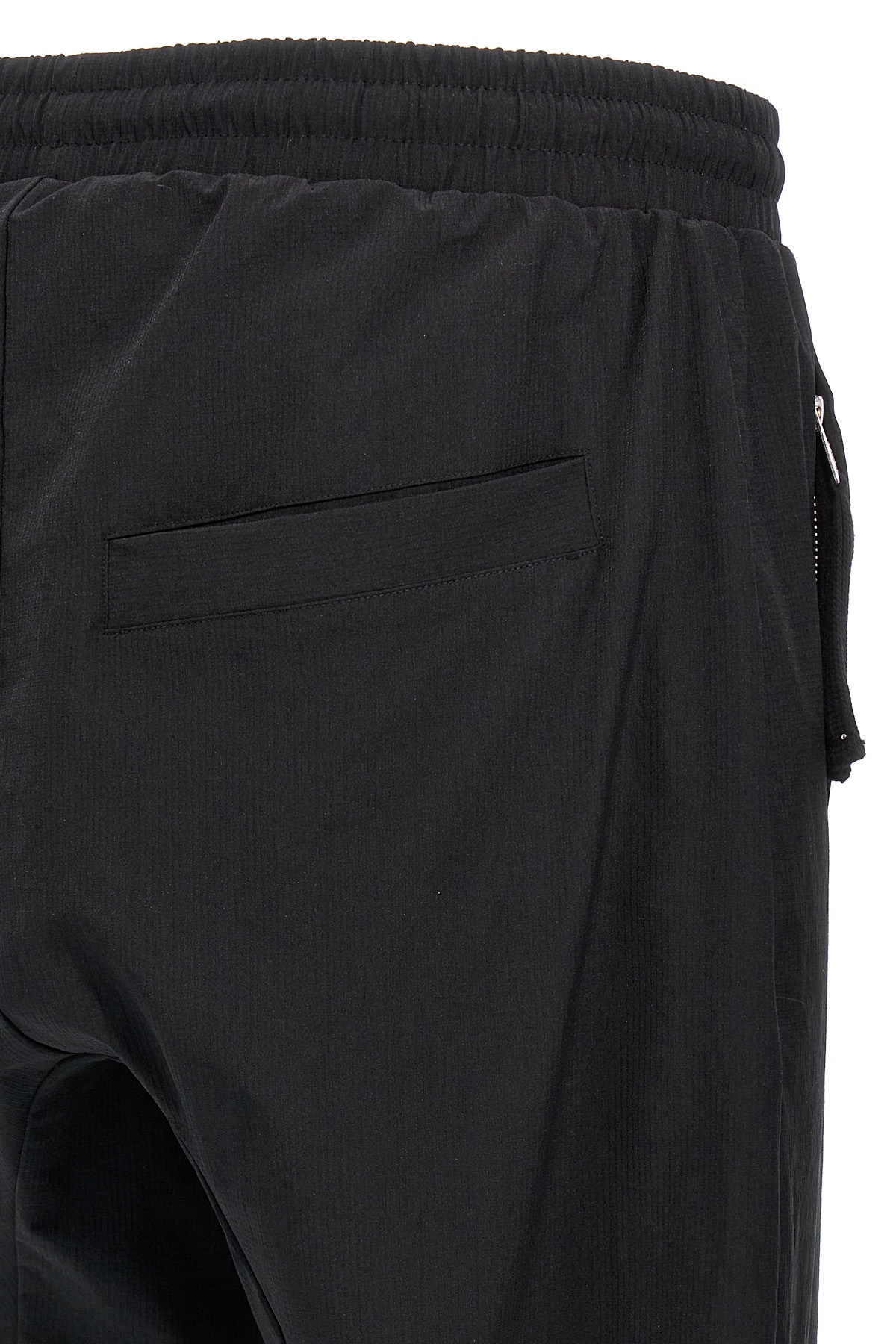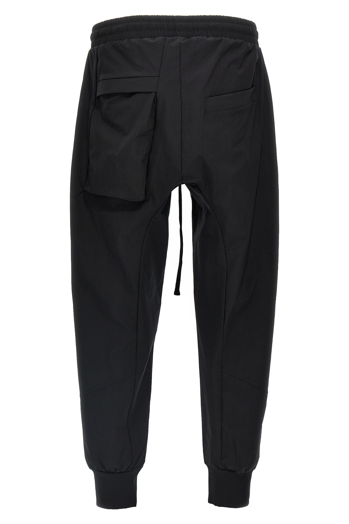 'M ST 493' stretch ripstop nylon joggers with low crotch, adjustable drawstring elastic at the waist, pockets, elastic cuffs on the leg bottom.