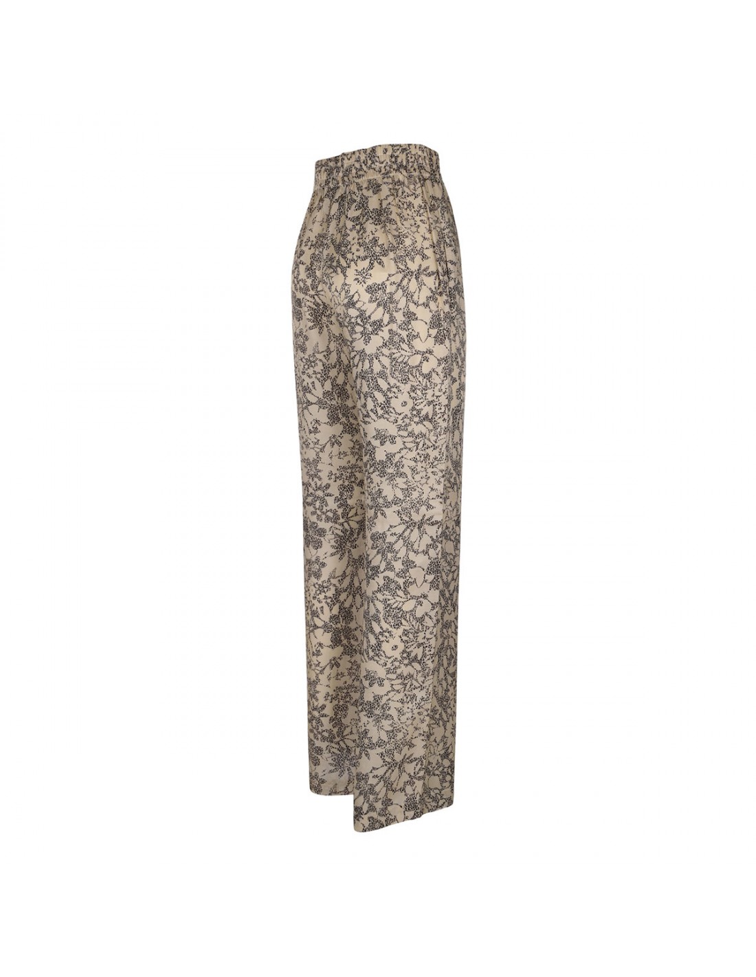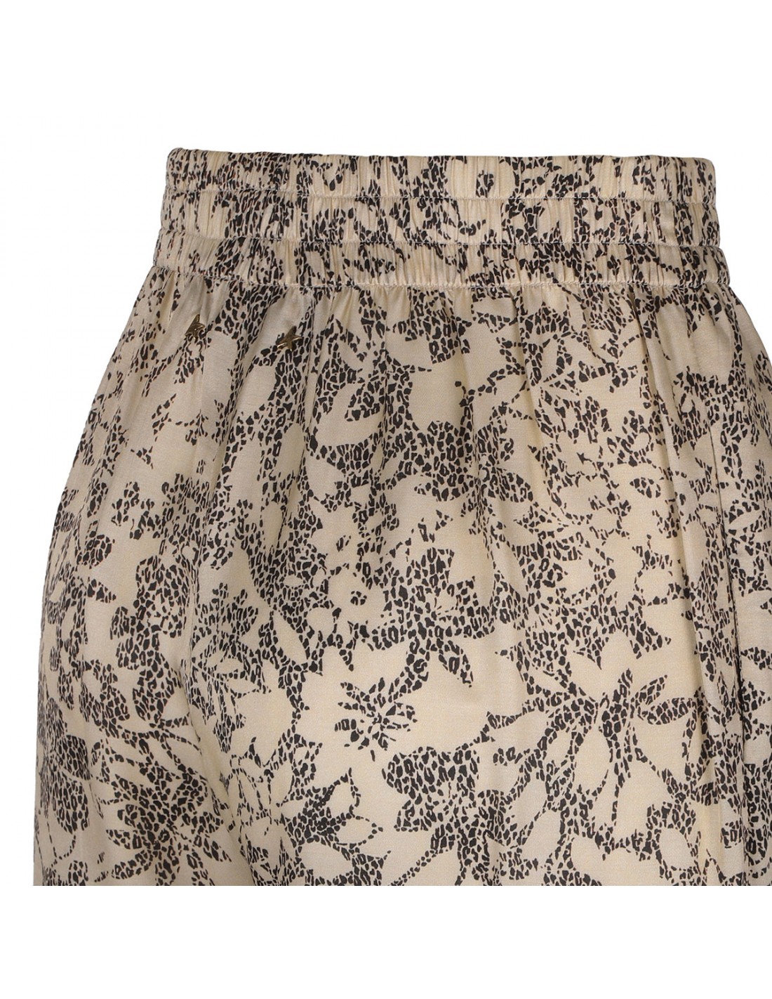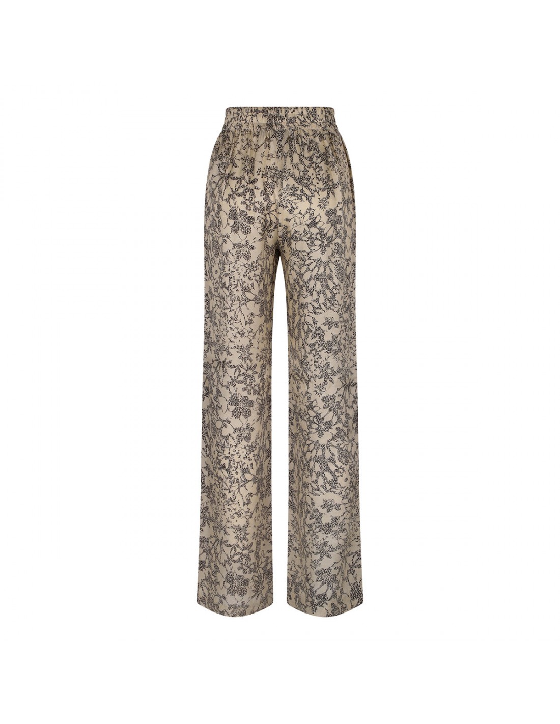 Sand fluid viscose and silk blend jogging pants from Golden Goose featuring safari-floral motif? printed allover, elastic waistband, side pockets, high waist, relaxed silhouette and straight leg.