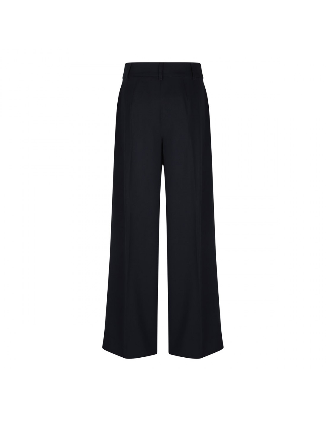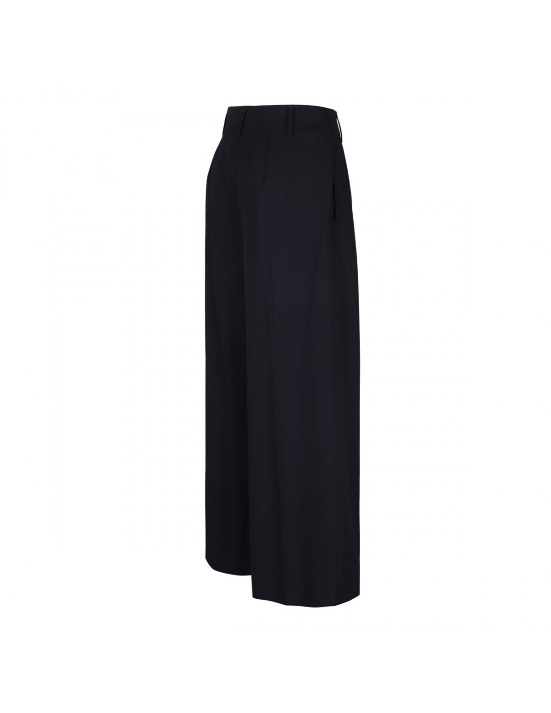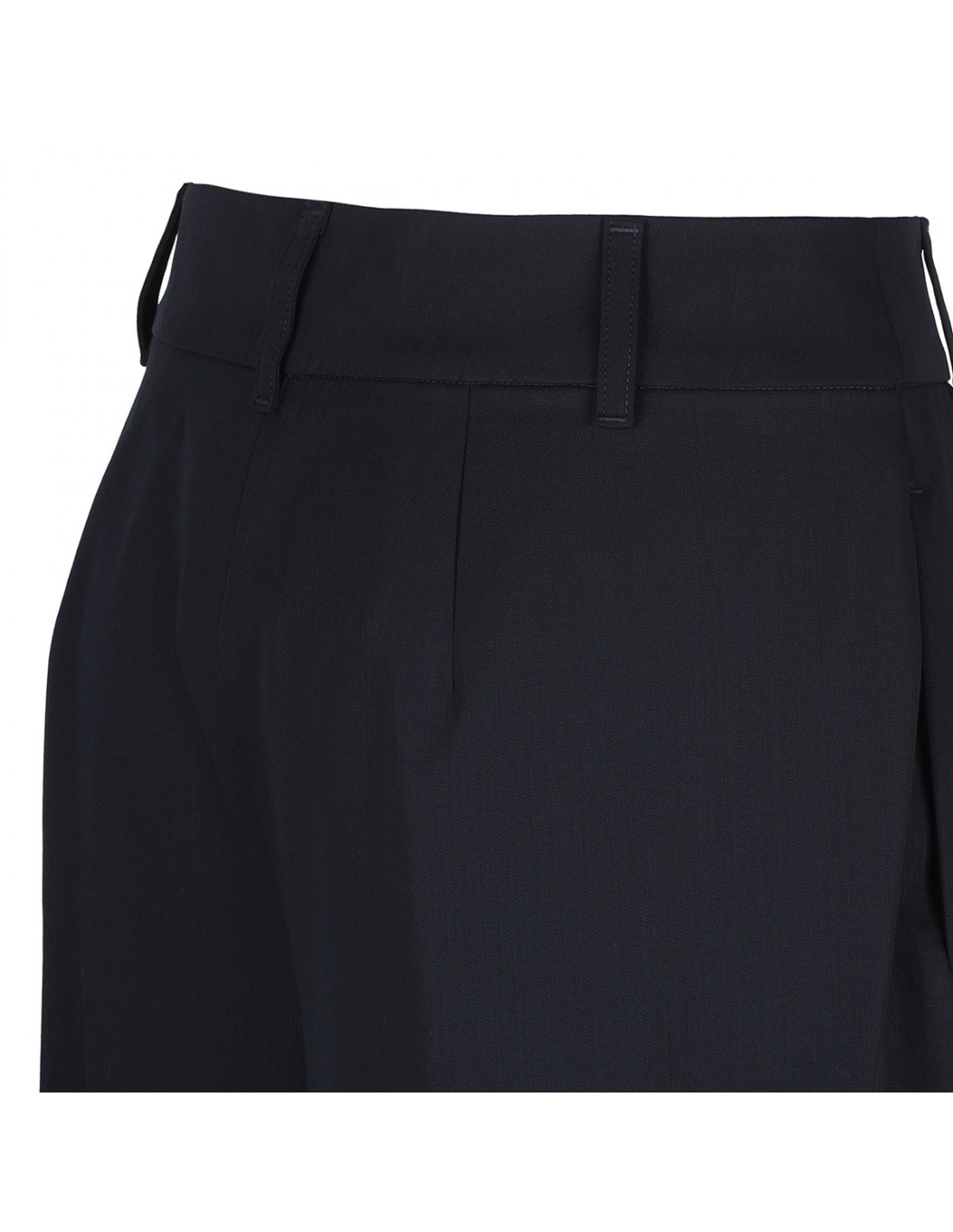 Marine blue virgin wool Nichols pants from 'S Max Mara featuring wide leg, pleats at front and back, zip, hook and button fastening, side slit pockets.
