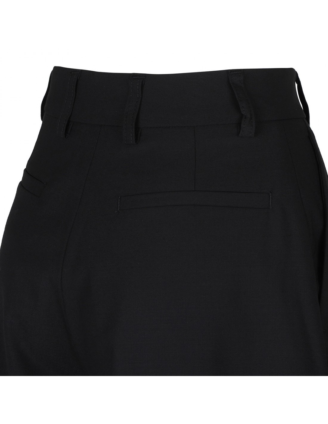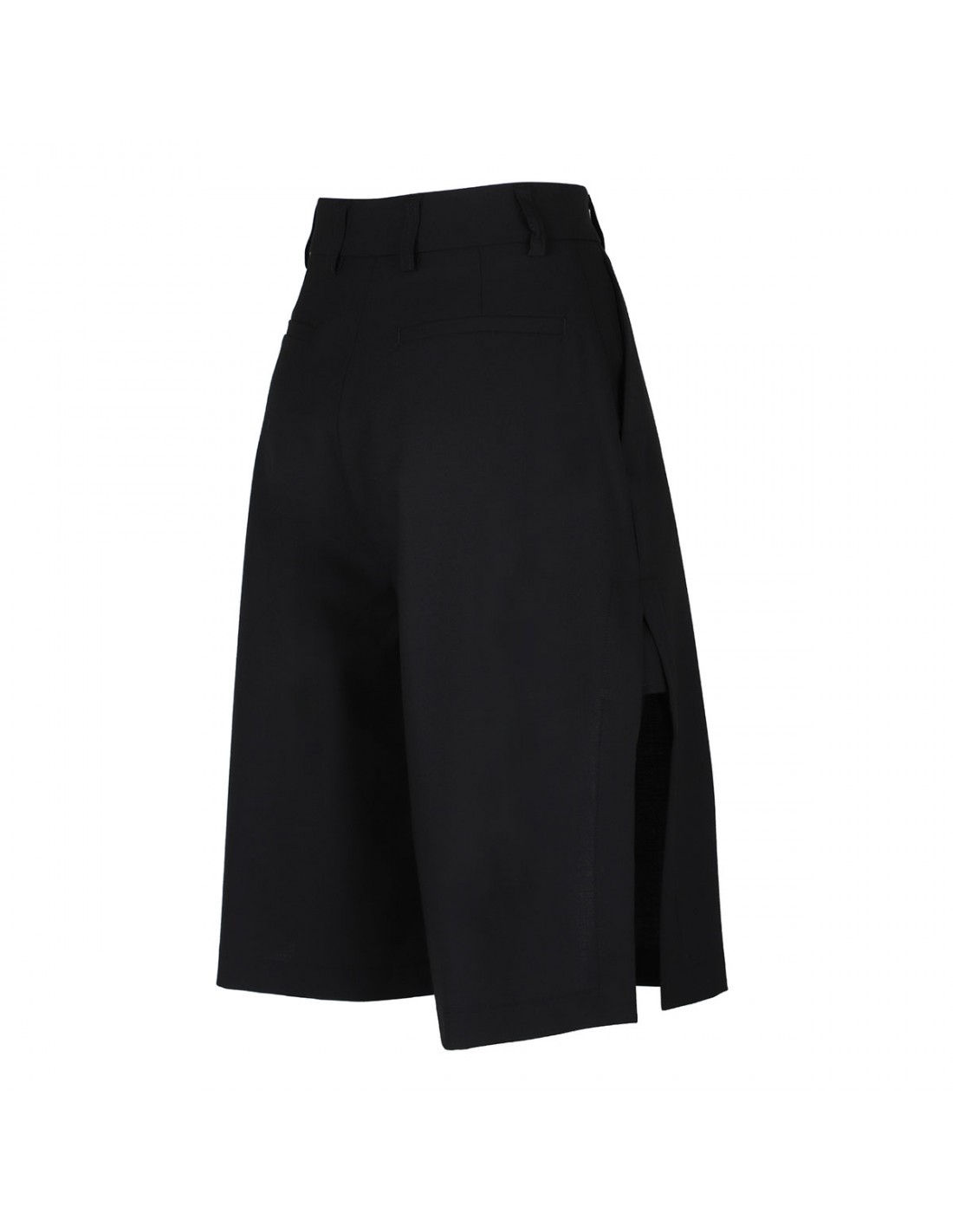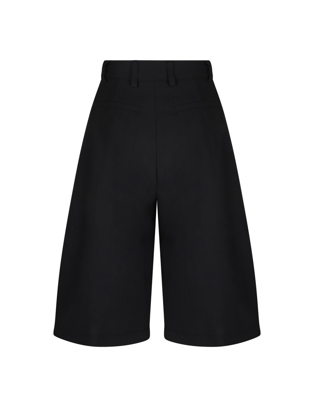 Black viscose blend Brenda bermuda pants from The Latest featuring side slits, wide leg, high-waist, relaxed silhouette, side pockets, button, zip and hook-and-eye front fastening, belt loops on the waist, back pockets.