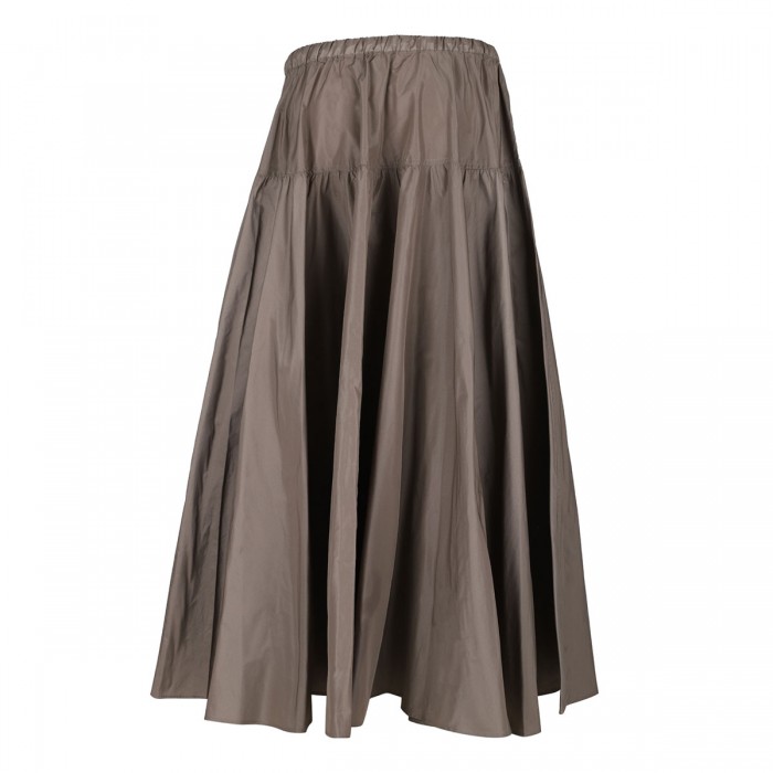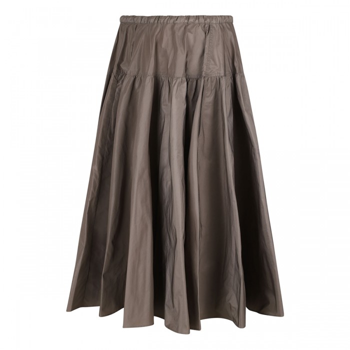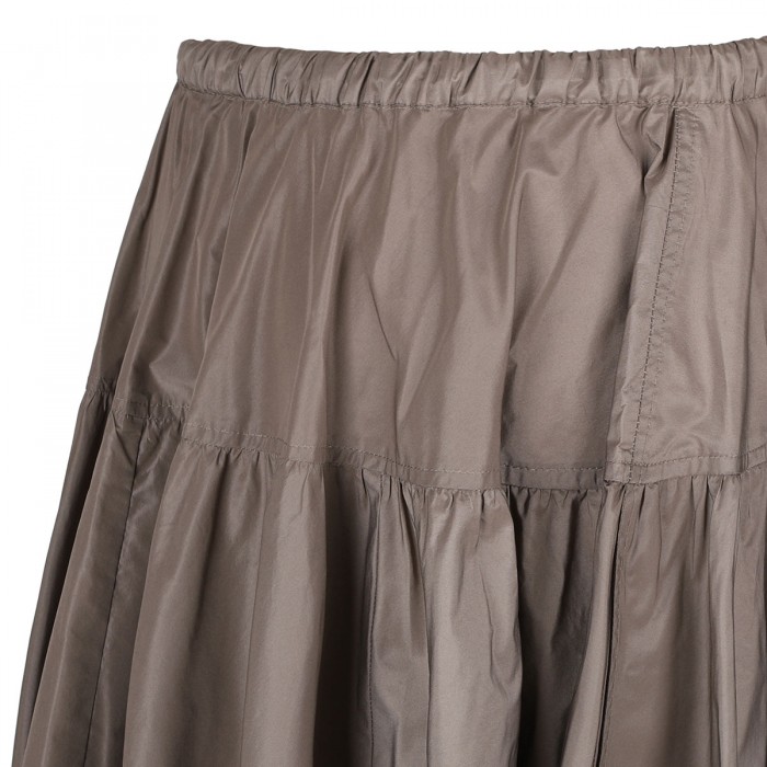 Mocha light brown recycled polyester faille volume skirt from Patou featuring ankle length, tiered construction, elastic waist with grosgrain drawcord and side pockets.