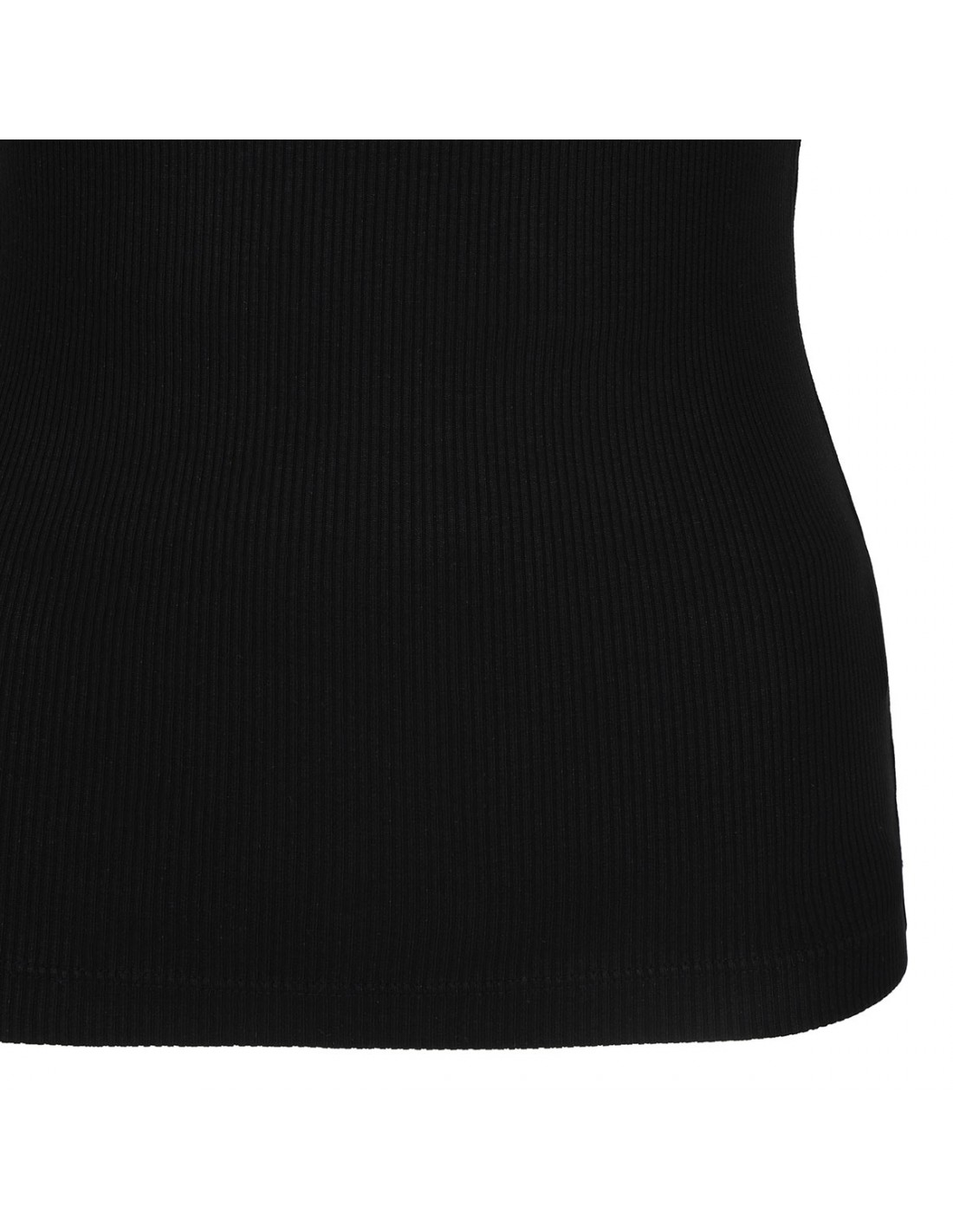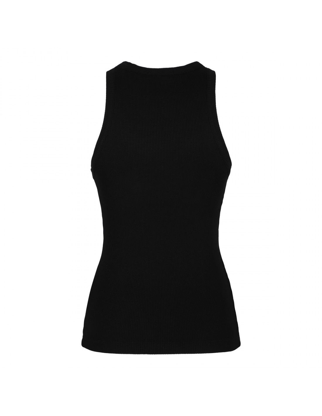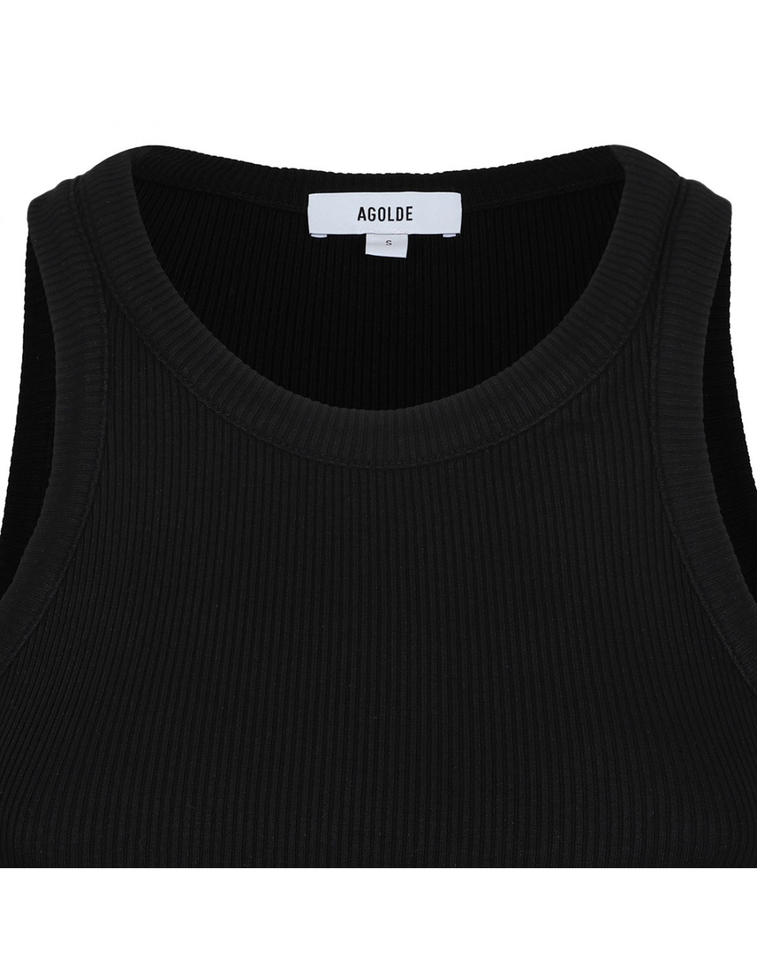 Black signature ribbed organic Rayne tank top from Agolde featuring sporty high neckline, fitted silhouette, sleeveless design.