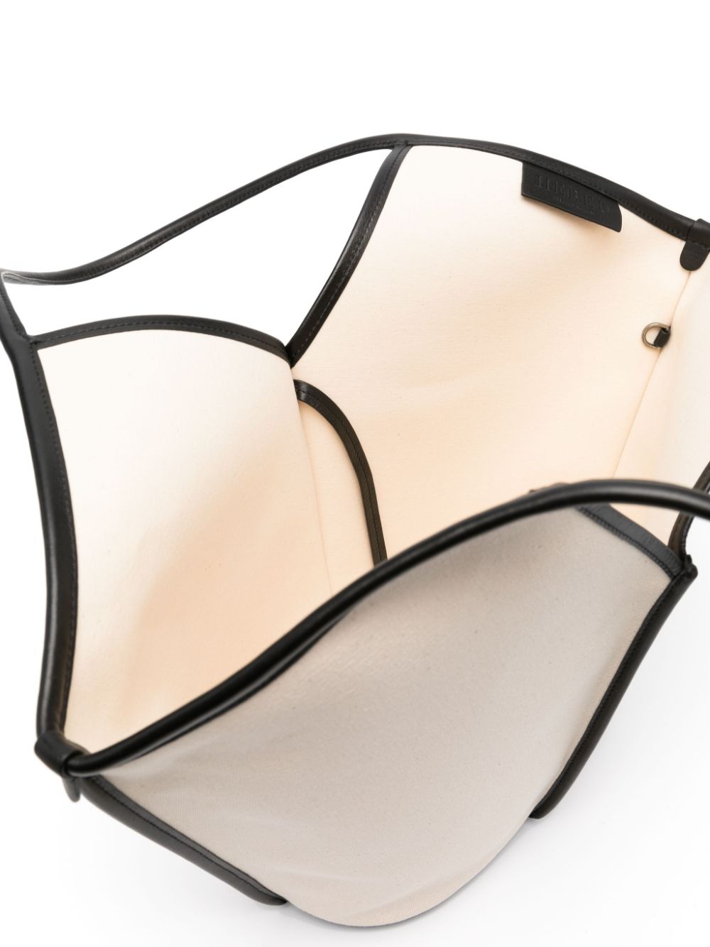 ecru/black canvas/calf leather leather trim two rolled top handles main compartment removable pouch debossed internal logo unlined tie-top fastening This piece comes complete with a protective dust bag.