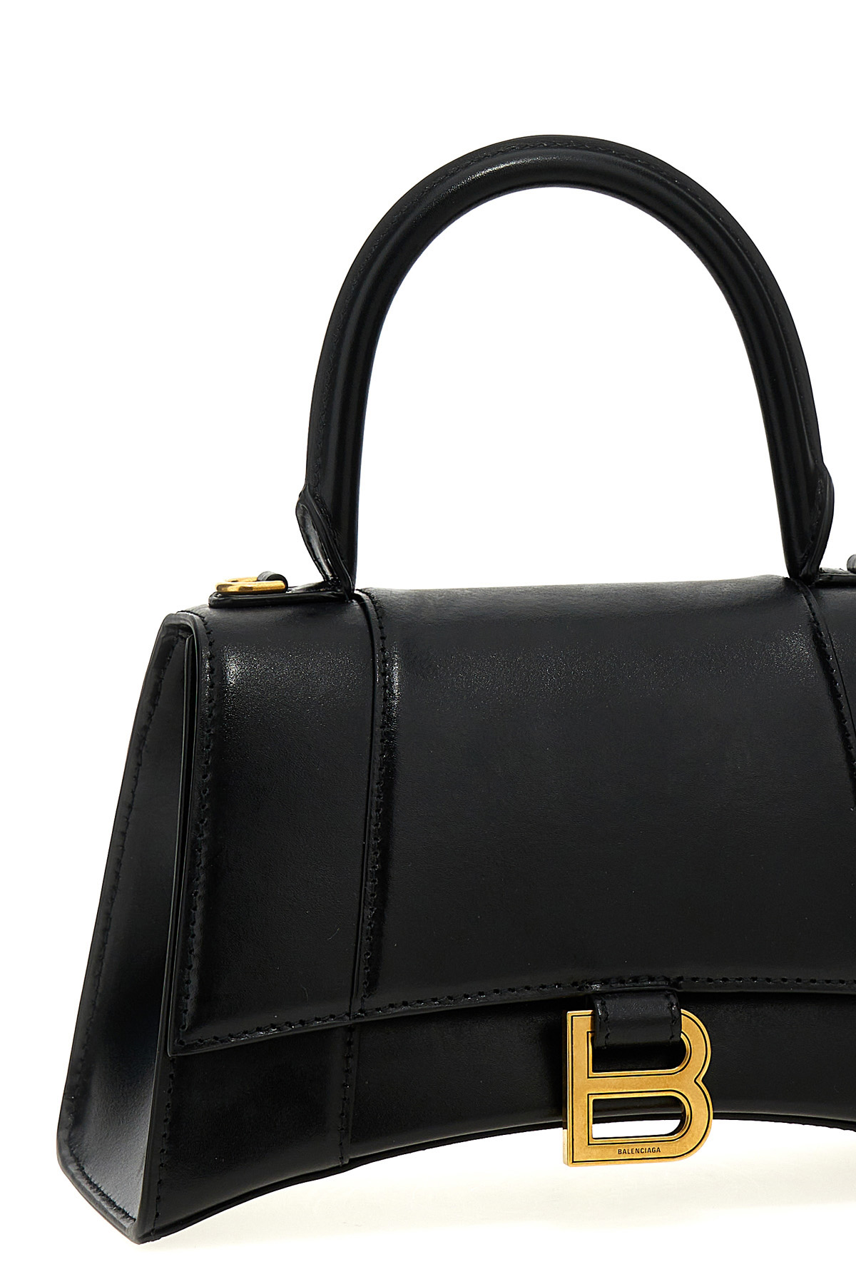 'Hourglass' small handbag in smooth leather with flap closure embellished with metal logo, and adjustable and removable shoulder strap.