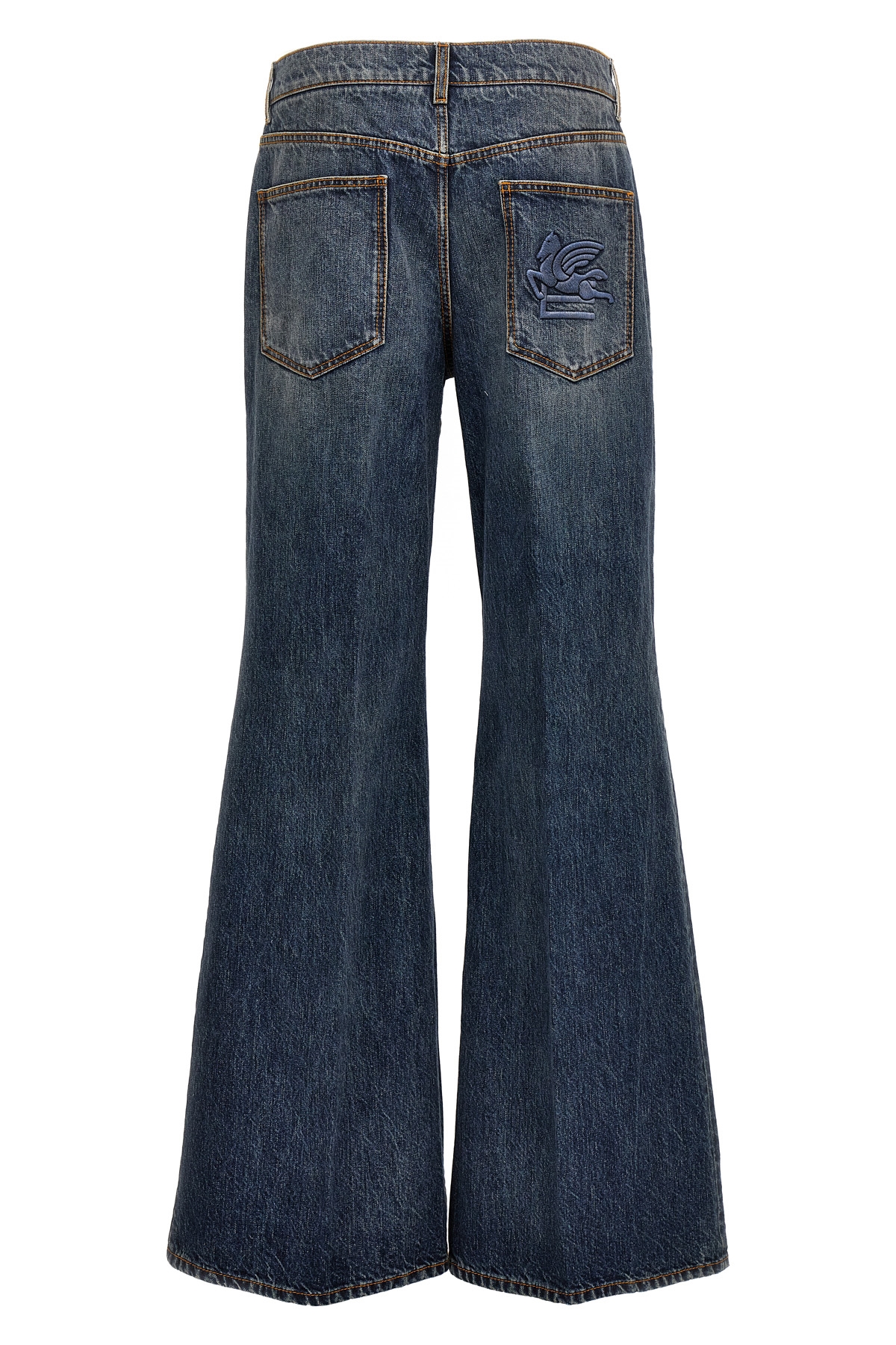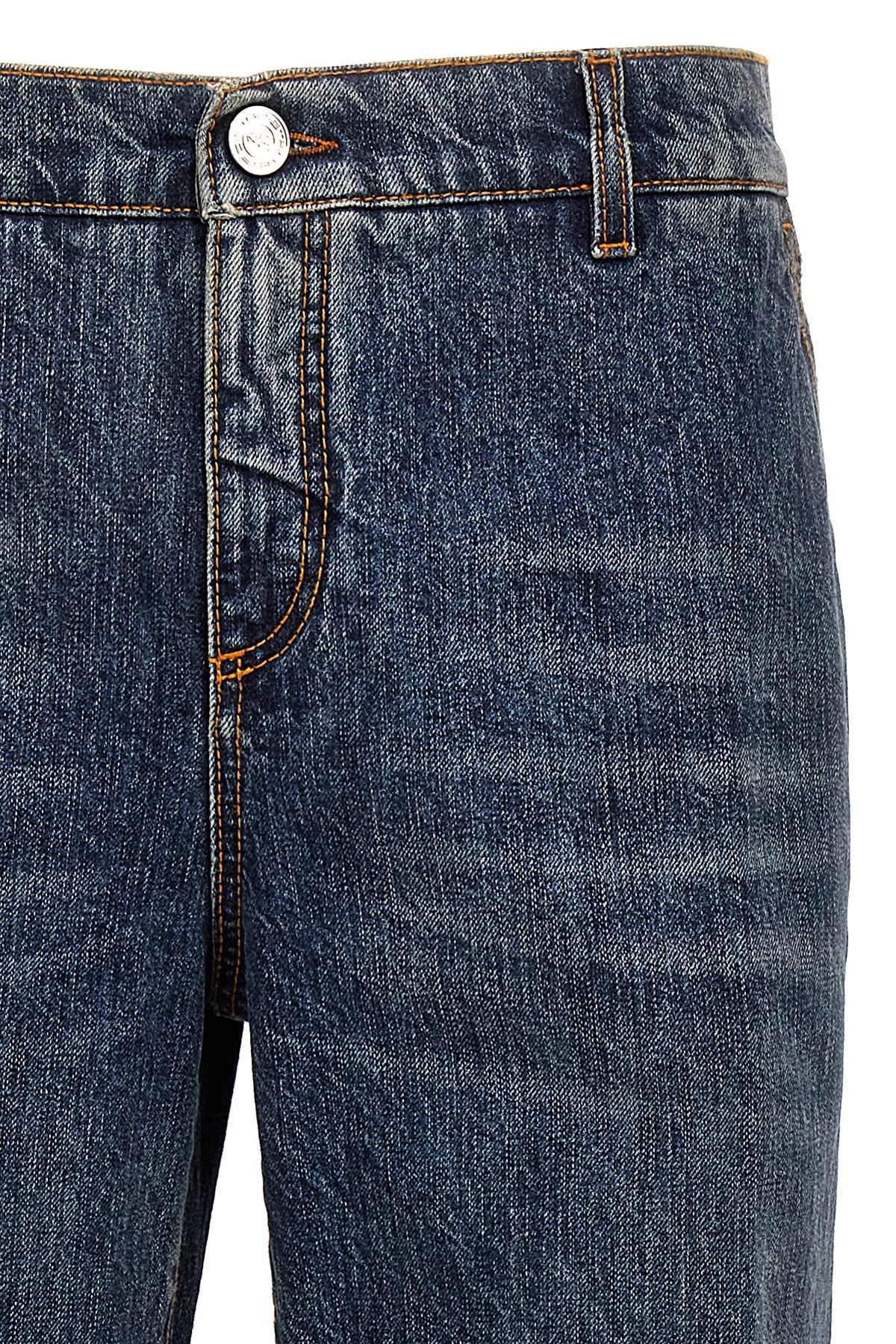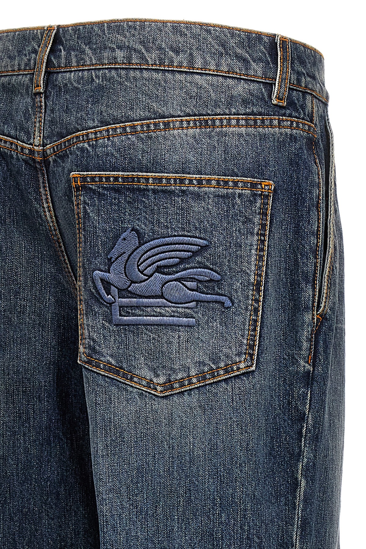 Cotton denim jeans with logo embroidery on the back, zip and button closure, pockets.