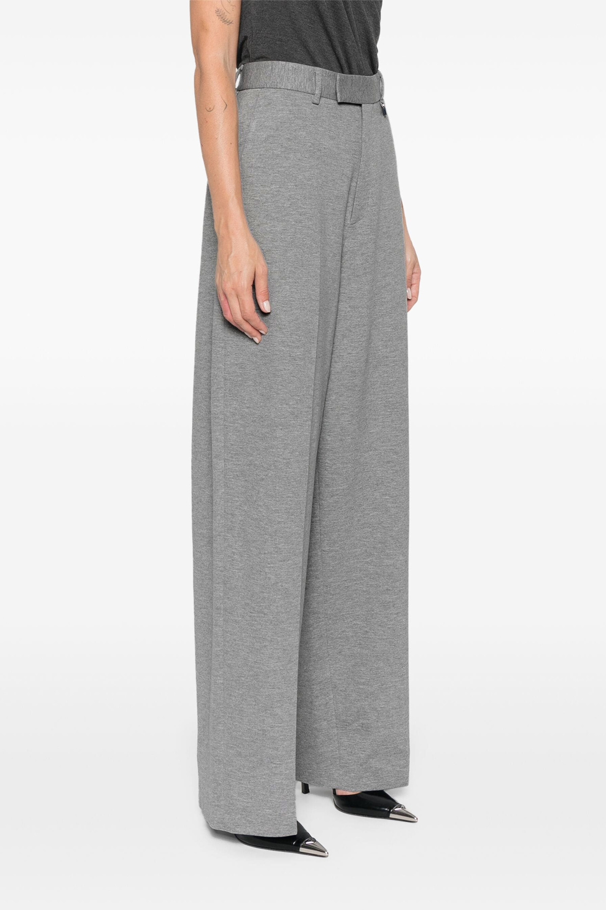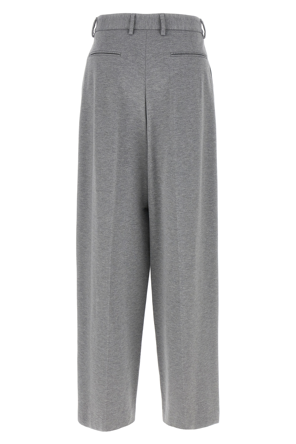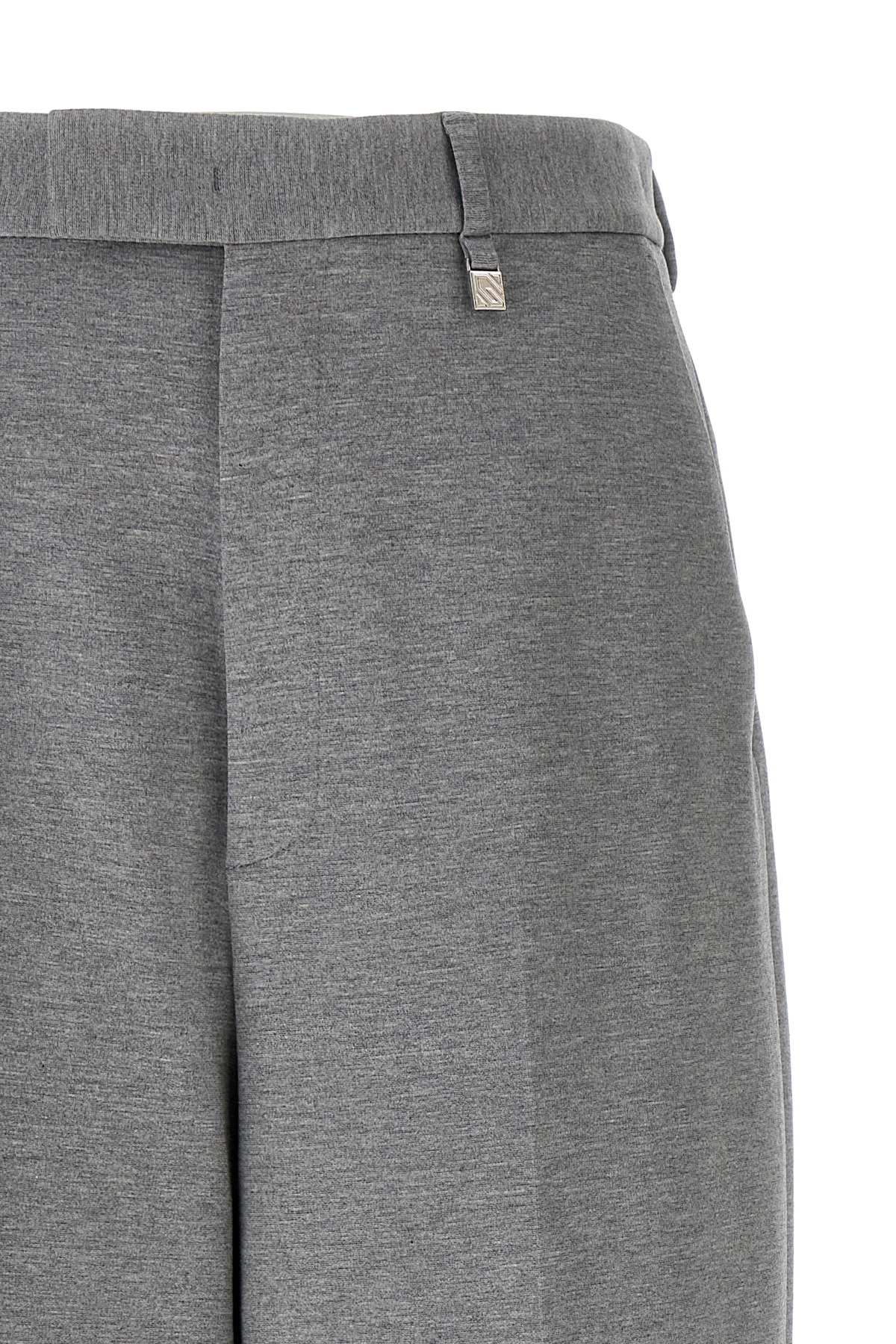 Stretch viscose blend jersey pants, hook and button zip closure, pockets, straight and wide leg with stretched pleat.