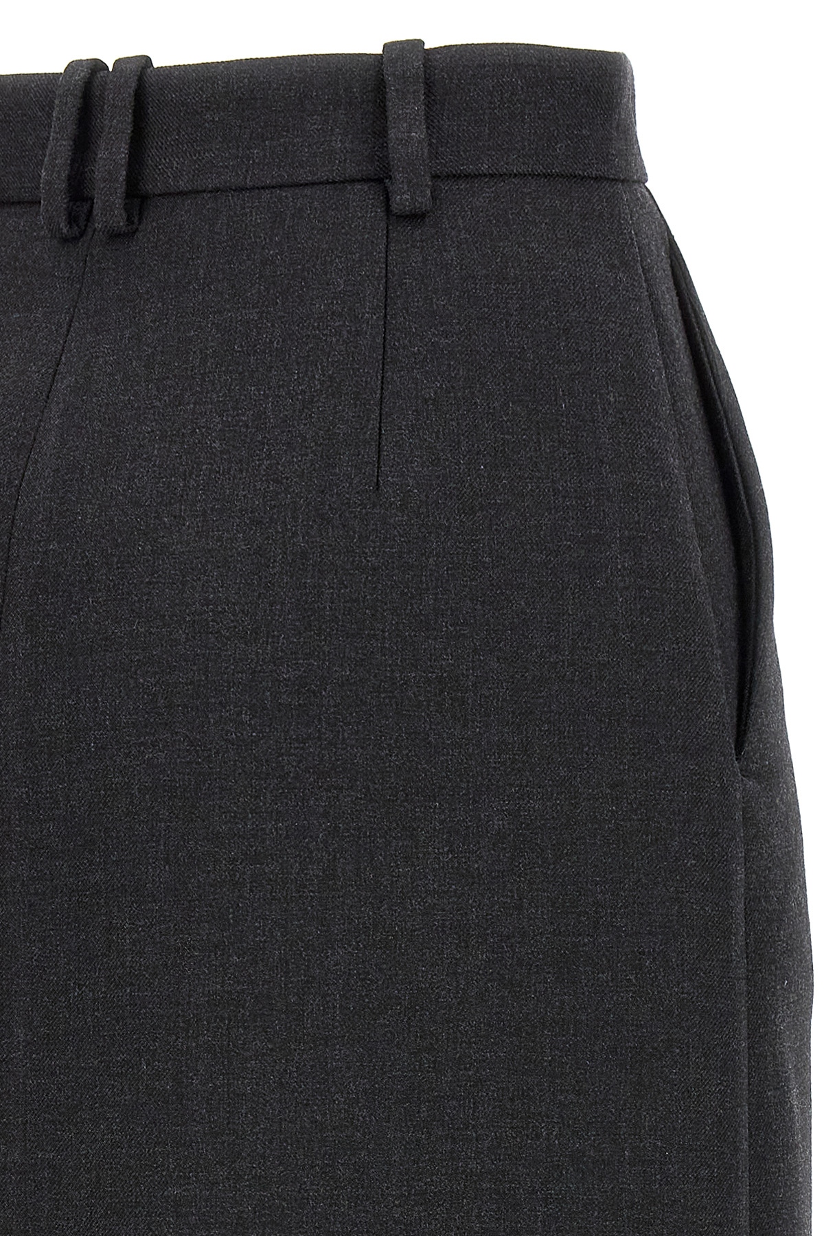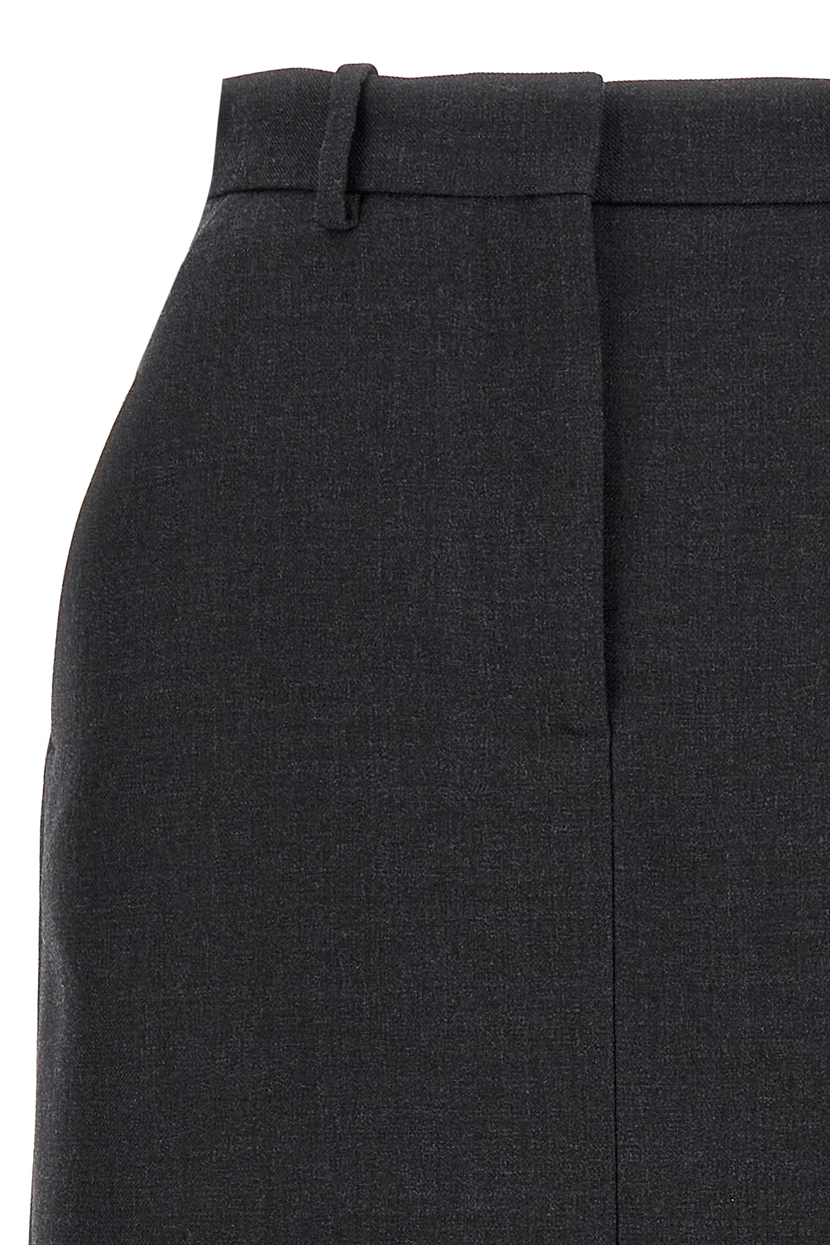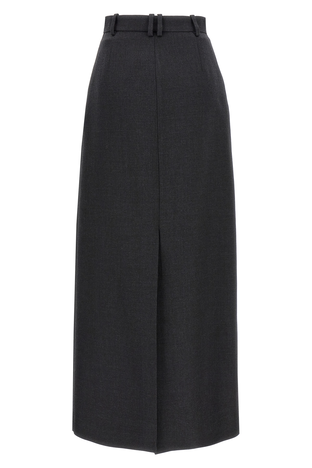 'Roux' skirt in stretch wool sateen, long and flared model, button hook zip closure, pockets, back split.