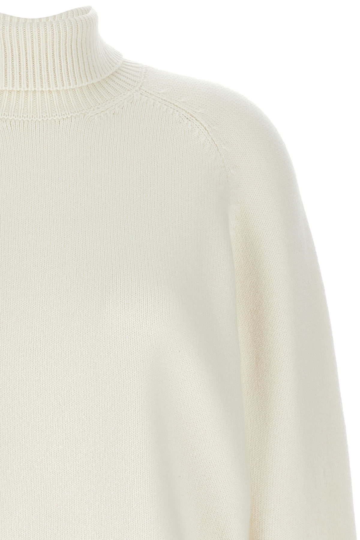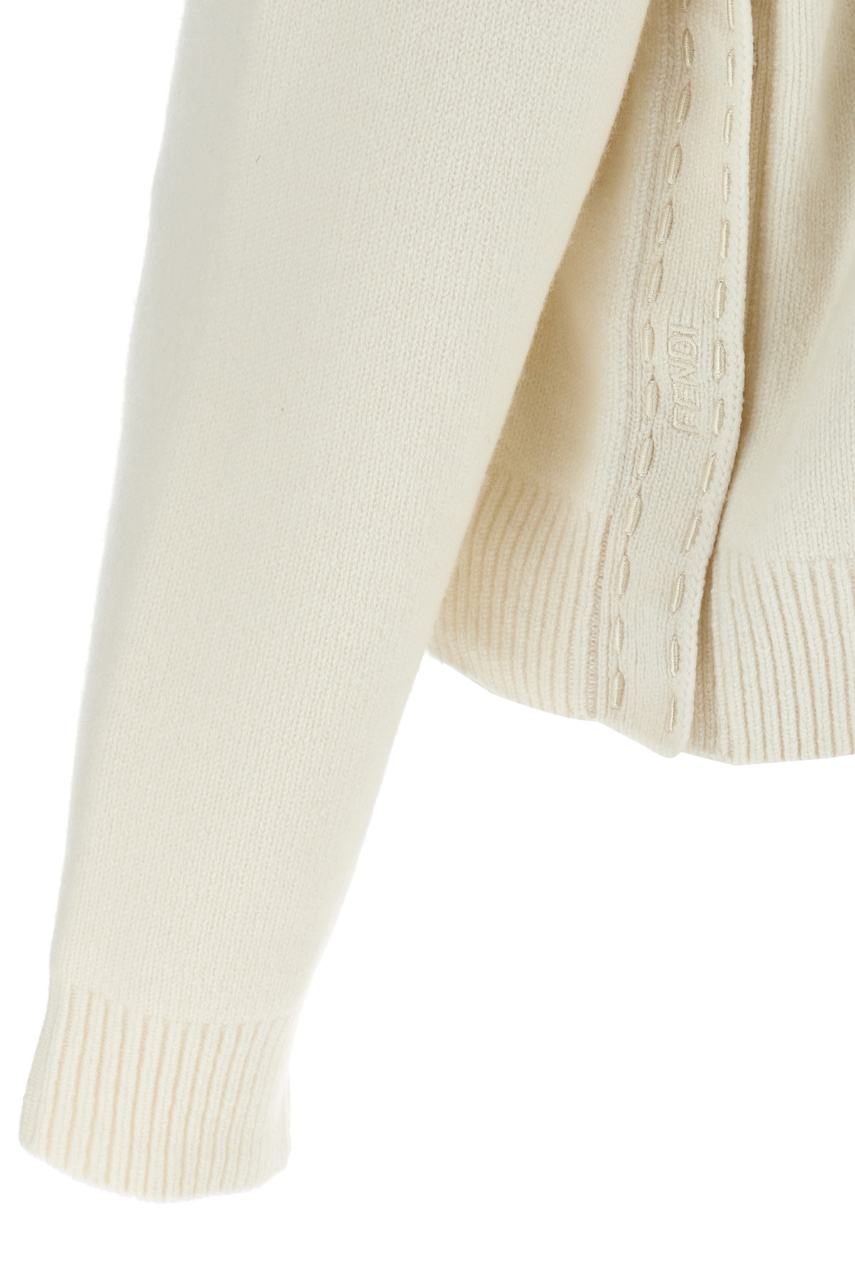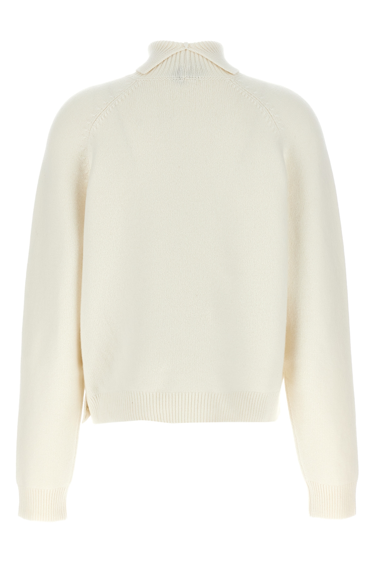 Cashmere sweater with high neck, long cuffed sleeves, left side split with snap button closure and tone-on-tone 'Selleria' macro stitching.