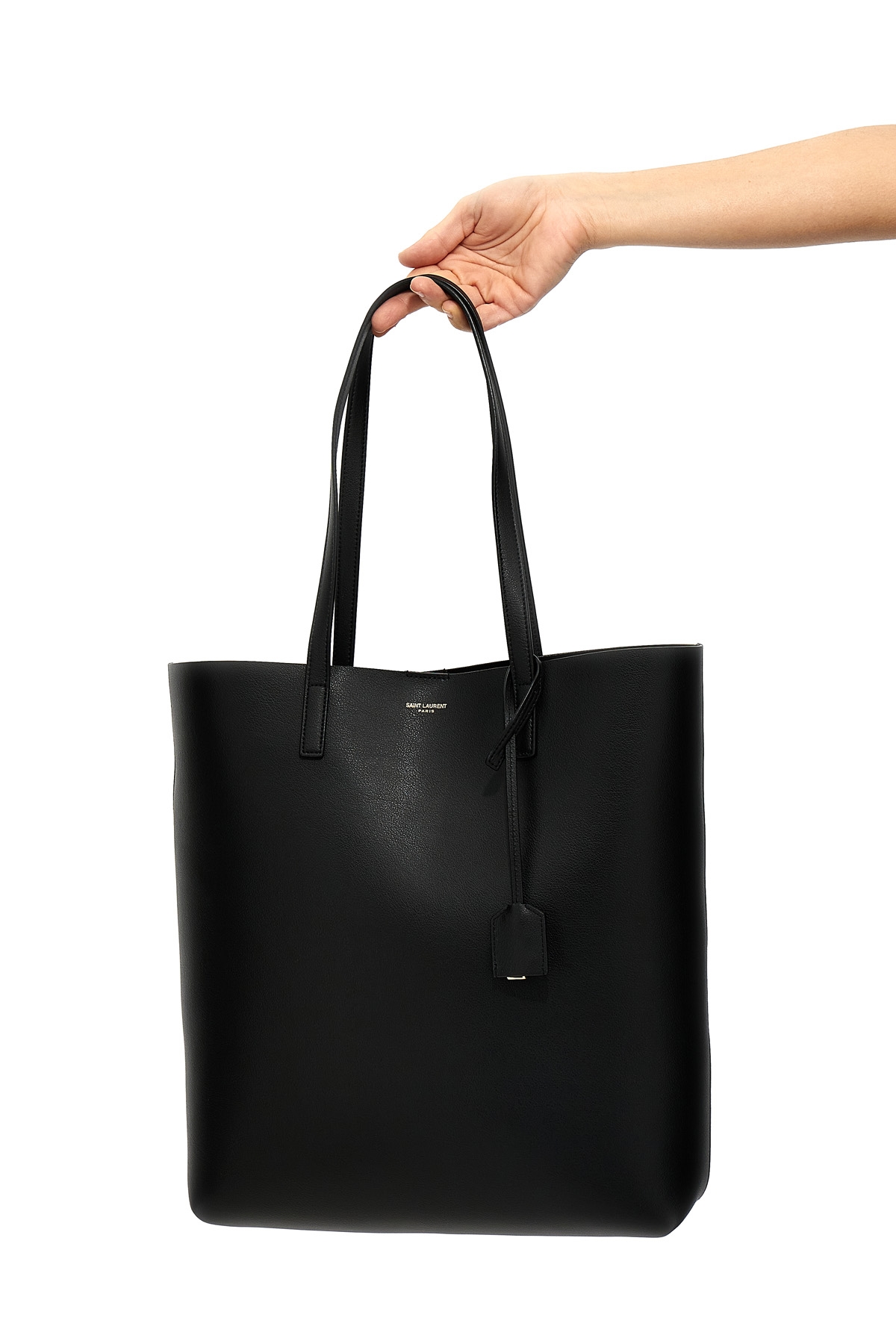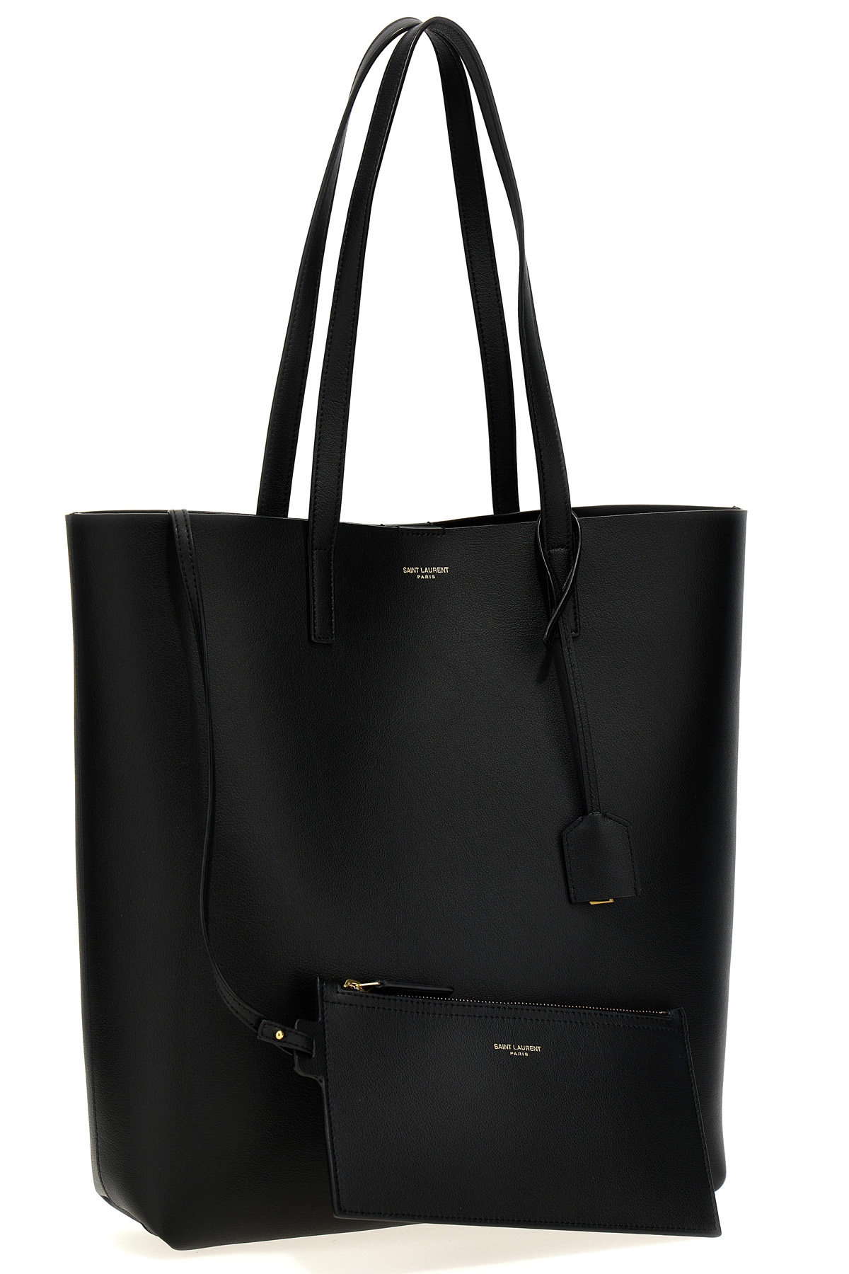 'Saint Laurent' leather shopping bag, Cassandre charm, double handle, magnetic closure, removable internal clutch bag.