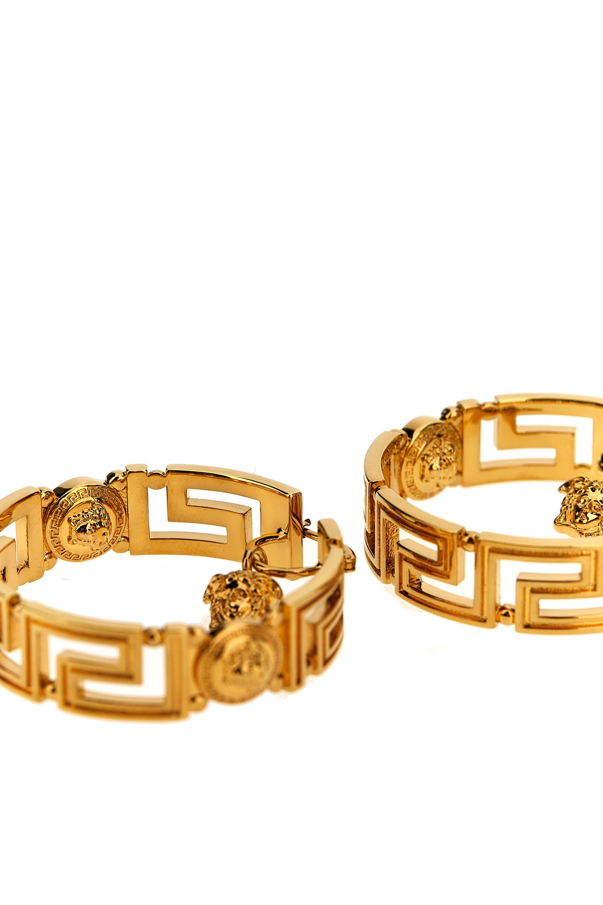 Gold metal earrings with 'Greca' pattern. ITEM CANNOT BE RETURNED