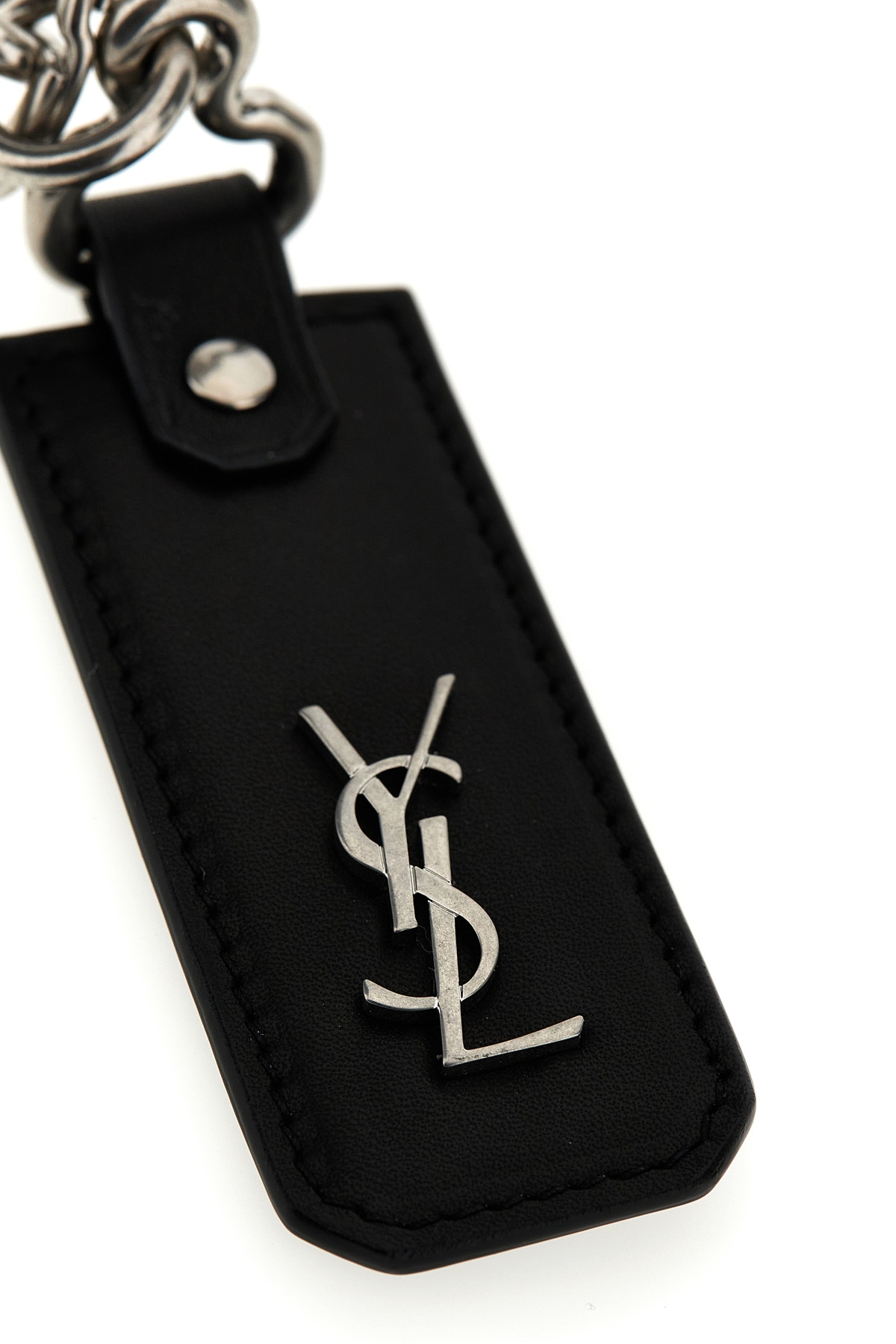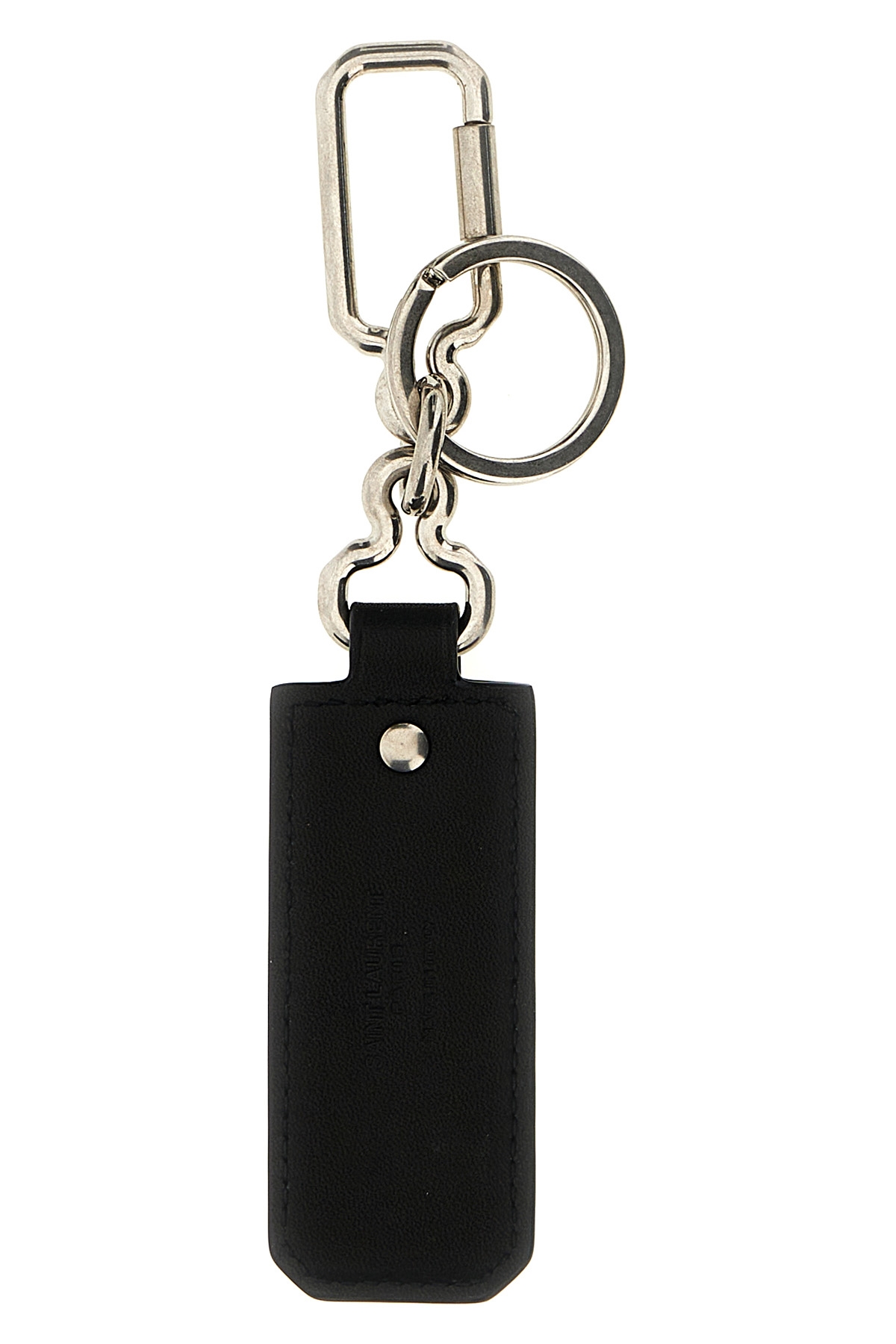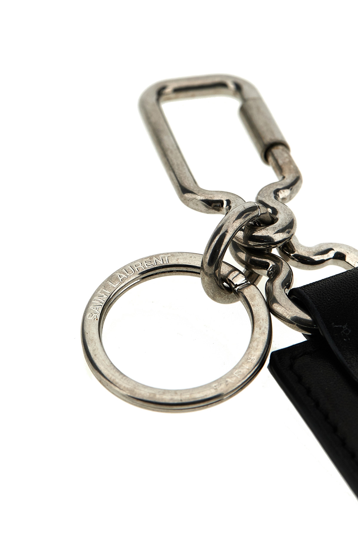 'Cassandre' leather keyring with metal logo applique and snap hook with twist-lock ring.