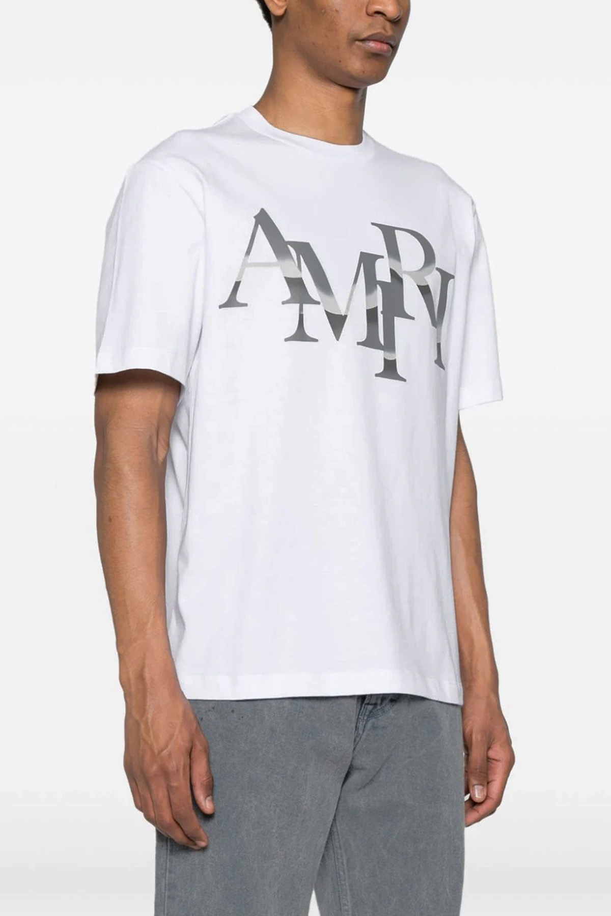 'Staggered Chrome' cotton crew neck T-shirt with front logo print and short sleeves.