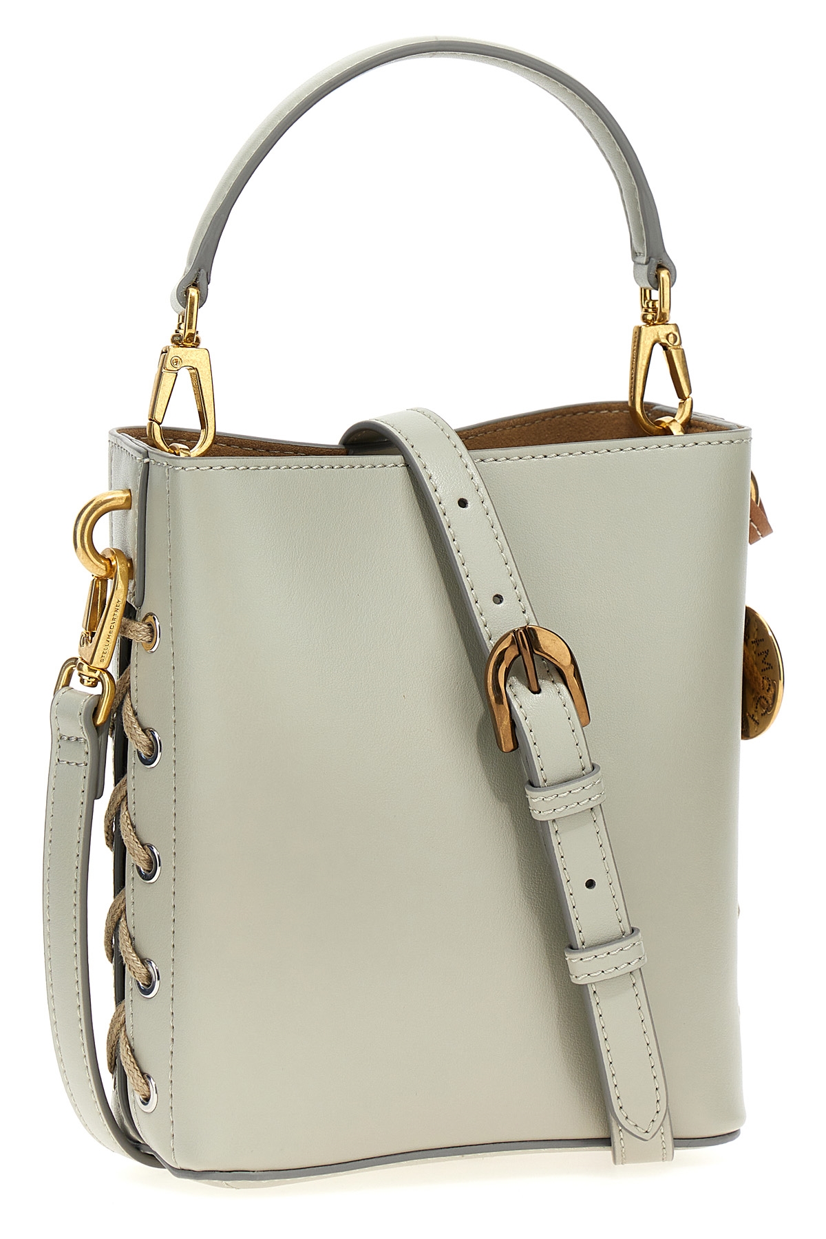 'Uppeal' bucket bag in UPPEAL™ fabric, removable short handle, adjustable and removable shoulder strap, magnetic closure, lace detail on the sides, medallion charm, removable apple-shaped charm. charm.