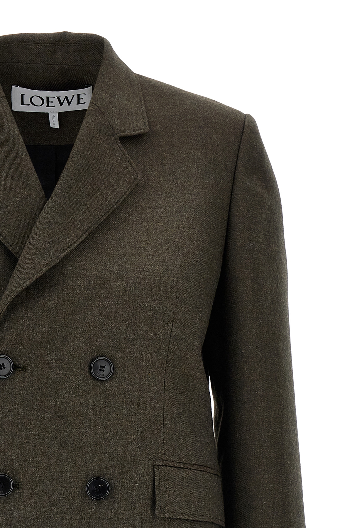 Double-breasted blazer in melange wool twill with notch lapels, long sleeves, button closure, flap pockets, lining.