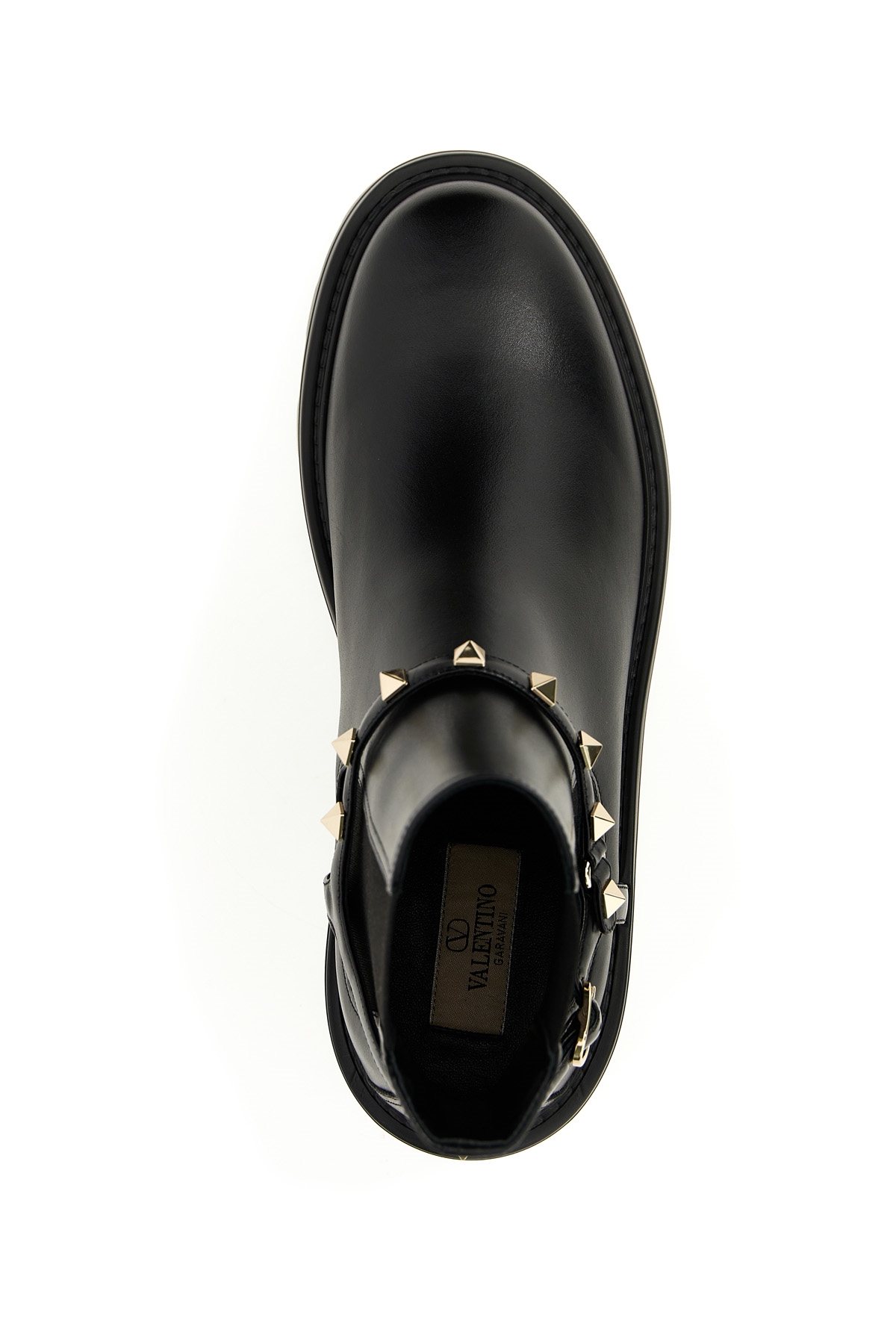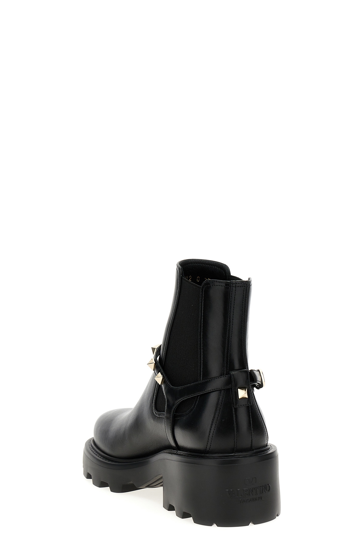 'Rockstud' leather ankle boots, adjustable strap with buckle and metal studs at the ankle, elastic ankle straps, rubber sole with embossed logo.