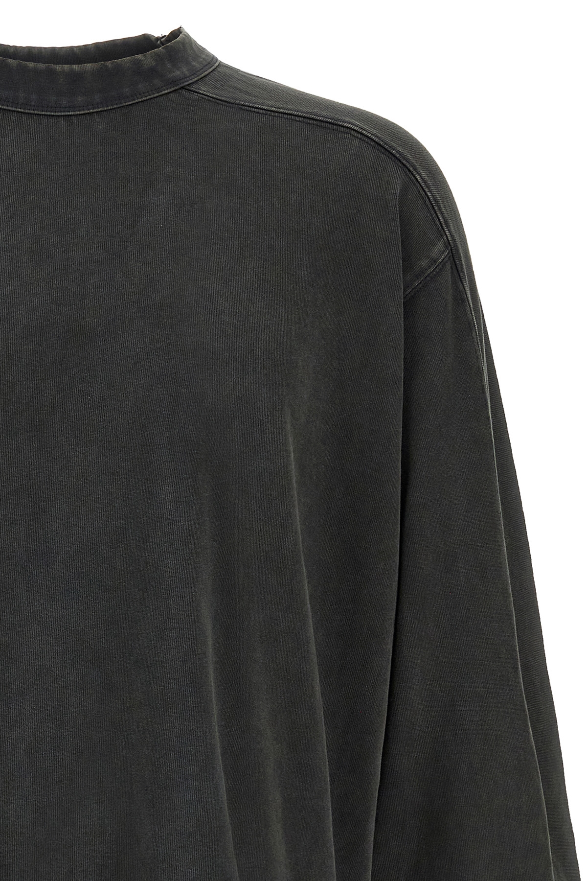 'Heavy' faded gauze cotton T-shirt, crew neck, raw cut style, long sleeves with dropped shoulders.