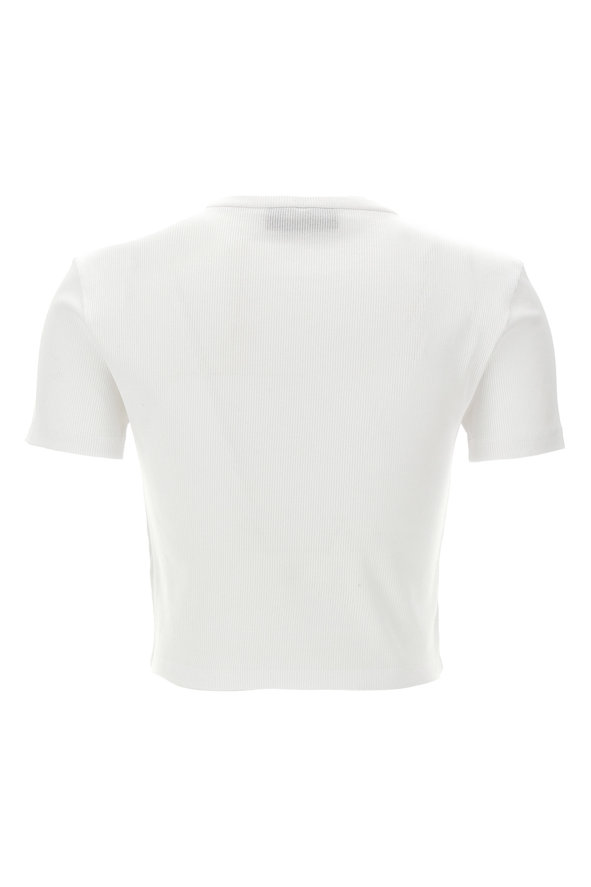 'Fendi' ribbed cotton cropped t-shirt with front logo embroidery, crew neck, short sleeves.