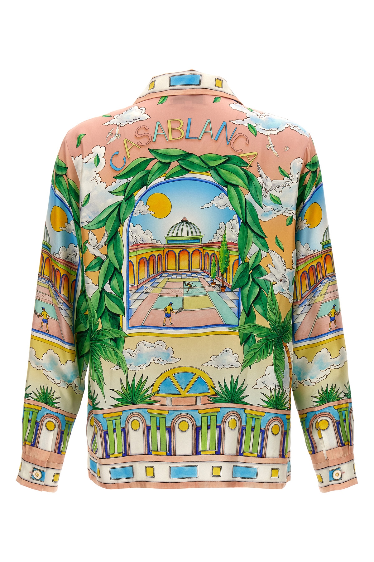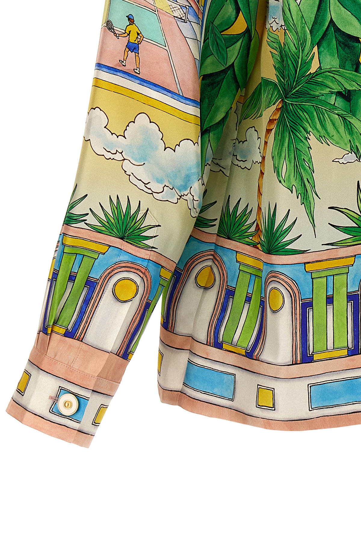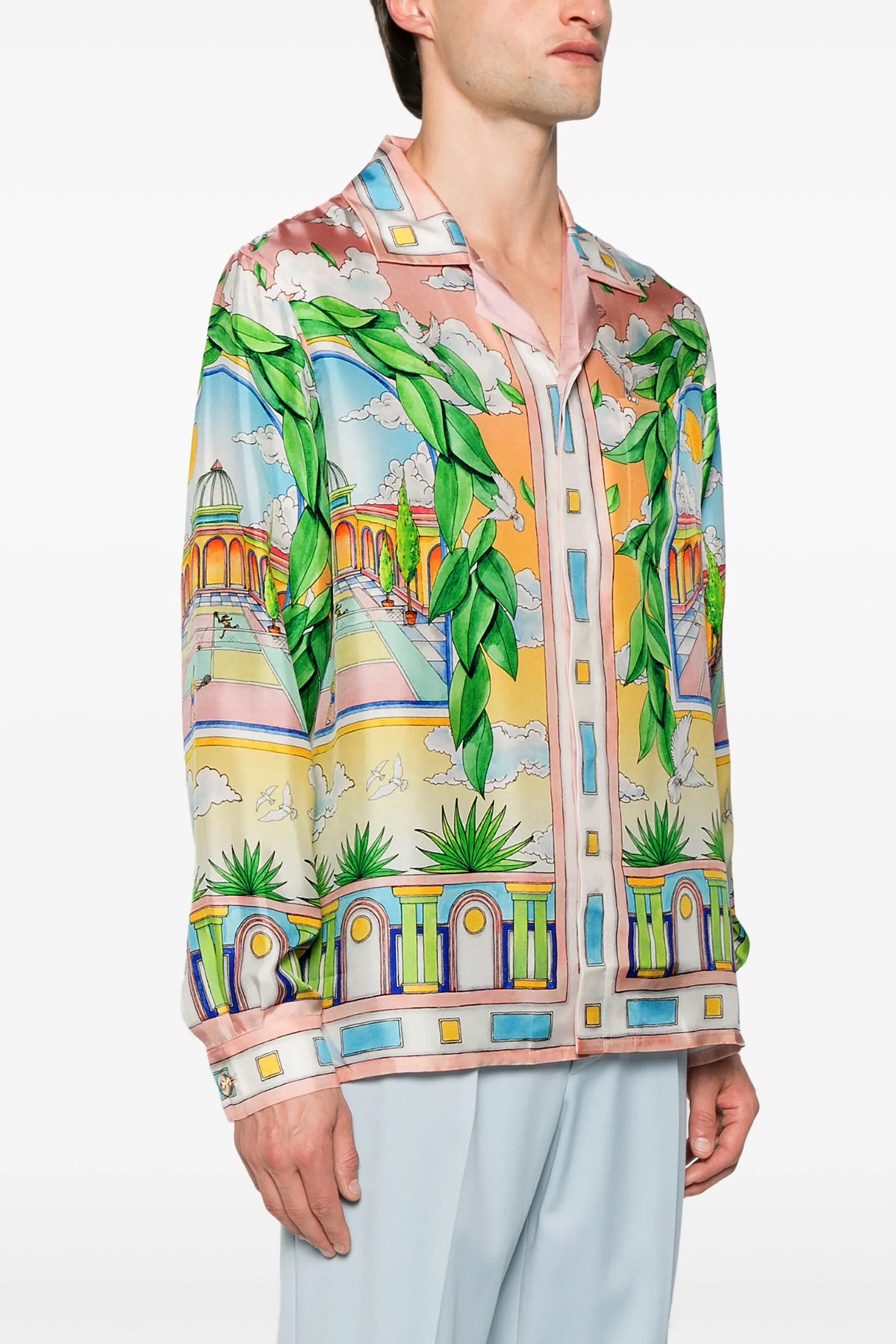 'Paysage Ideal' printed silk shirt, front pocket, button closure, long cuffed sleeves.