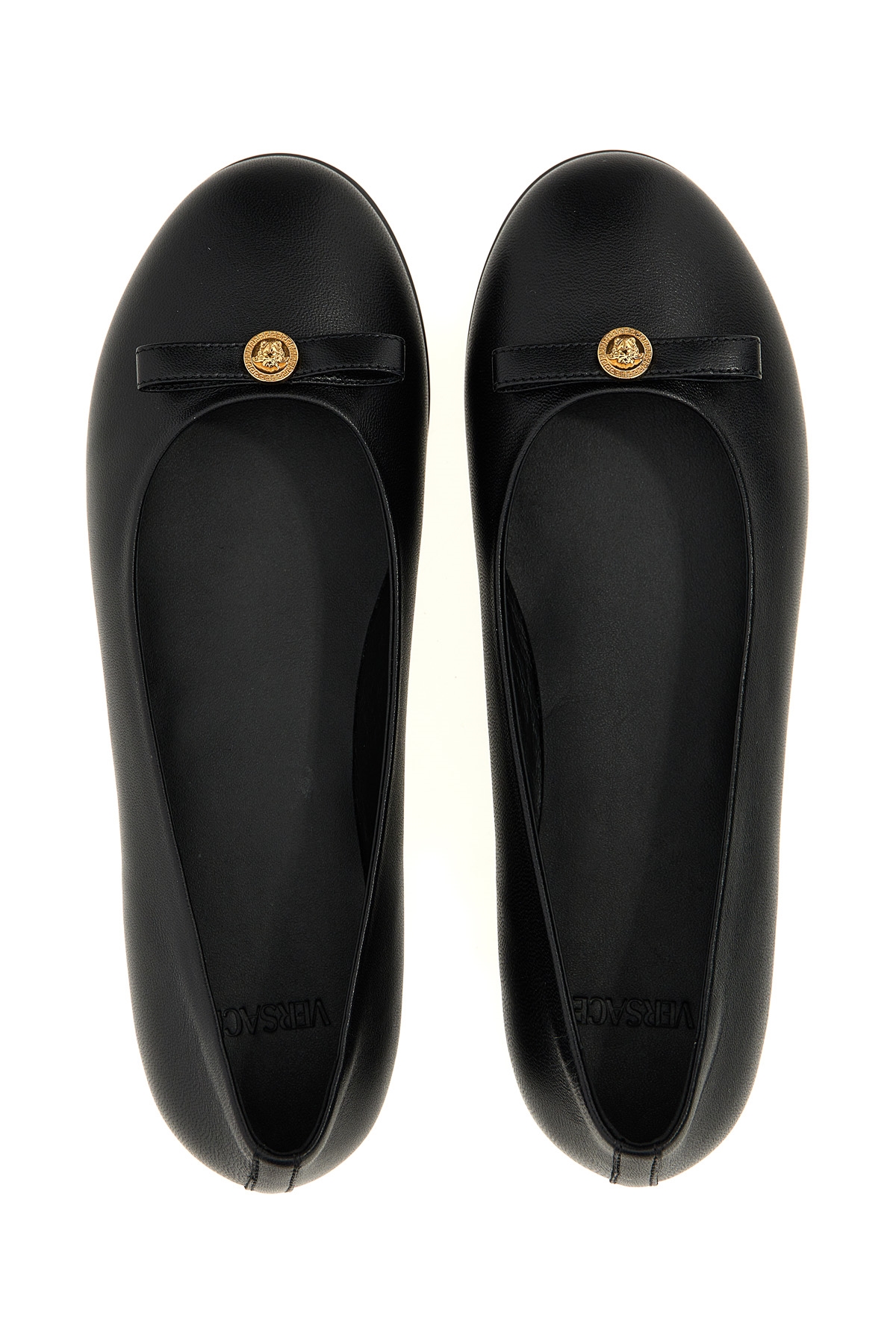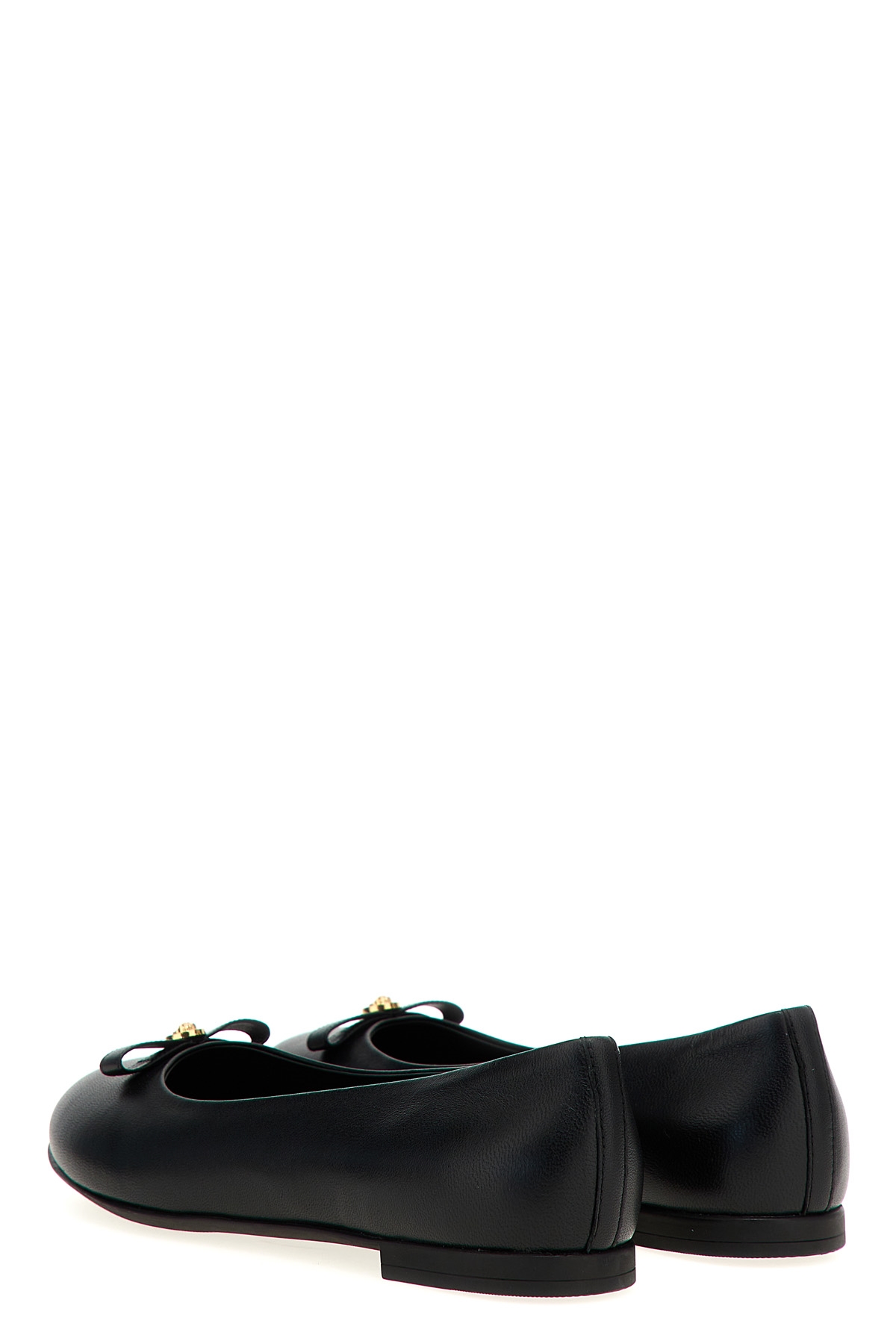 KIDS 'Gianni Ribbon' nappa ballet flats with bow application with front Medusa hardware, rounded toe, rubber sole.
