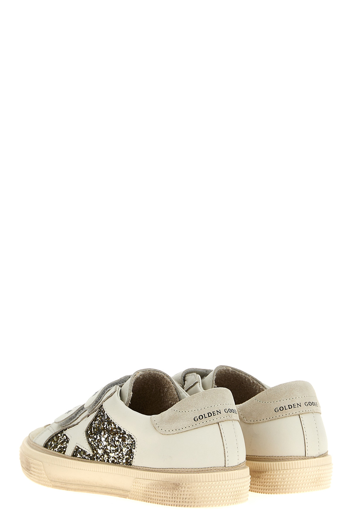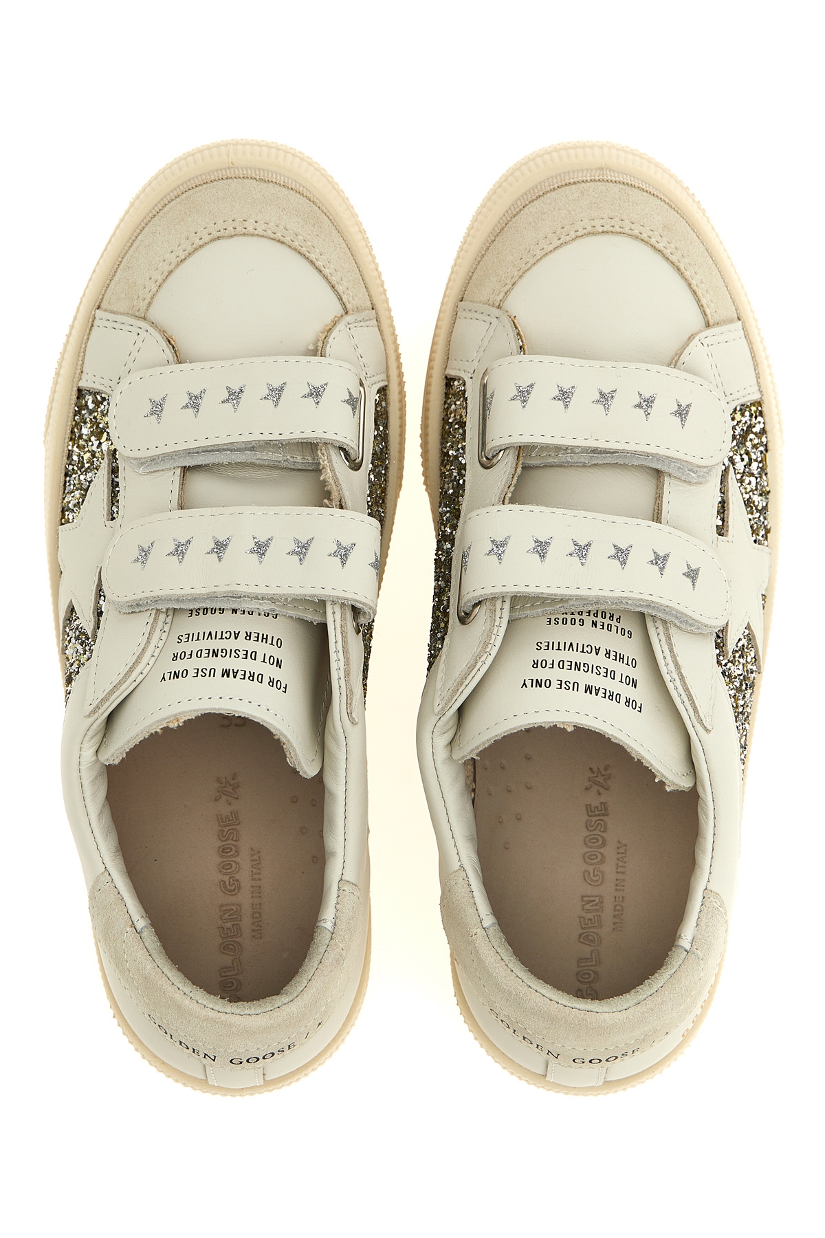 KIDS 'May' leather and suede sneakers with contrasting glitter details, Velcro band closure, rubber sole.
