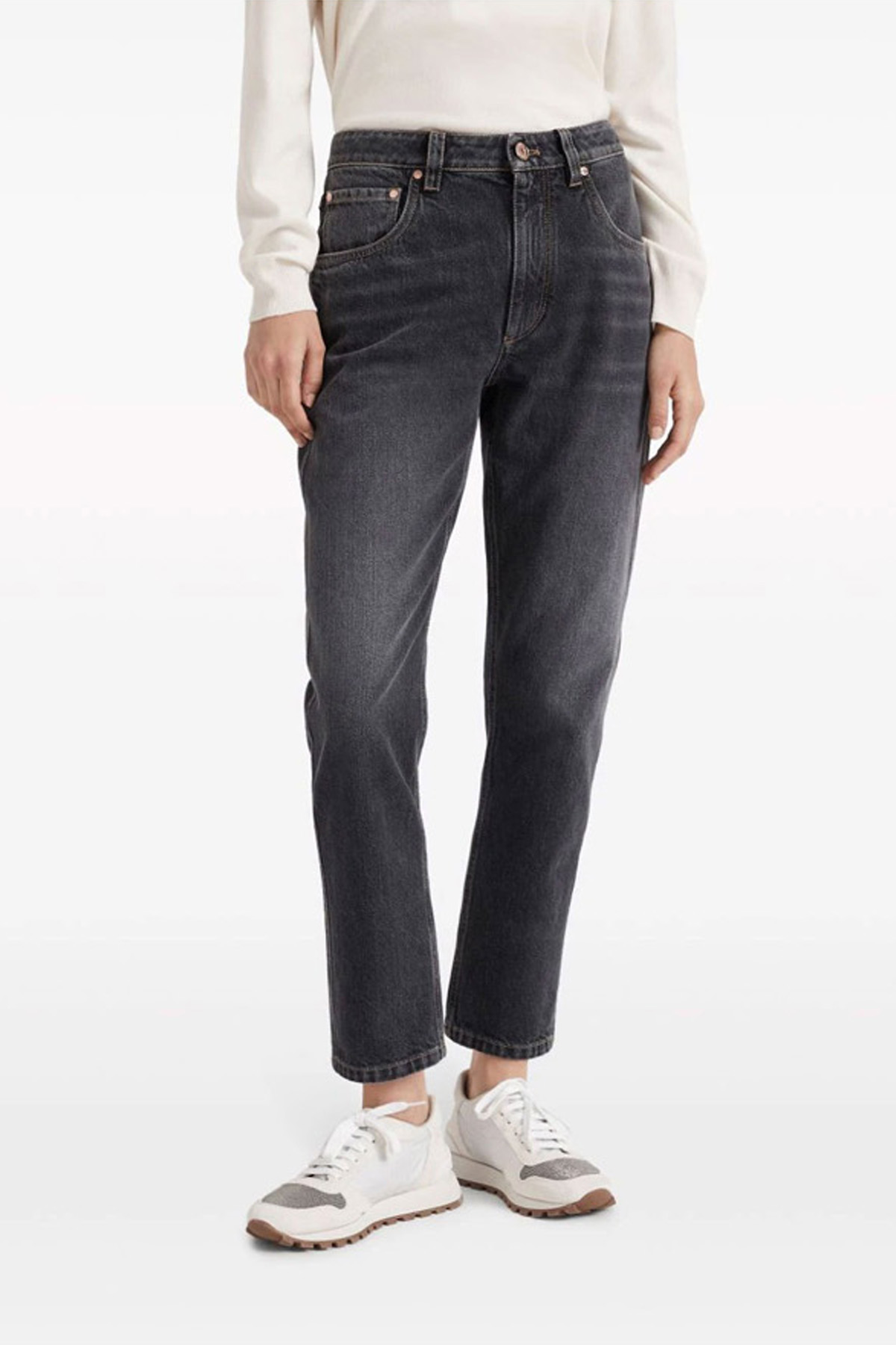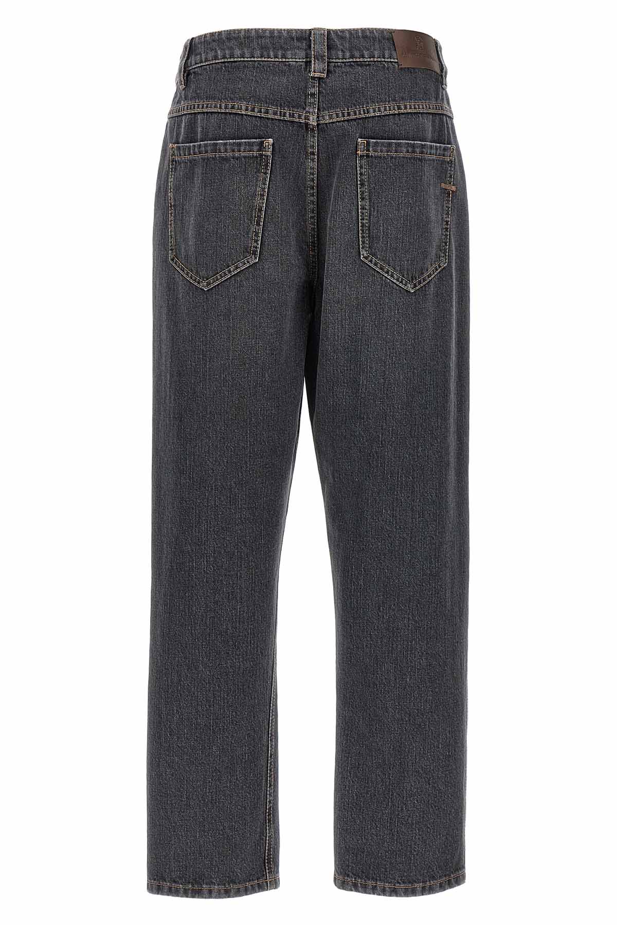 Cotton denim jeans with 'Monile' detail at the back, zip and button closure, five pockets, leather logo tag.