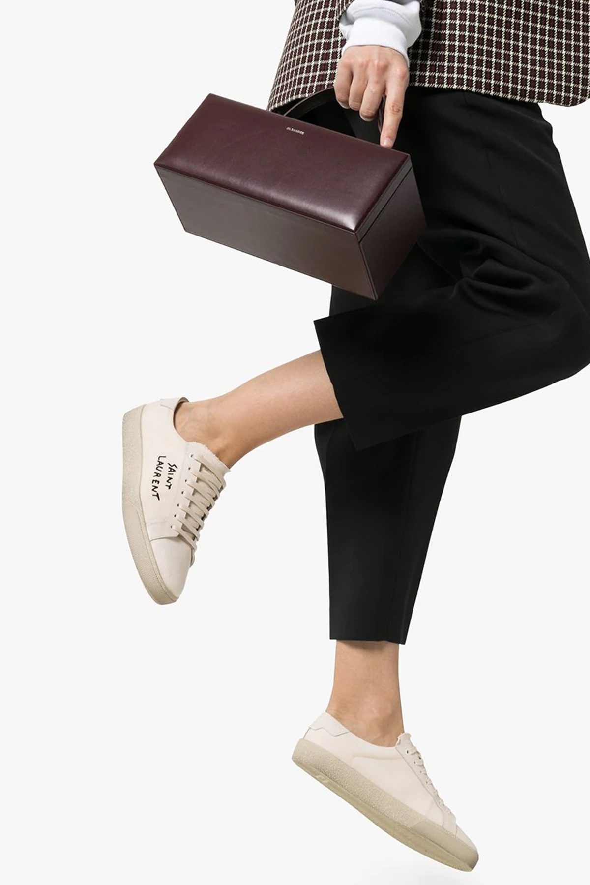 'Court SL/06' sneakers in worn-look fabric and leather, contrasting embroidered logo, laces, rubber sole.
