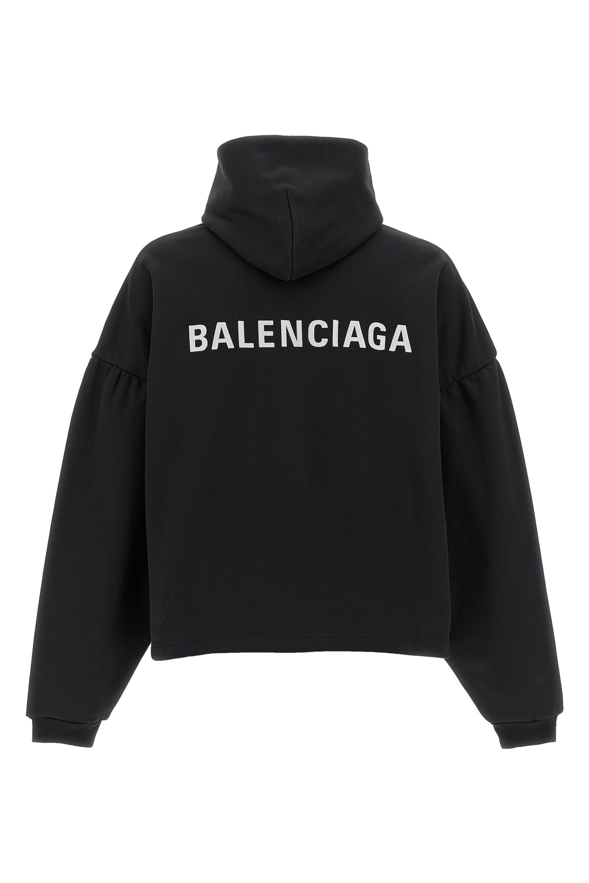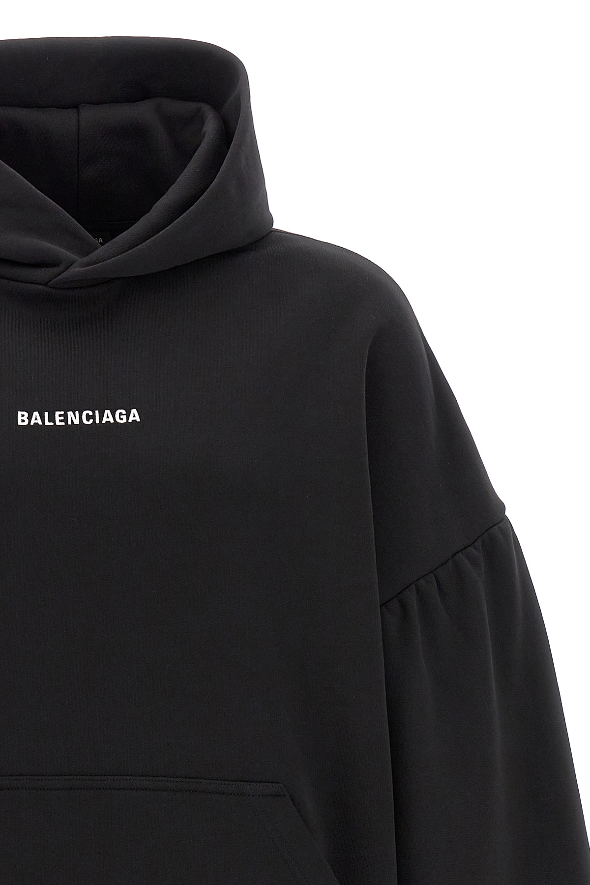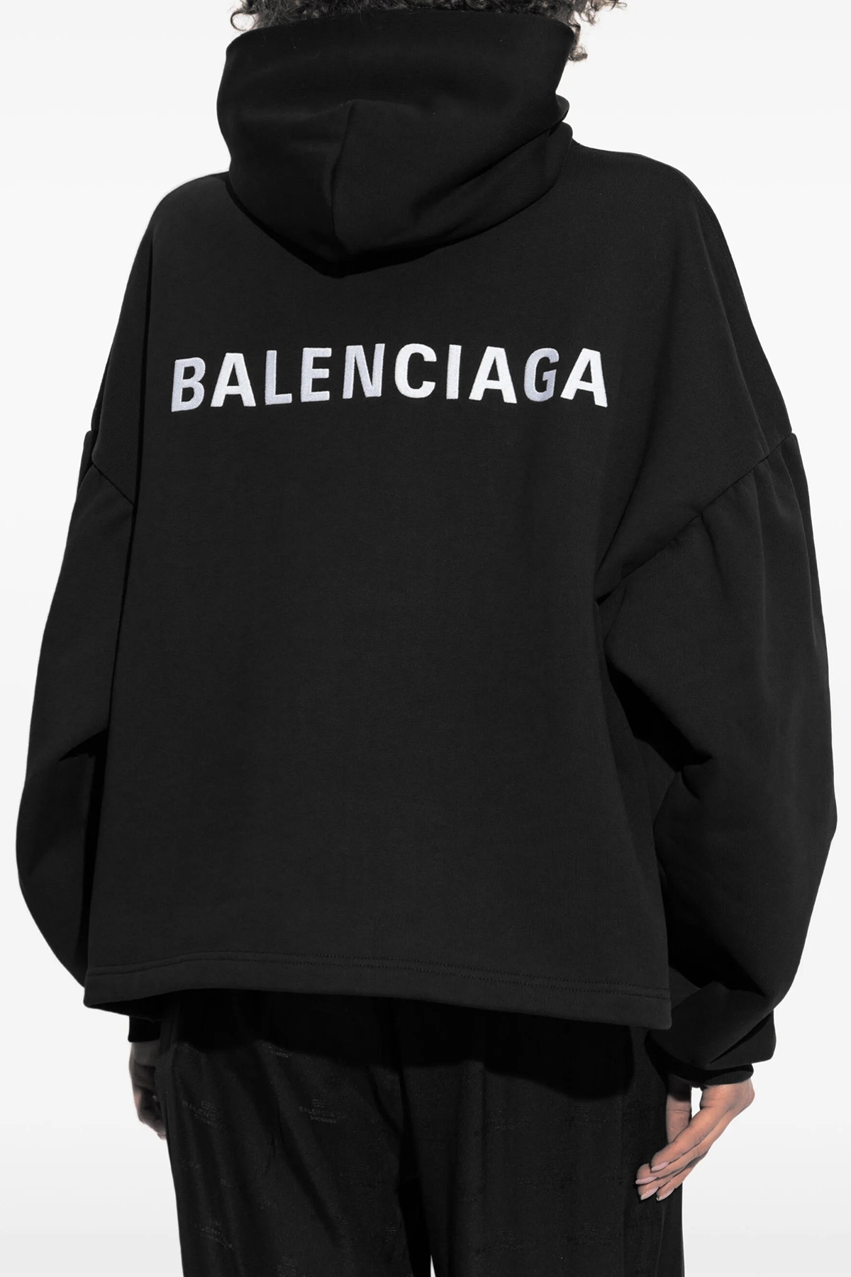 Archetype fleece hoodie with 'Balenciaga Back' embroidery at the front and back, kangaroo pocket, long sleeves with curled shoulders and cuffs.