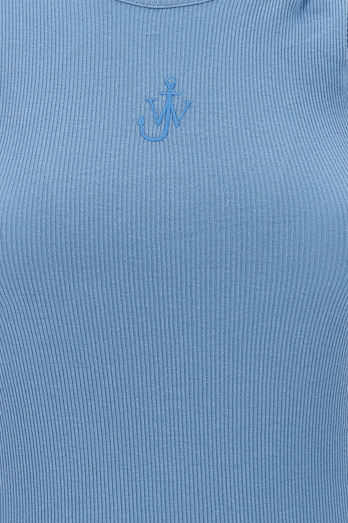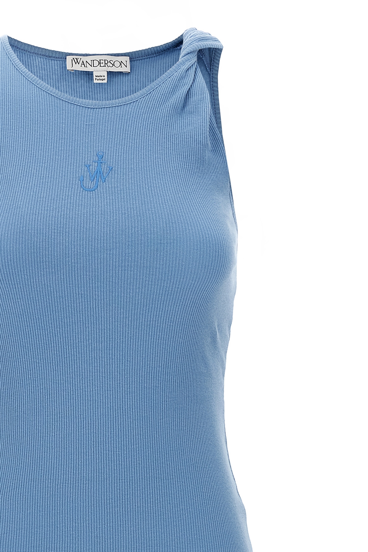 Ribbed cotton dress with contrast Anchor JWA logo embroidery on the front, sleeveless with twisted shoulder straps, round neckline.