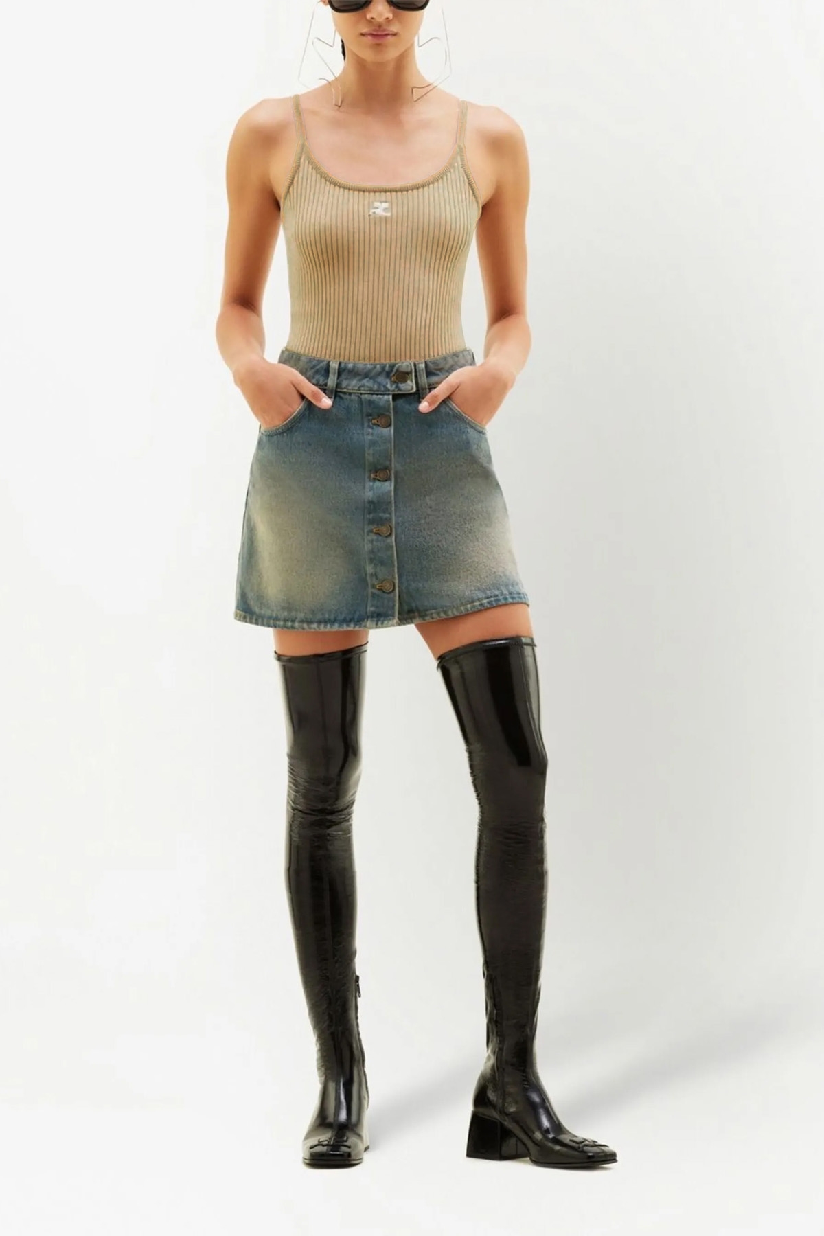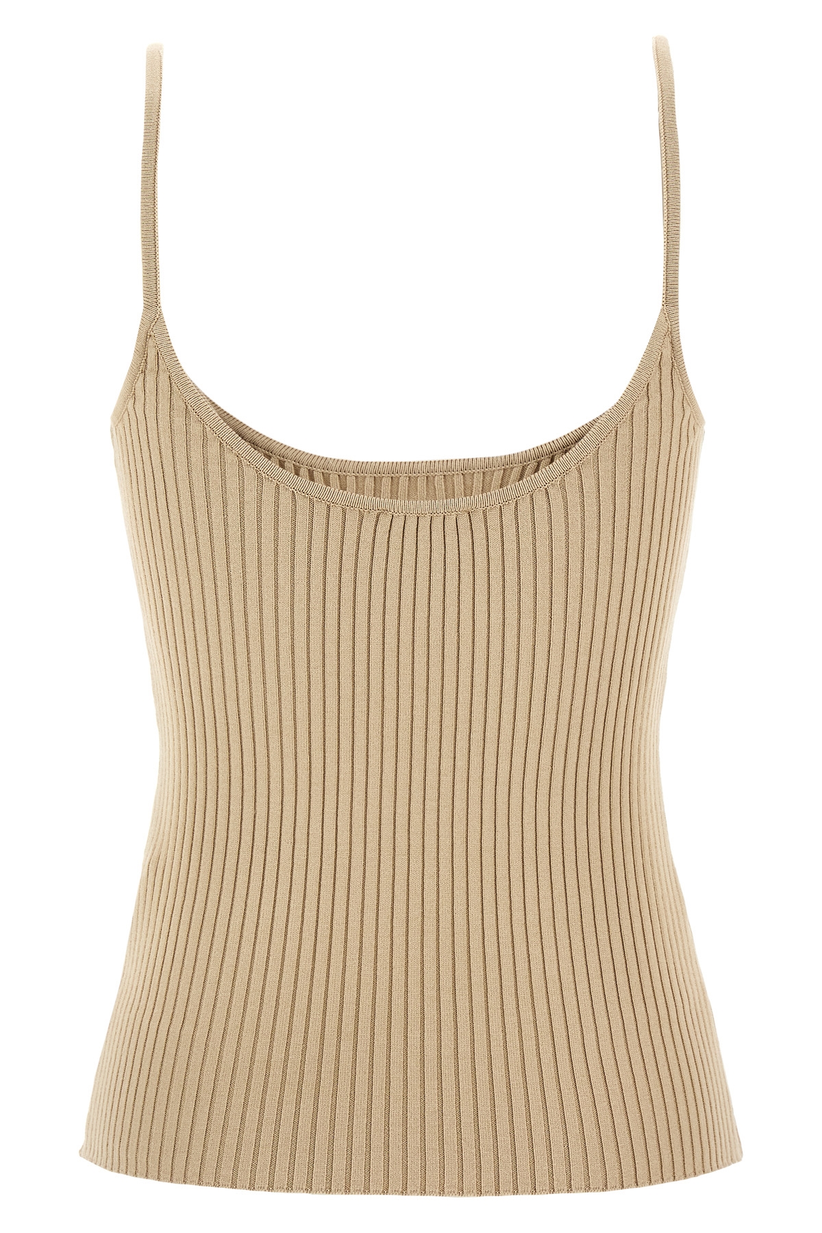 'ReEdition Rib Knit' tank top in ribbed stretch viscose blend with front logo patch, thin straps, round neckline.